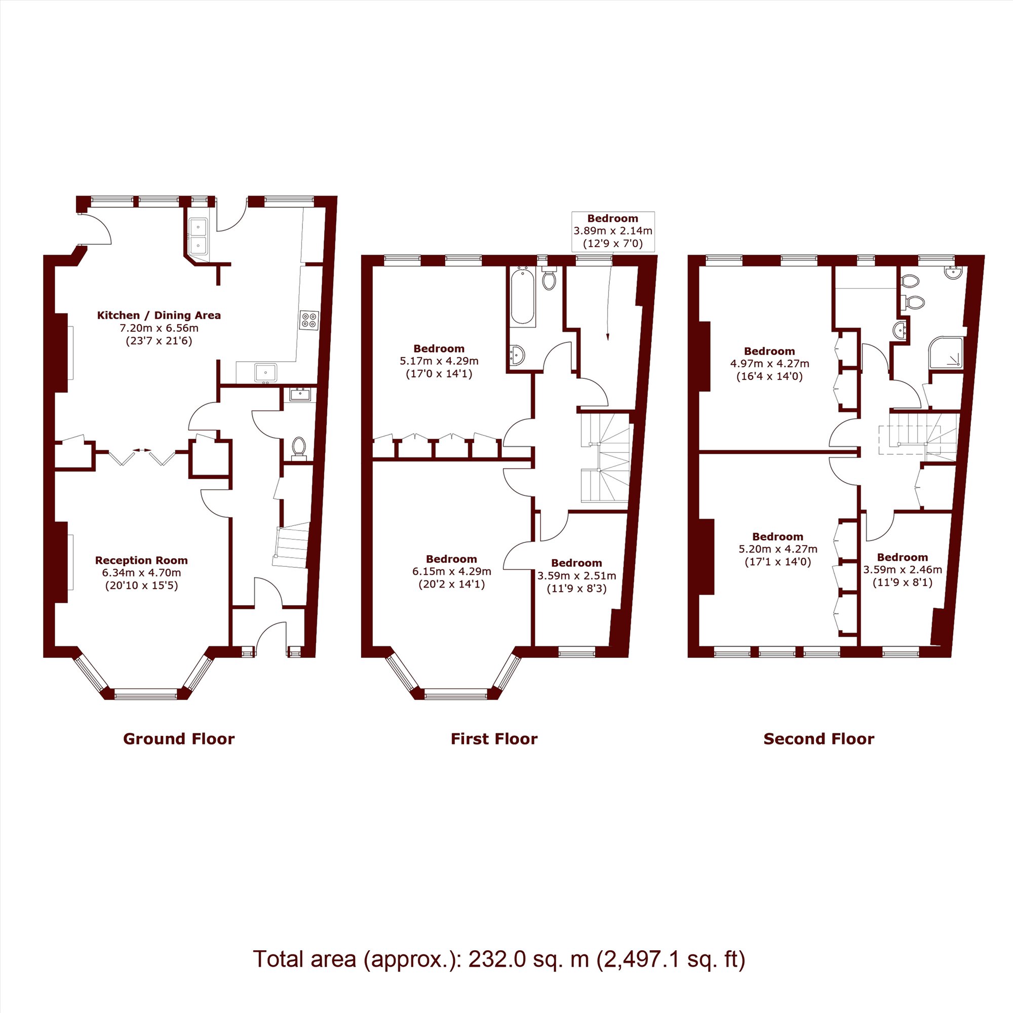 The first floor offers two spacious master bedrooms one of which could serve as an additional drawing room alongside two charming children's bedrooms or studies. The top floor provides three further generous bedrooms, offering flexible accommodation for family, guests, or home offices.