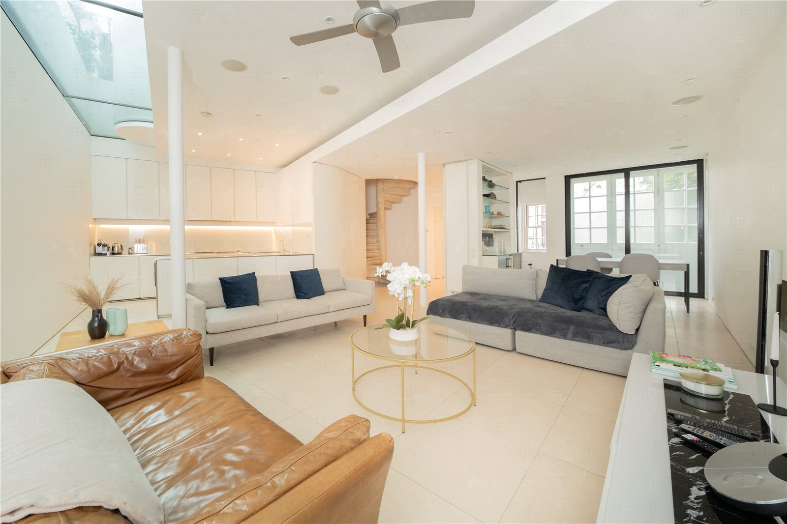 This beautiful property has been designed and finished to exacting standards. The beautiful house boasts a large reception room that is open plan with the modern kitchen, a large master suite with en suite bathroom and ample built in storage, two further bedrooms with built in storage, a second family bathroom, a separate WC, and a second living room at the top of the house with its own private terrace and outdoor kitchen that is perfect for entertaining. The property further benefits from a private terrace off the master bedroom.