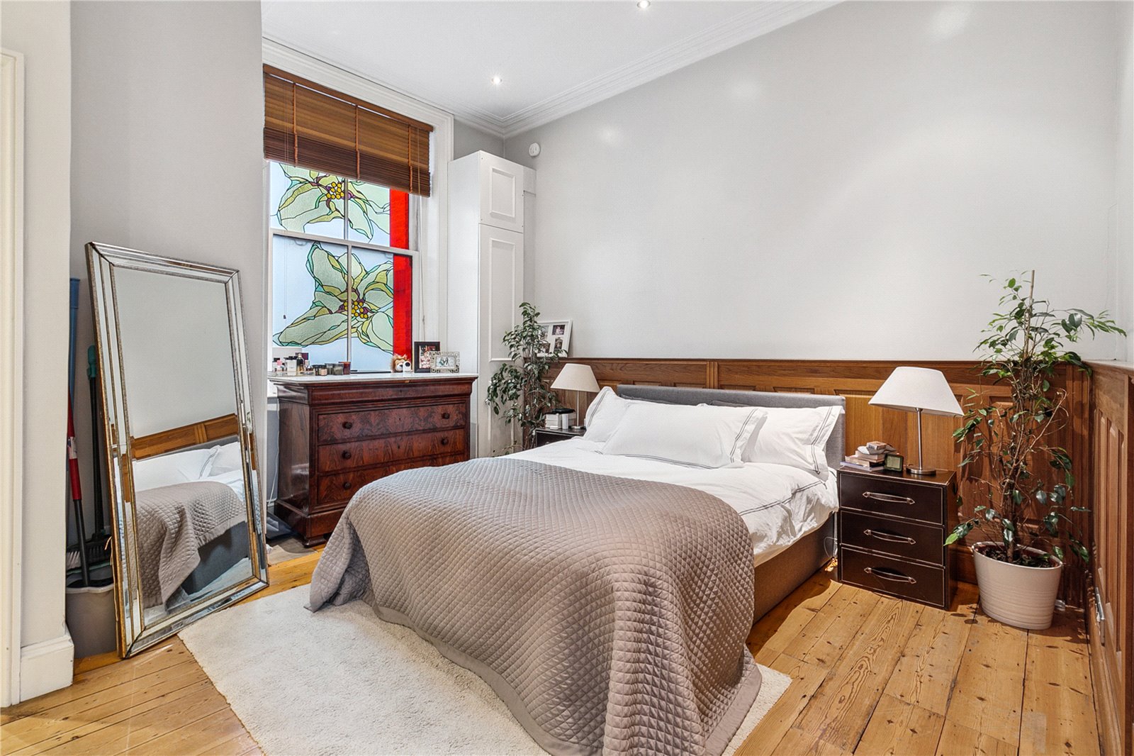 A beautiful bright and spacious one-bedroom flat on the second floor of this period building overlooking pretty communal gardens. The flat boasts a wonderfully bright open plan kitchen reception room with hard wood floors, three south-facing windows, and space for dining. The large bedroom has ample storage and is served by a modern bathroom.