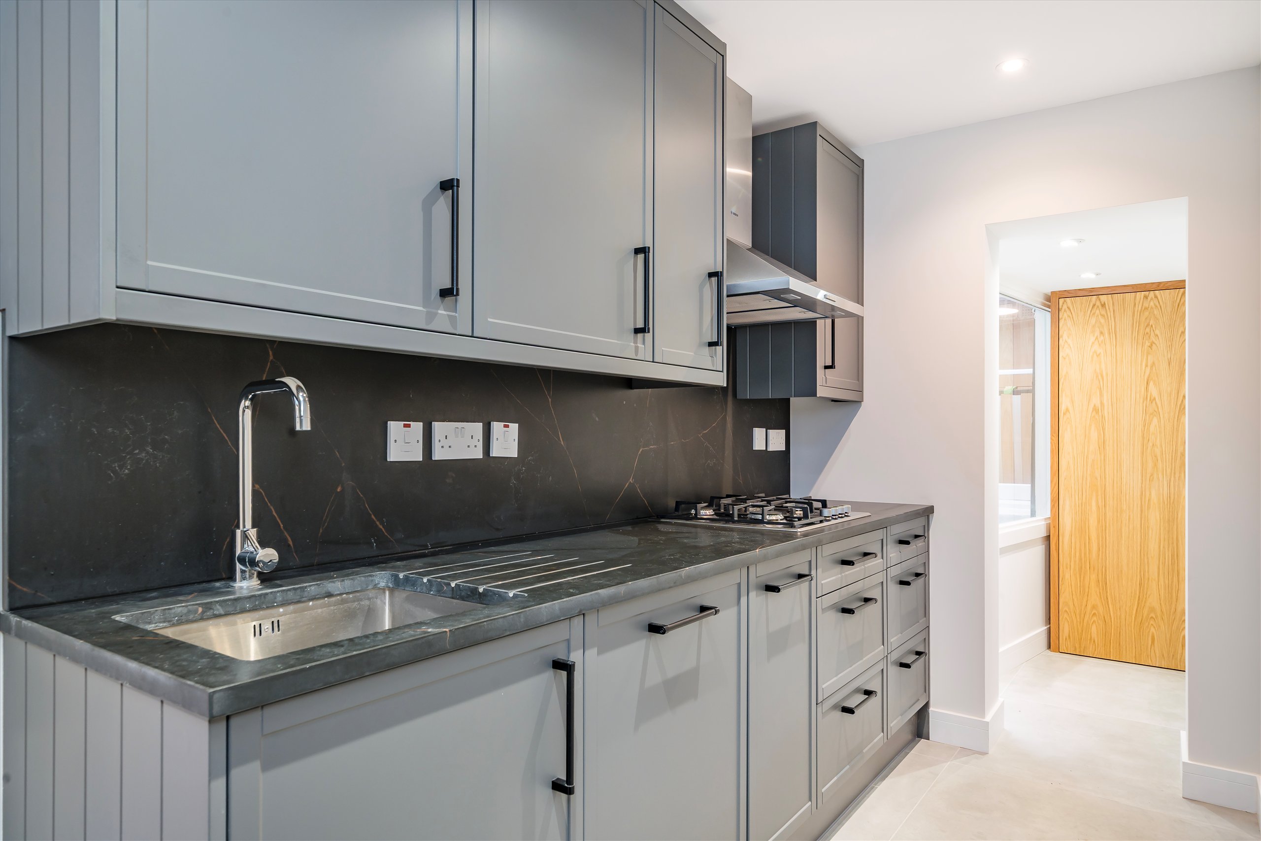 The separate, fully fitted kitchen offers a sleek and practical space for preparing your favourite dishes, while the dedicated study area provides a perfect spot for working from home.