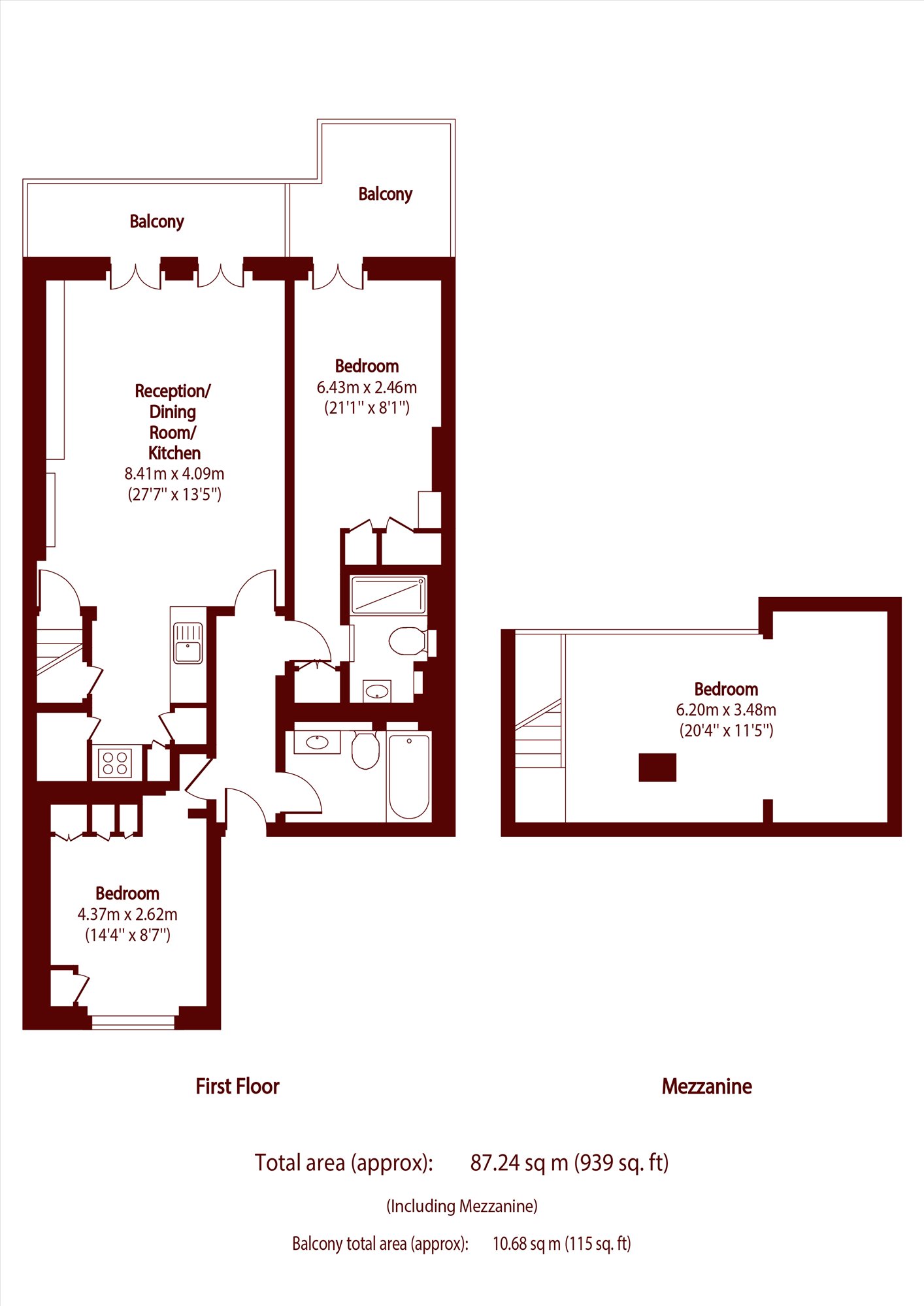 This beautiful flat comes to the market boasting two double bedrooms, two bathrooms and an additional study/bedroom on the mezzanine. There is a separate, modern kitchen which is fully fitted. The property spans the first floor and has been meticulously designed throughout with wooden floors and a private balcony overlooking the private garden square.