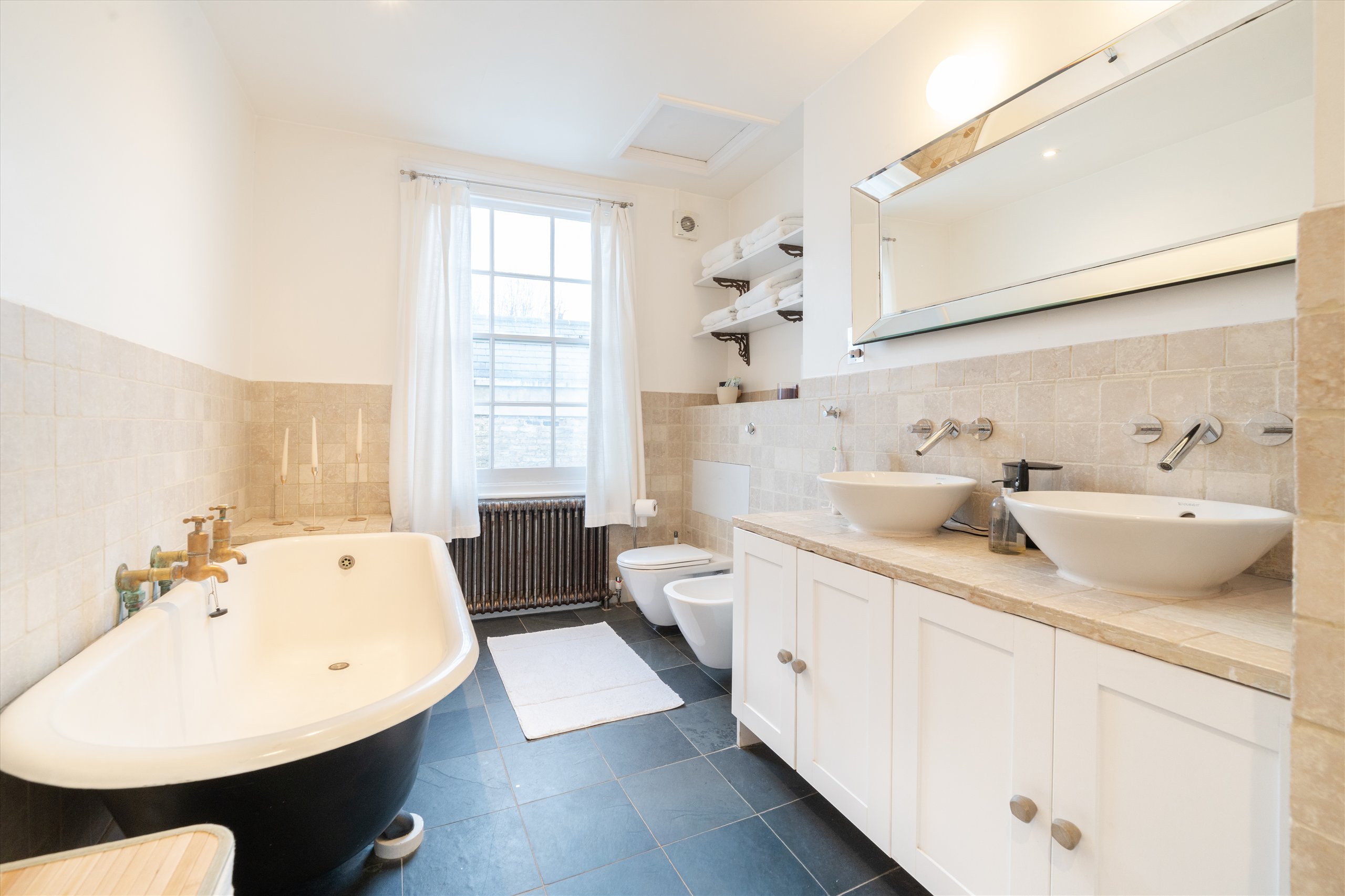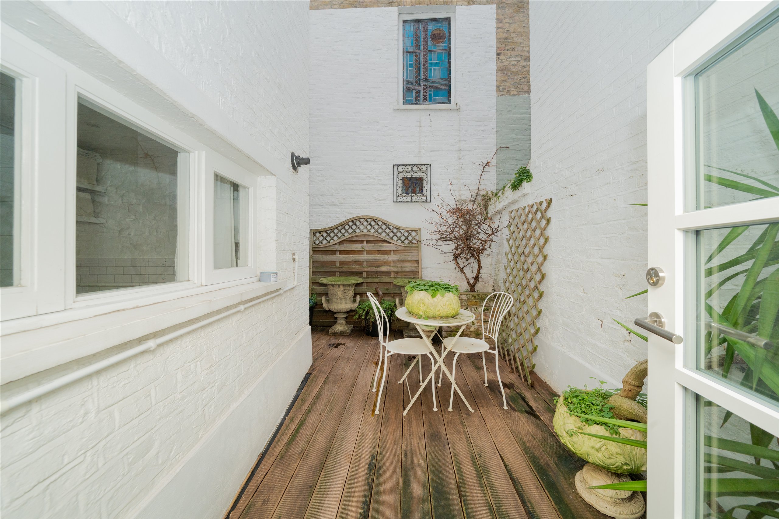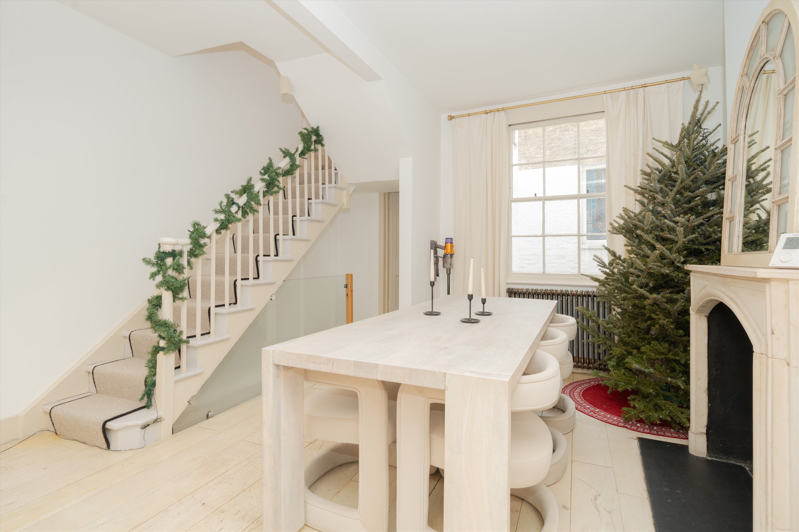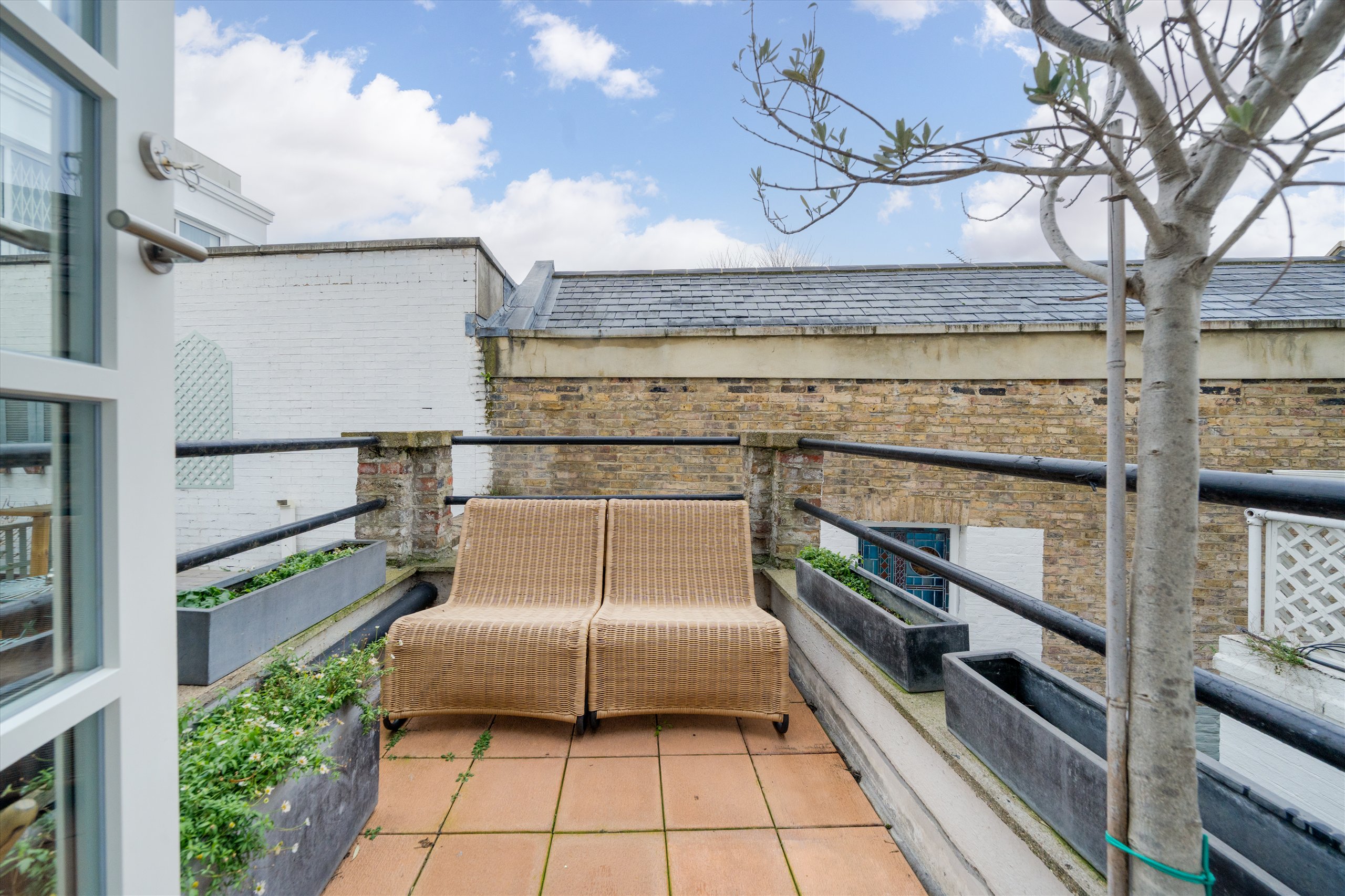 The property benefits from good natural light, wood flooring throughout and high ceilings. Accommodation includes three bedrooms, a double drawing room with large sash windows, a traditional cottage style kitchen, two bathrooms, a private rear garden and a south-facing roof terrace.