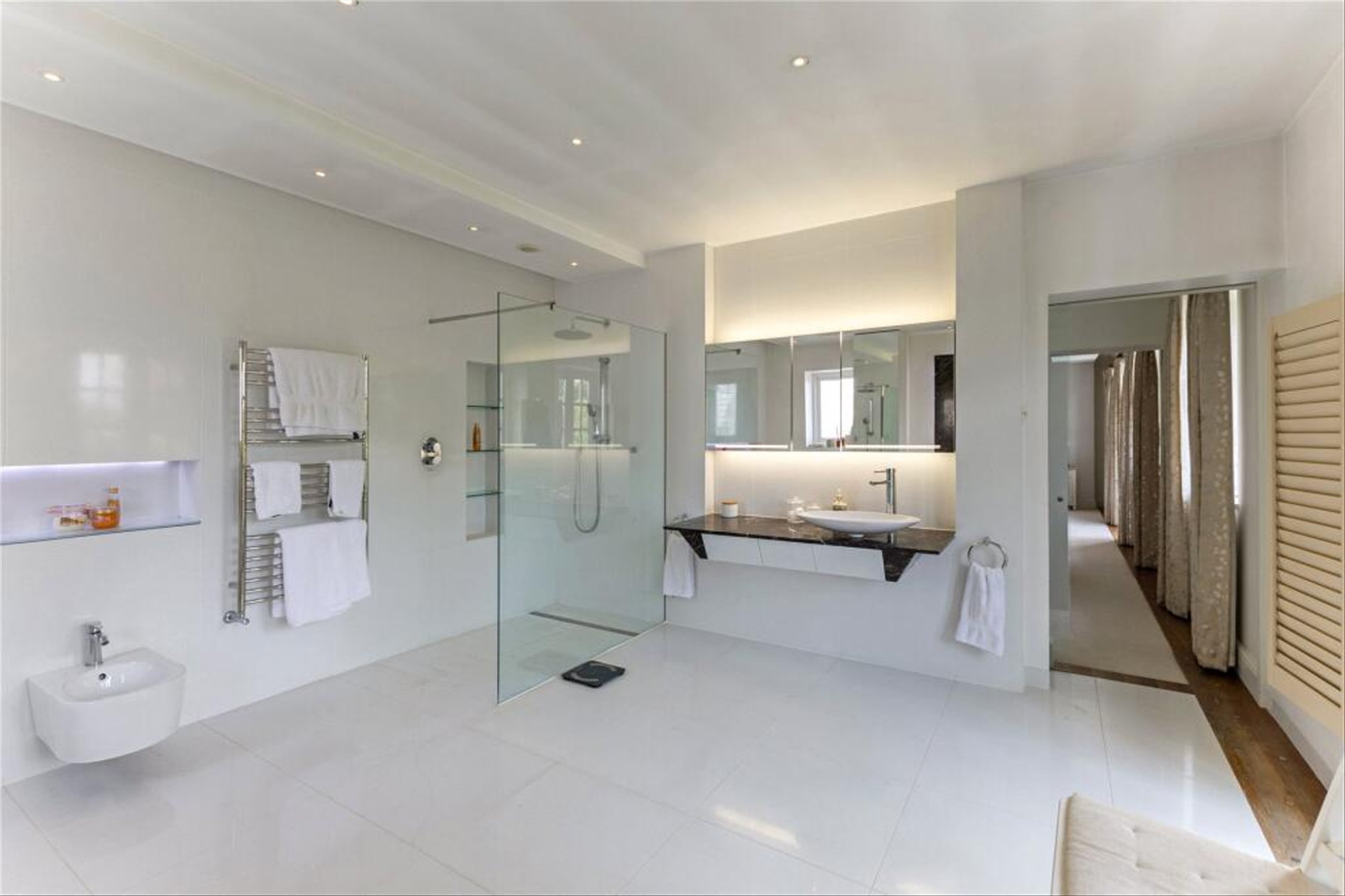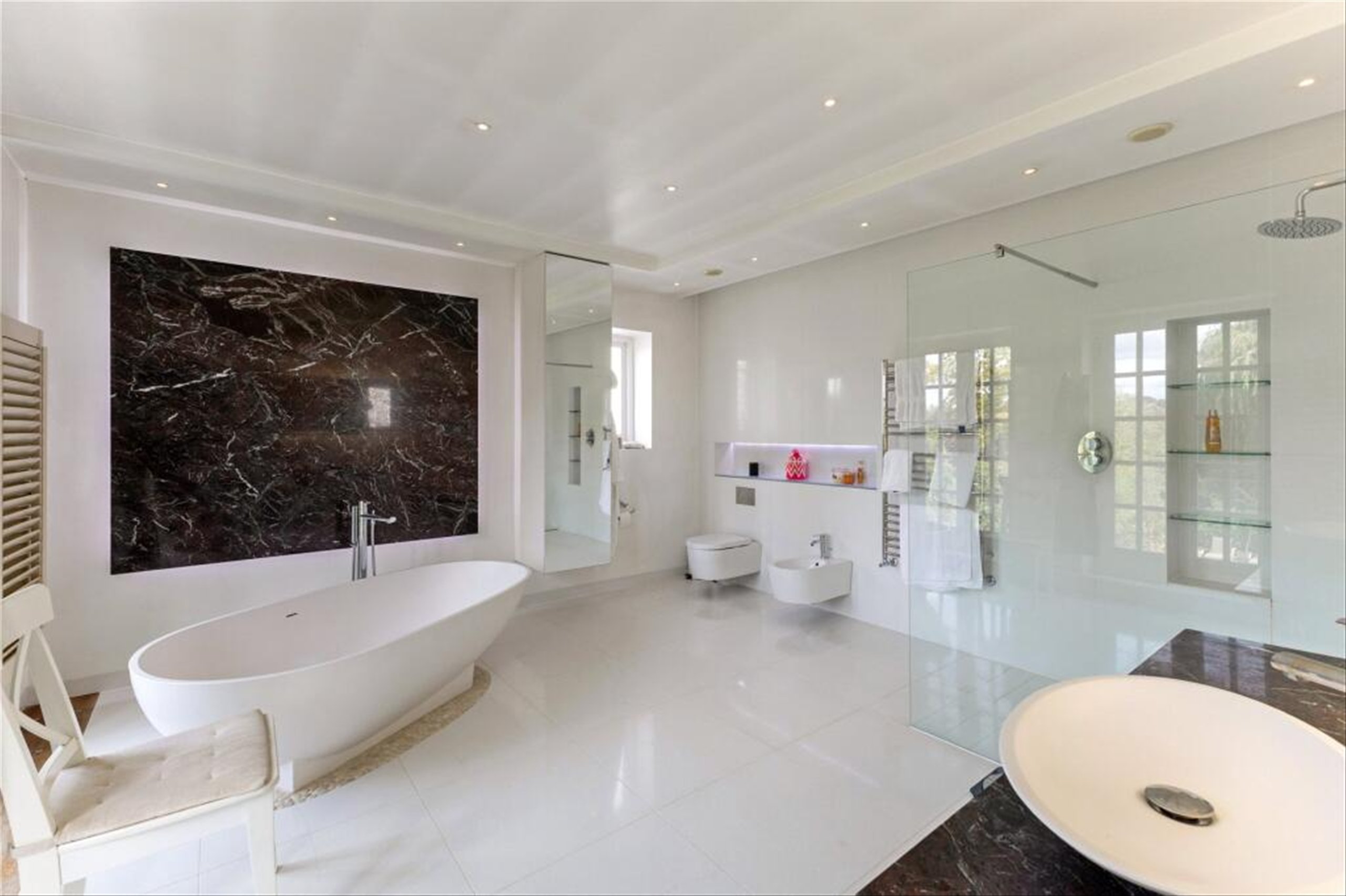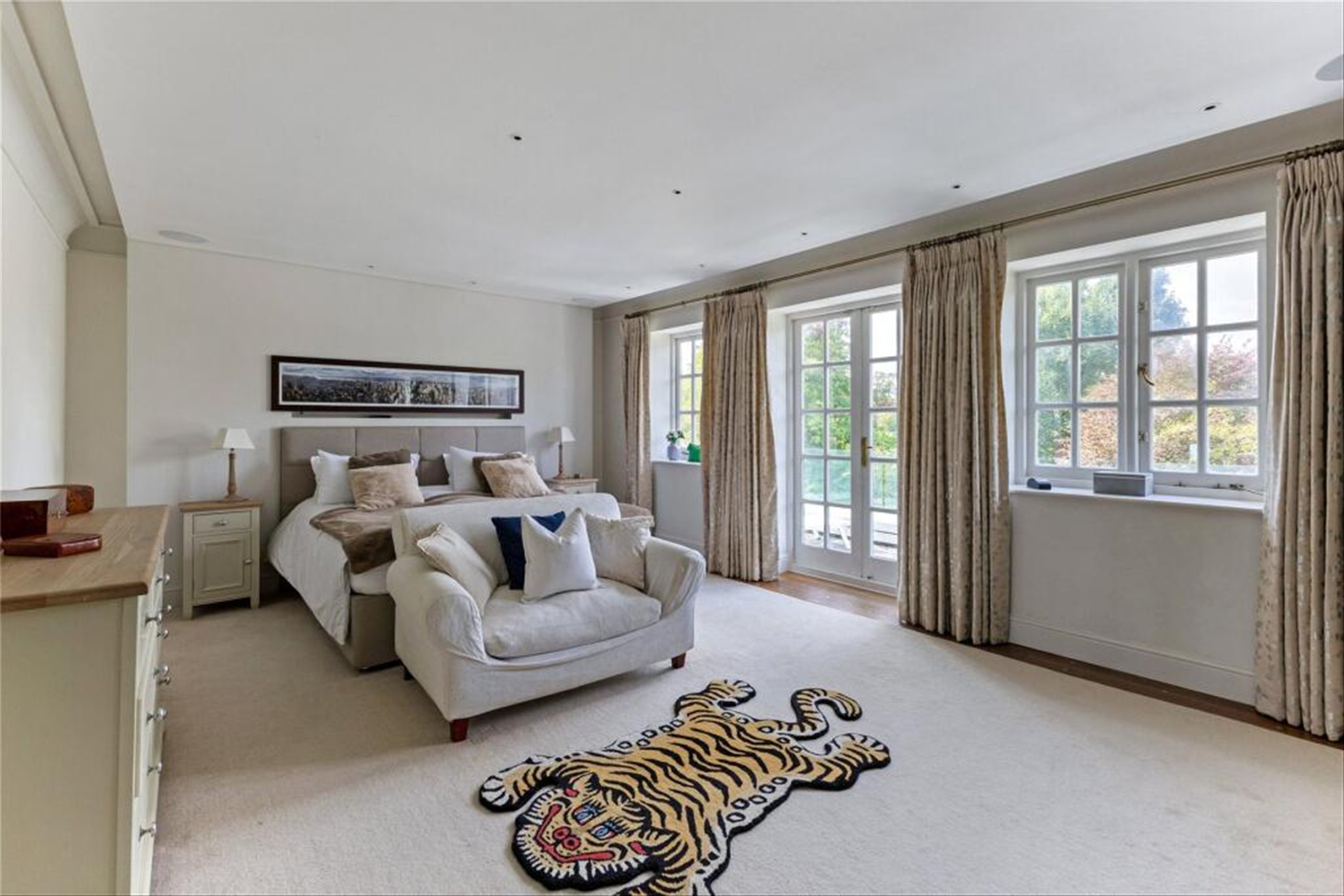 Accommodation is generous, with well-proportioned bedrooms and luxurious bathrooms, including a spa-like principal suite. A sweeping staircase and elegant landing add to the sense of grandeur.
