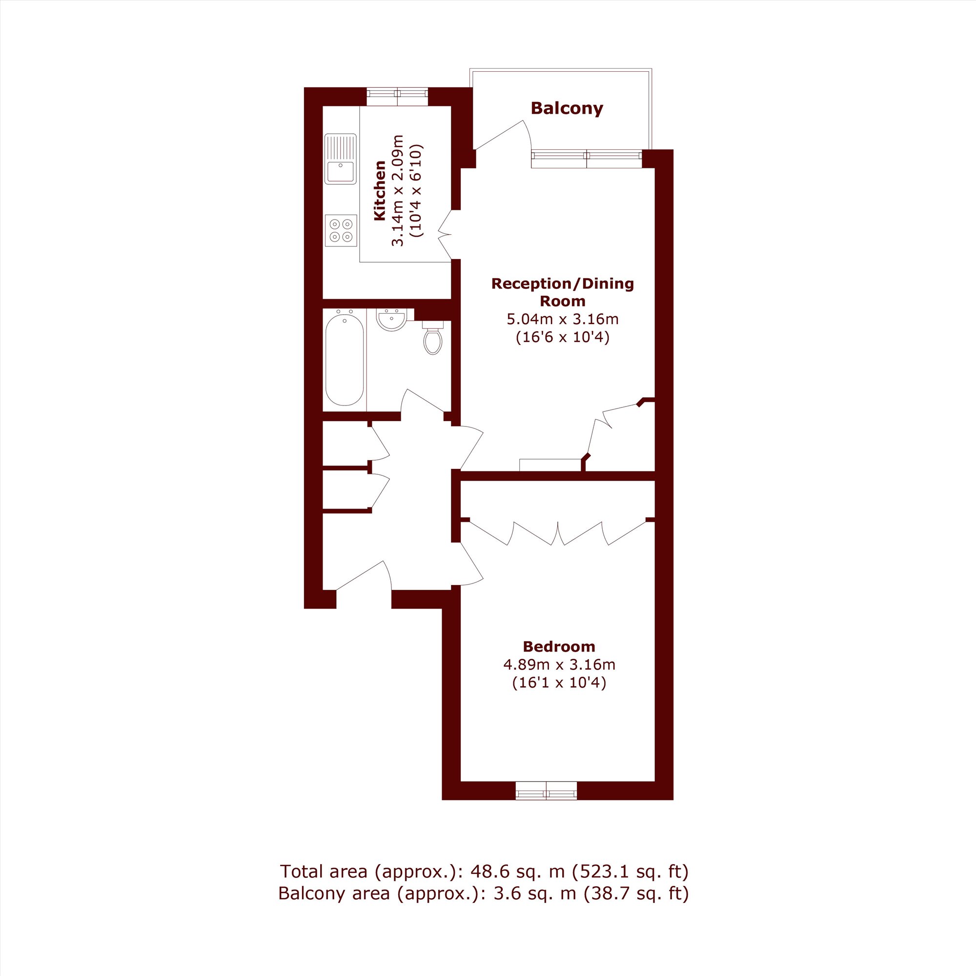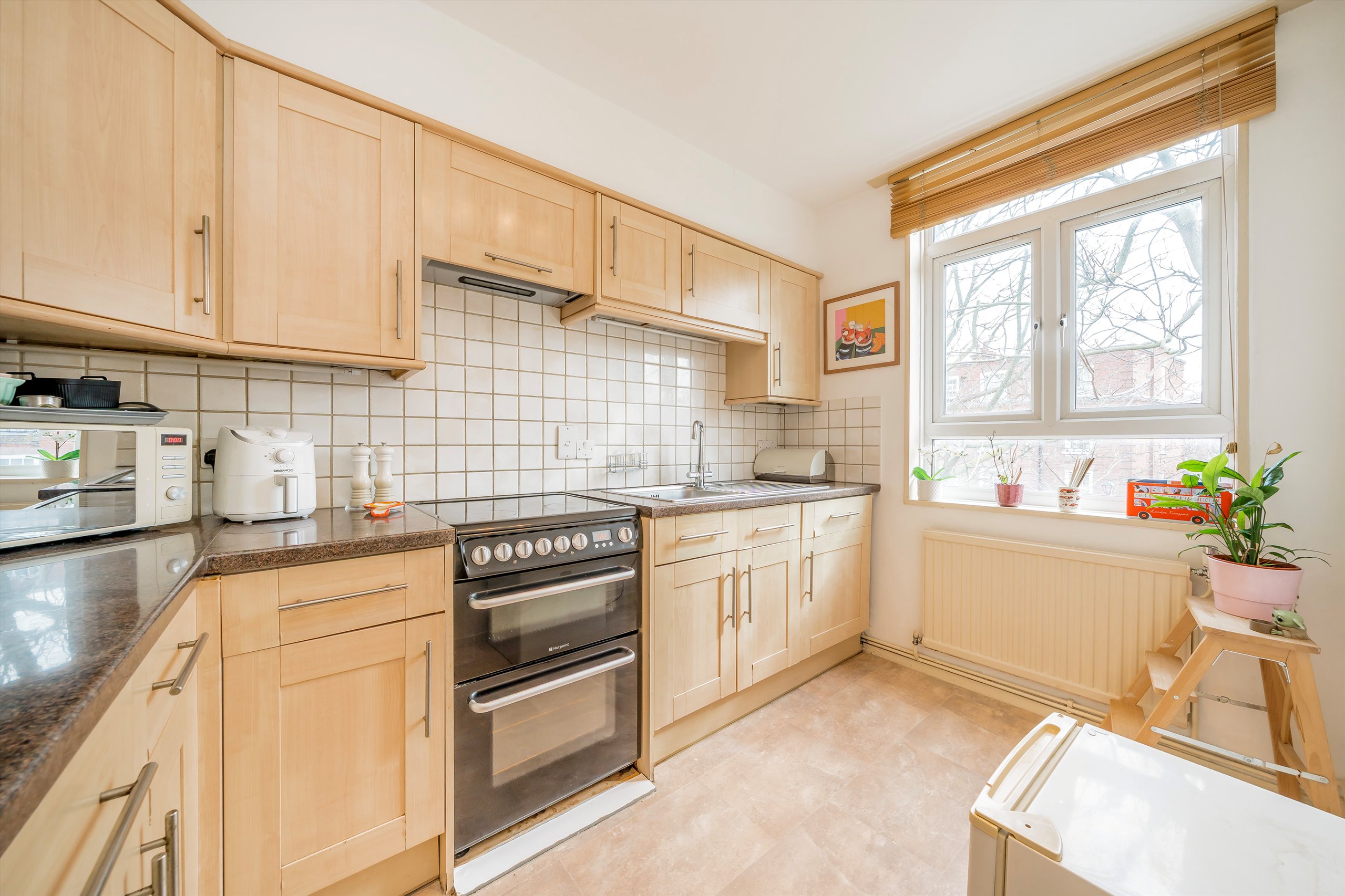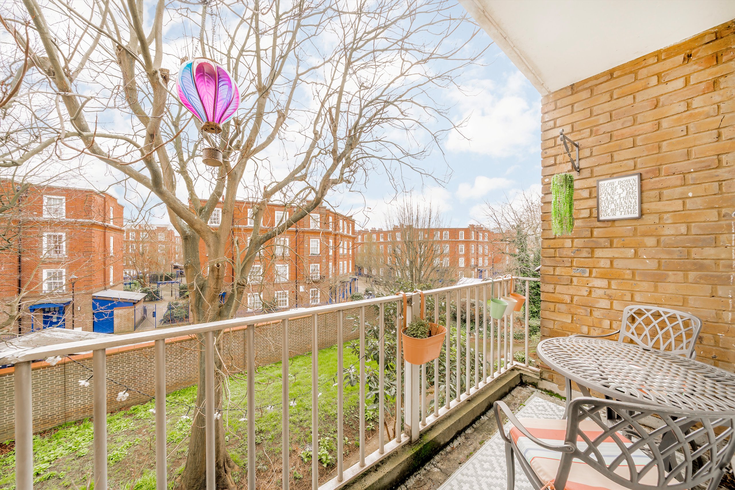 The accommodation comprises one large double bedroom with built-in storage, a sunny reception room with direct access to a private balcony, an eat-in kitchen and a well equipped bathroom. The flat will be newly painted and carpeted prior to a new tenancy.
