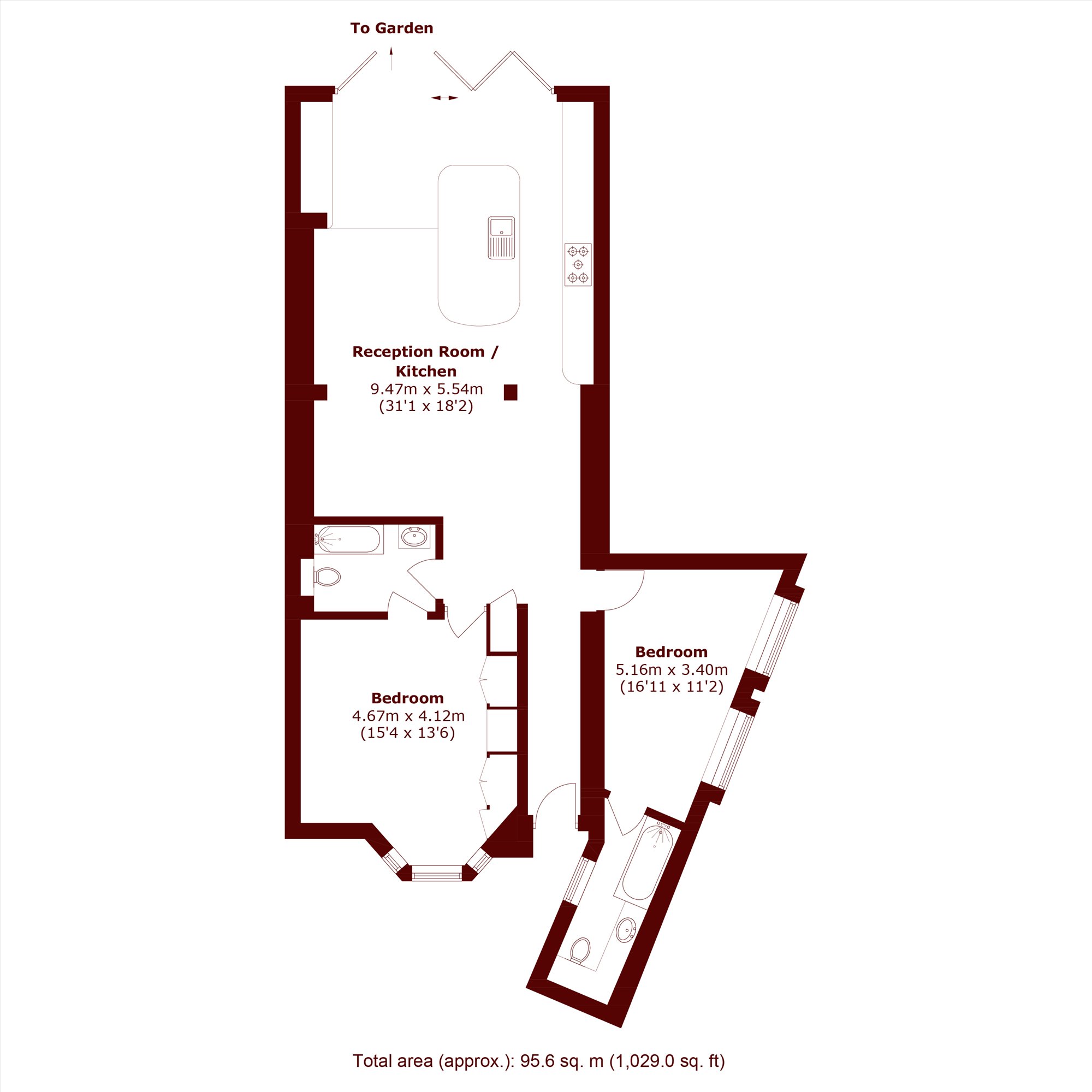 This bright and spacious property features a modern open-plan kitchen and living area, perfect for entertaining or relaxing, with direct access to a private garden offering excellent outdoor space. Both bedrooms are well-proportioned doubles, and the flat further benefits from two contemporary bathrooms.
