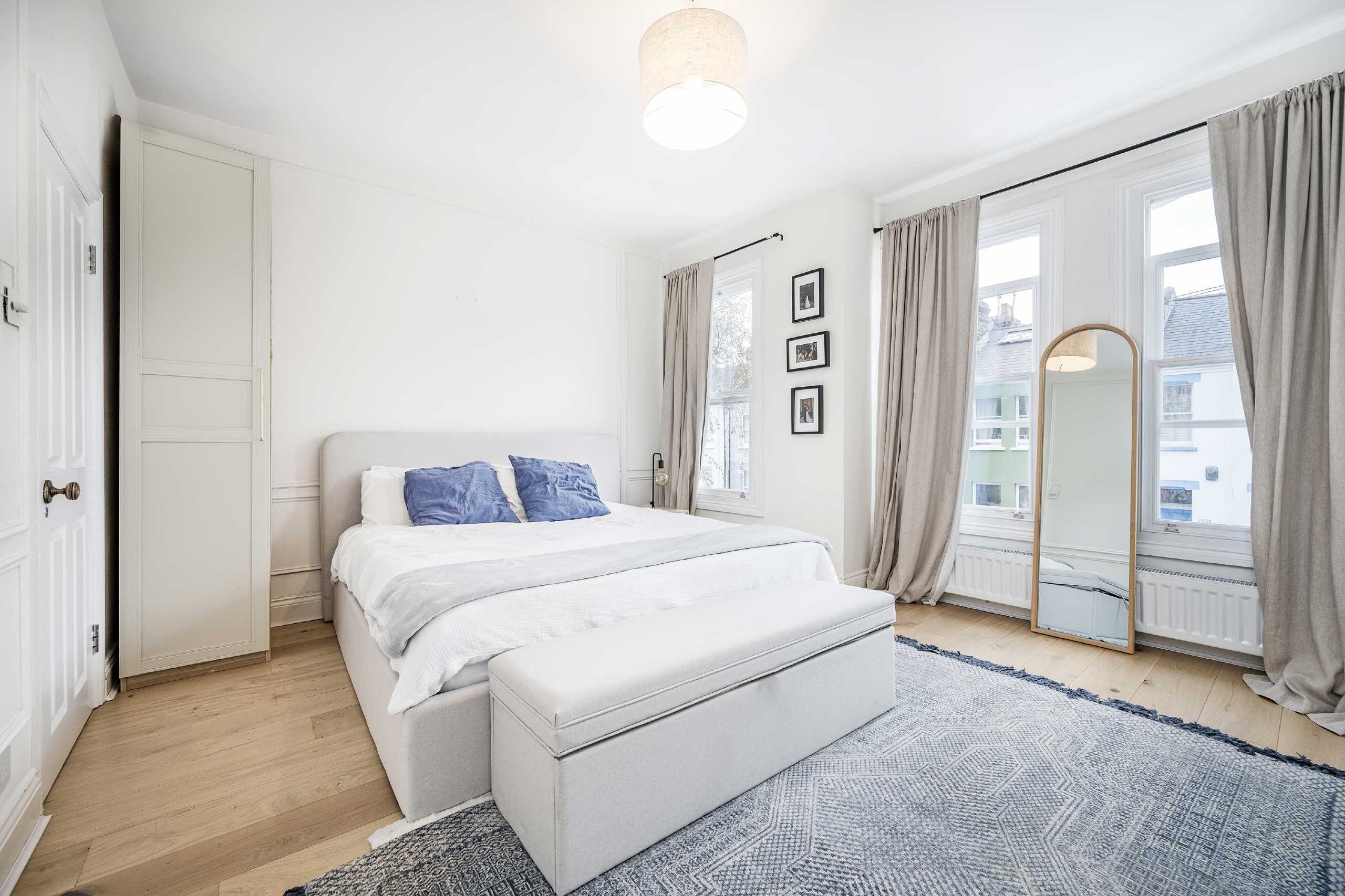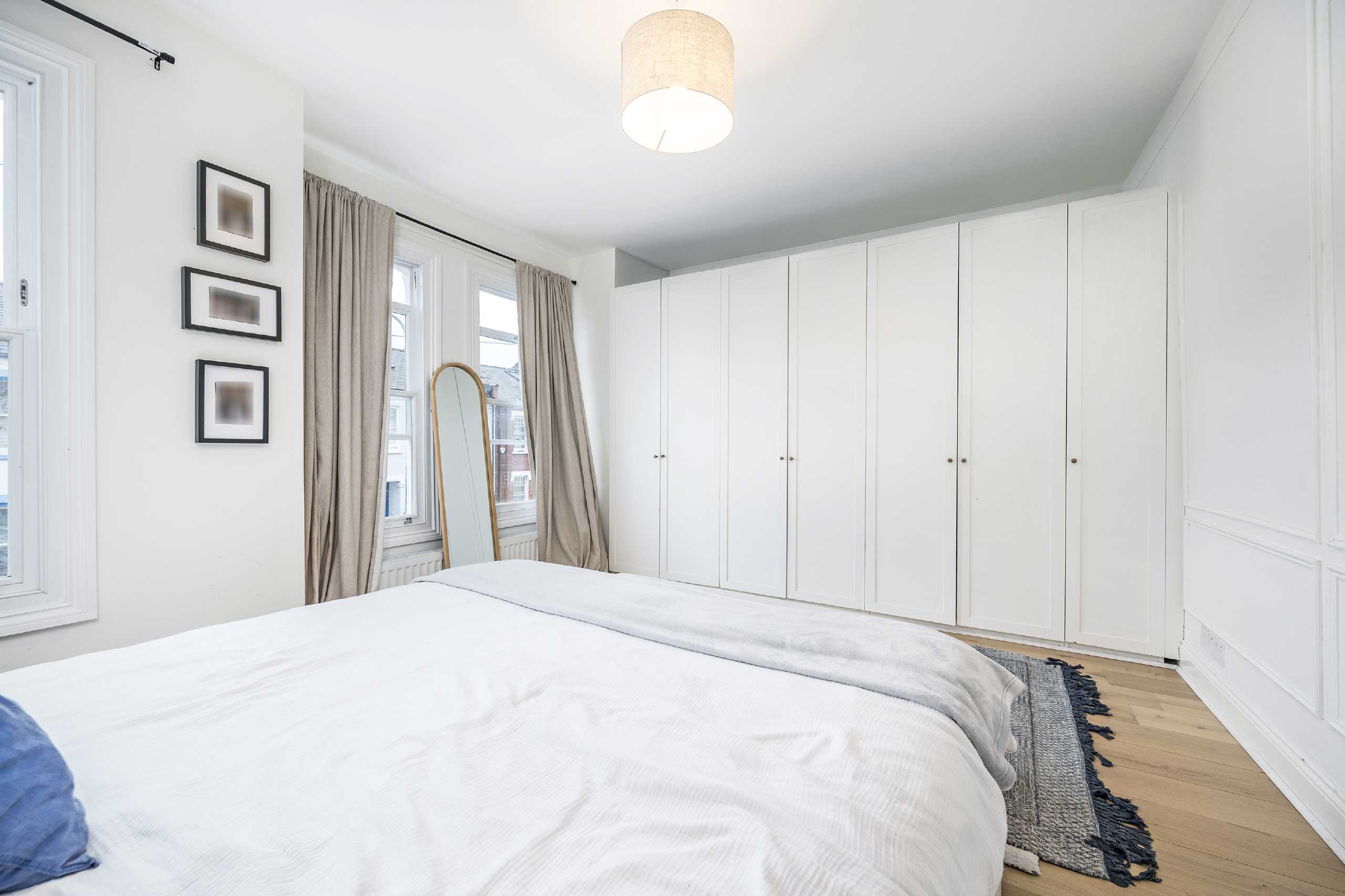 This stunning property is arranged over the first and second floors of a lovely period conversion and has been refurbished to a very high standard throughout. The first floor is made up of three good sized double bedrooms, one of which benefits from having an ensuite shower room, and there is a also a family bathroom. The main bedroom is a huge space fitting comfortably a super king size bed and it has an abundance of built in floor to ceiling wardrobes. Upstairs there is a stylish kitchen with integrated appliances, and an incredibly spacious living room which is flooded with natural light. This room is 23 ft in length so a fabulous space for entertaining.