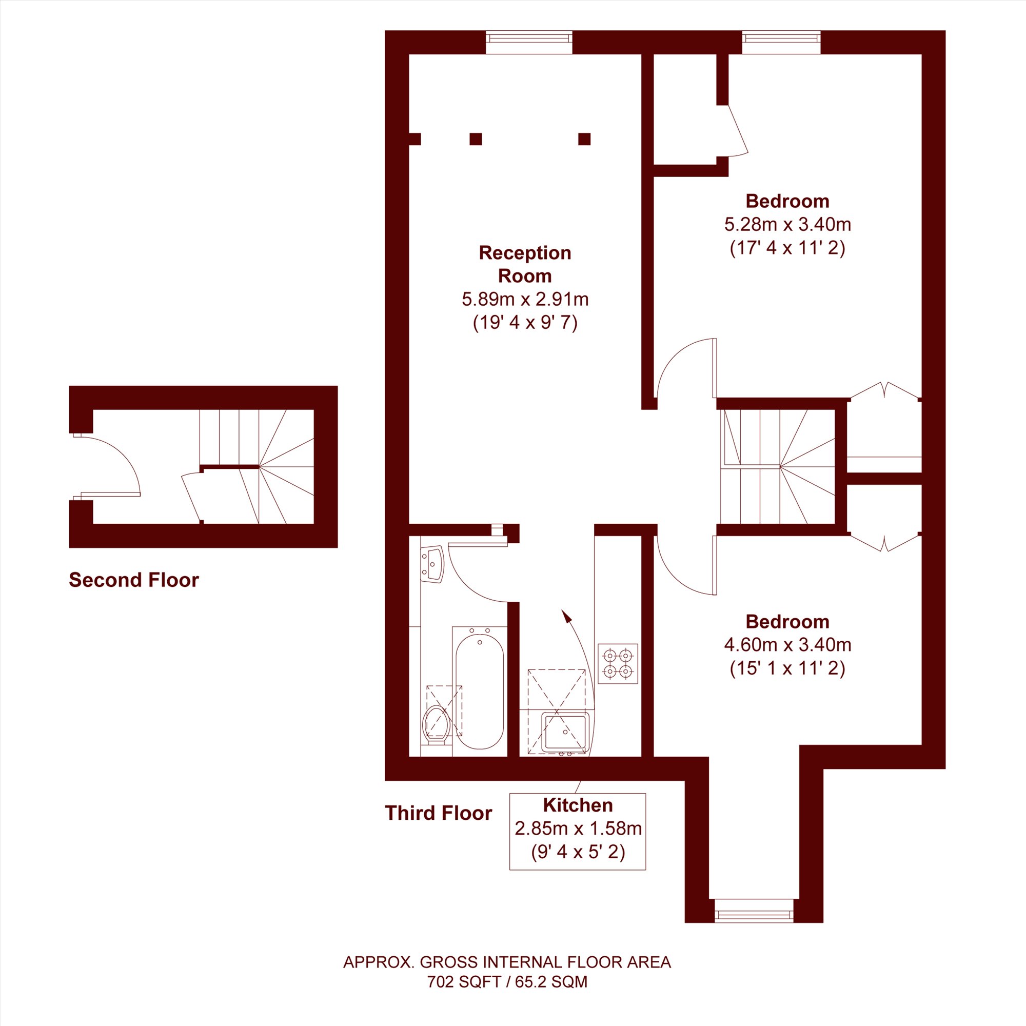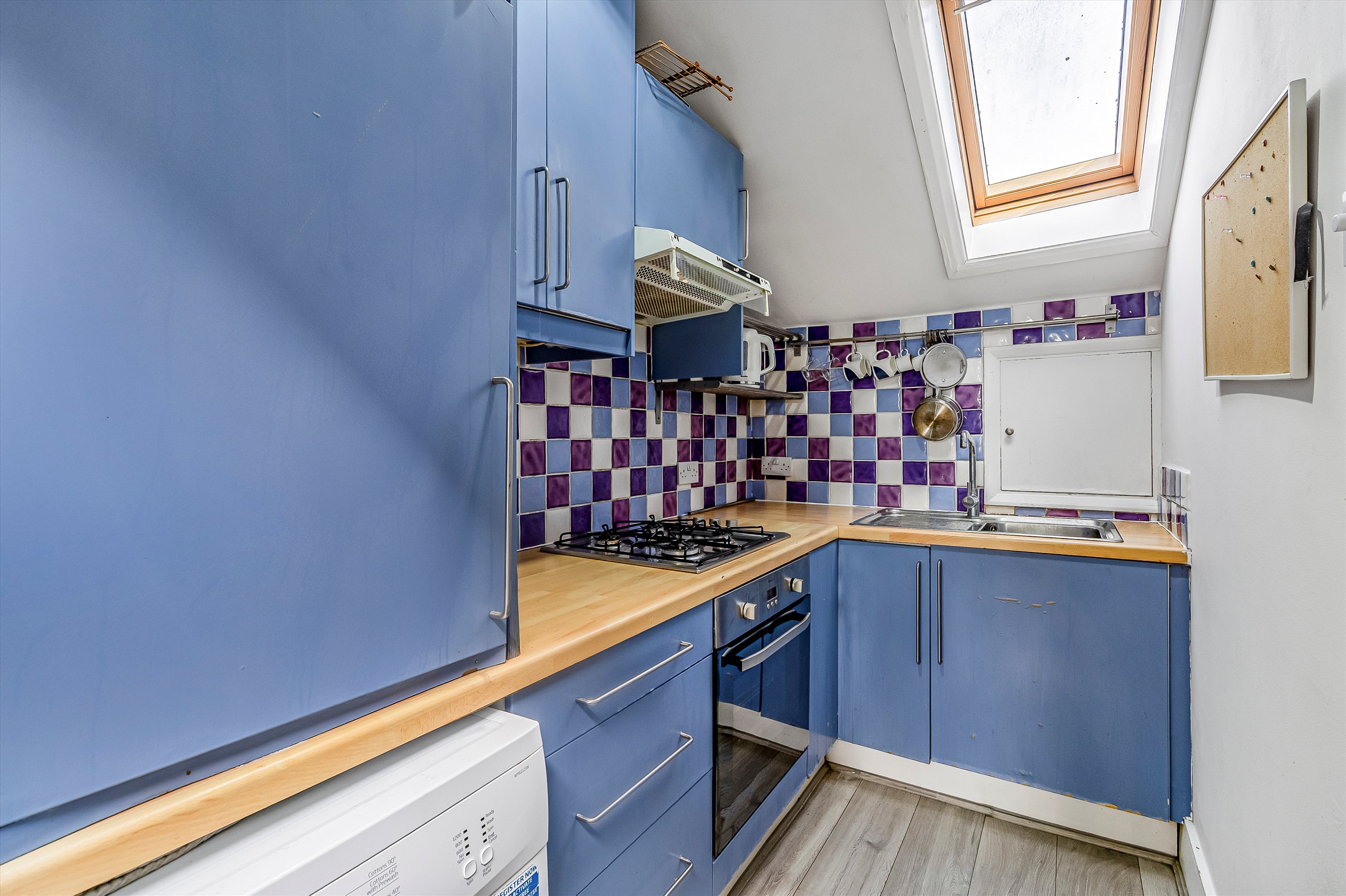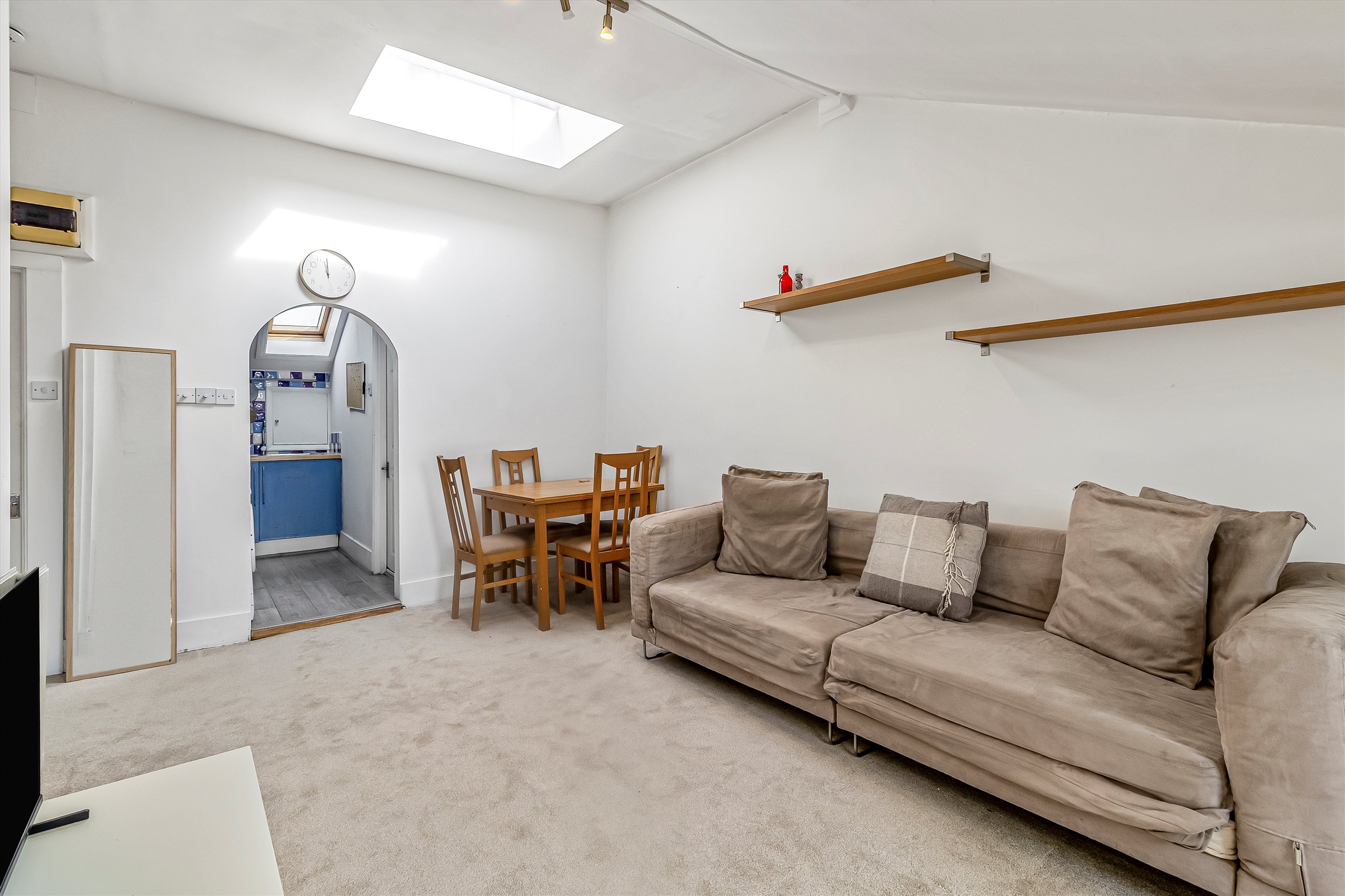 Set on the top floor of a period conversion, this two-bedroom apartment features a layout defined by varied ceiling heights and the character of the building's eaves. Naturally bright throughout the day, the reception space provides a quiet setting with an open outlook.