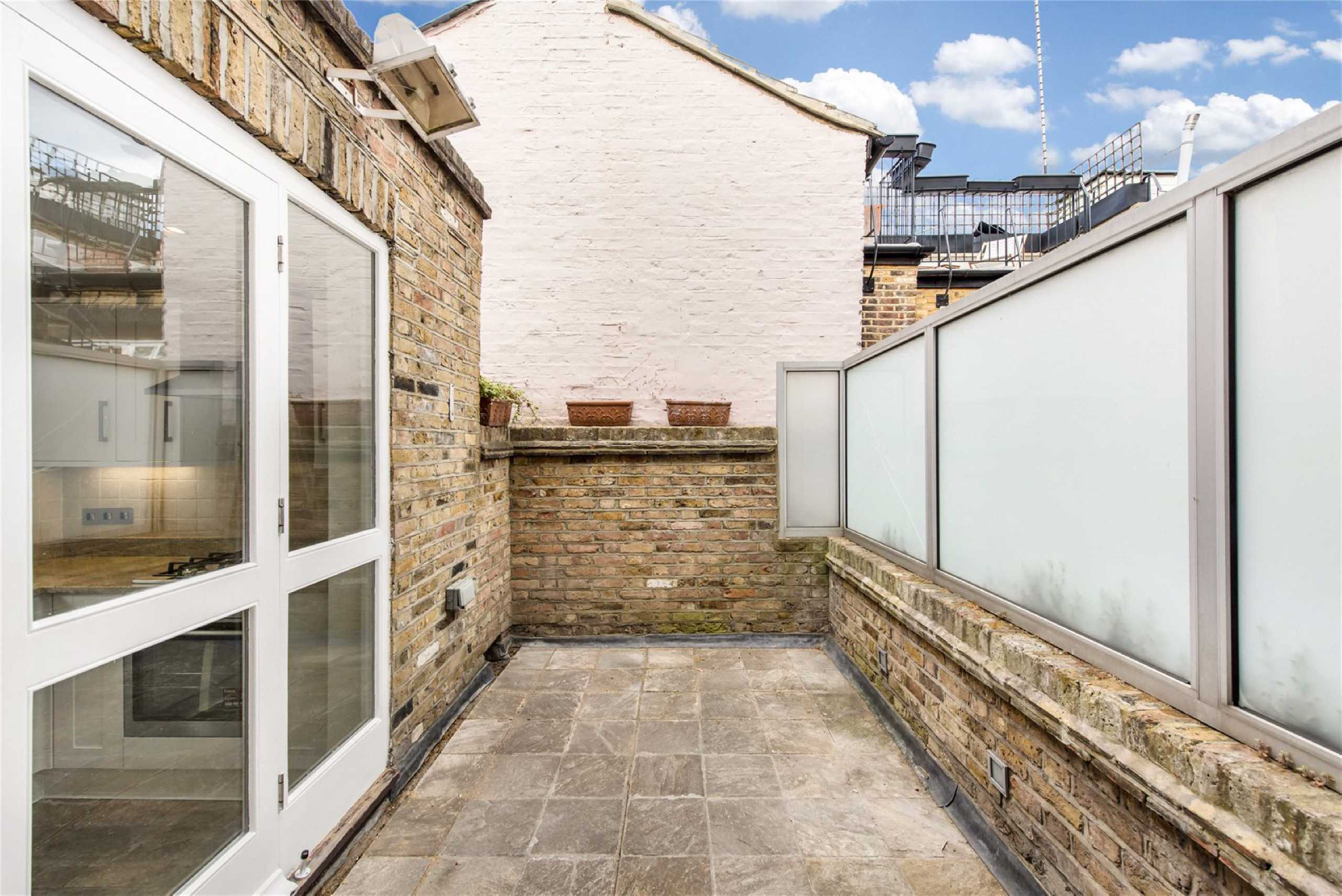 Arranged over three floors, the property features a bright and spacious reception room with direct access to a private roof terrace ideal for entertaining or relaxing in the sun. The principal bedroom benefits from an en-suite bathroom and its own access to the terrace, while a second double bedroom is served by a modern family bathroom.