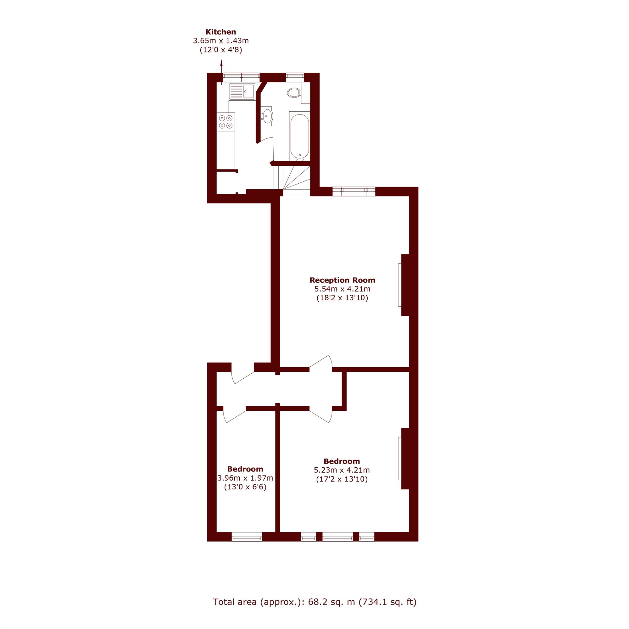 A spacious first floor two bedroom flat that has been recently refurbished and fully repainted throughout. It offers two large double bedrooms, a bright reception room, a separate kitchen, and a newly fitted bathroom with a bath and shower over.