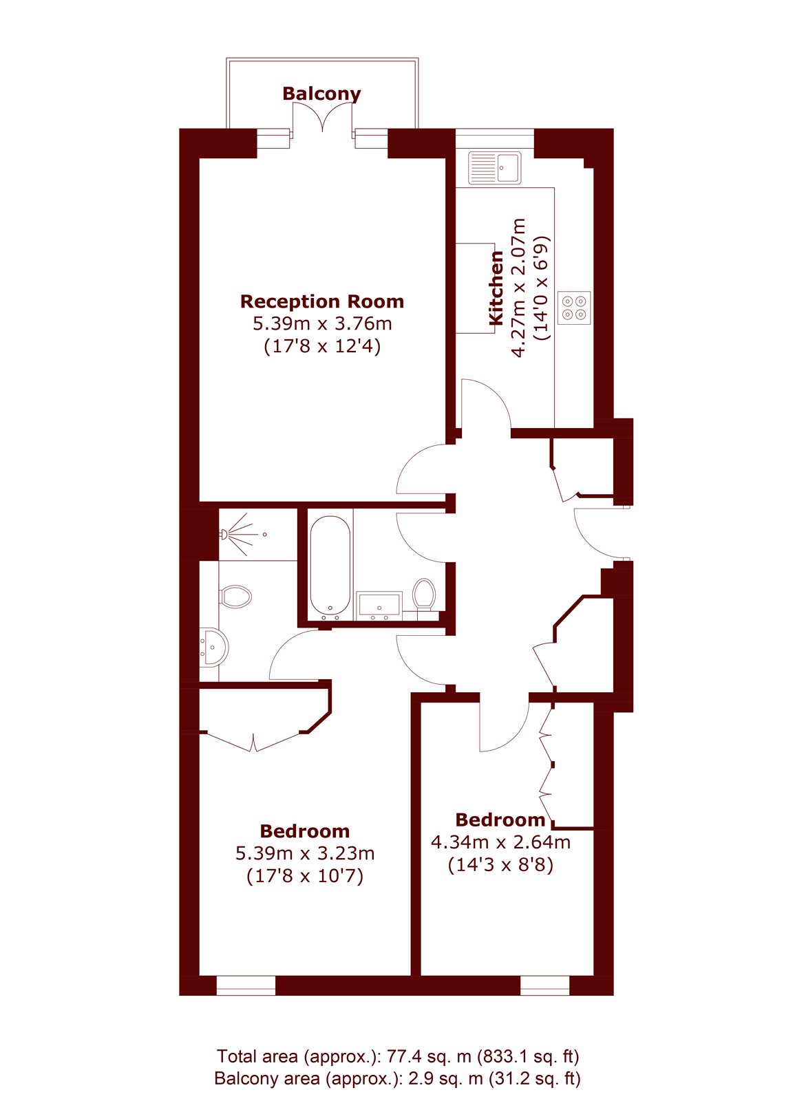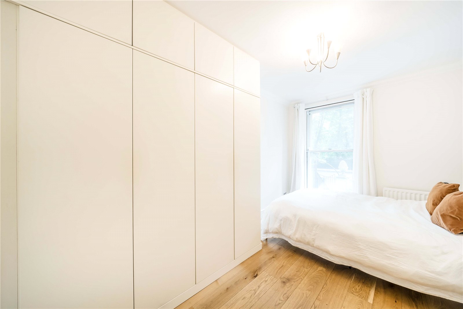This impressive apartment is situated on the raised ground floor and boasts a modern finish throughout. The flat benefits from a master bedroom with en suite bathroom and excellent storage space, a second double bedroom (again with storage) and a family bathroom. Furthermore, there is a large south-facing reception room with balcony and a modern separate kitchen, fully equipped and with lots of cupboard space. An off-street parking space is available by separate negotiation.