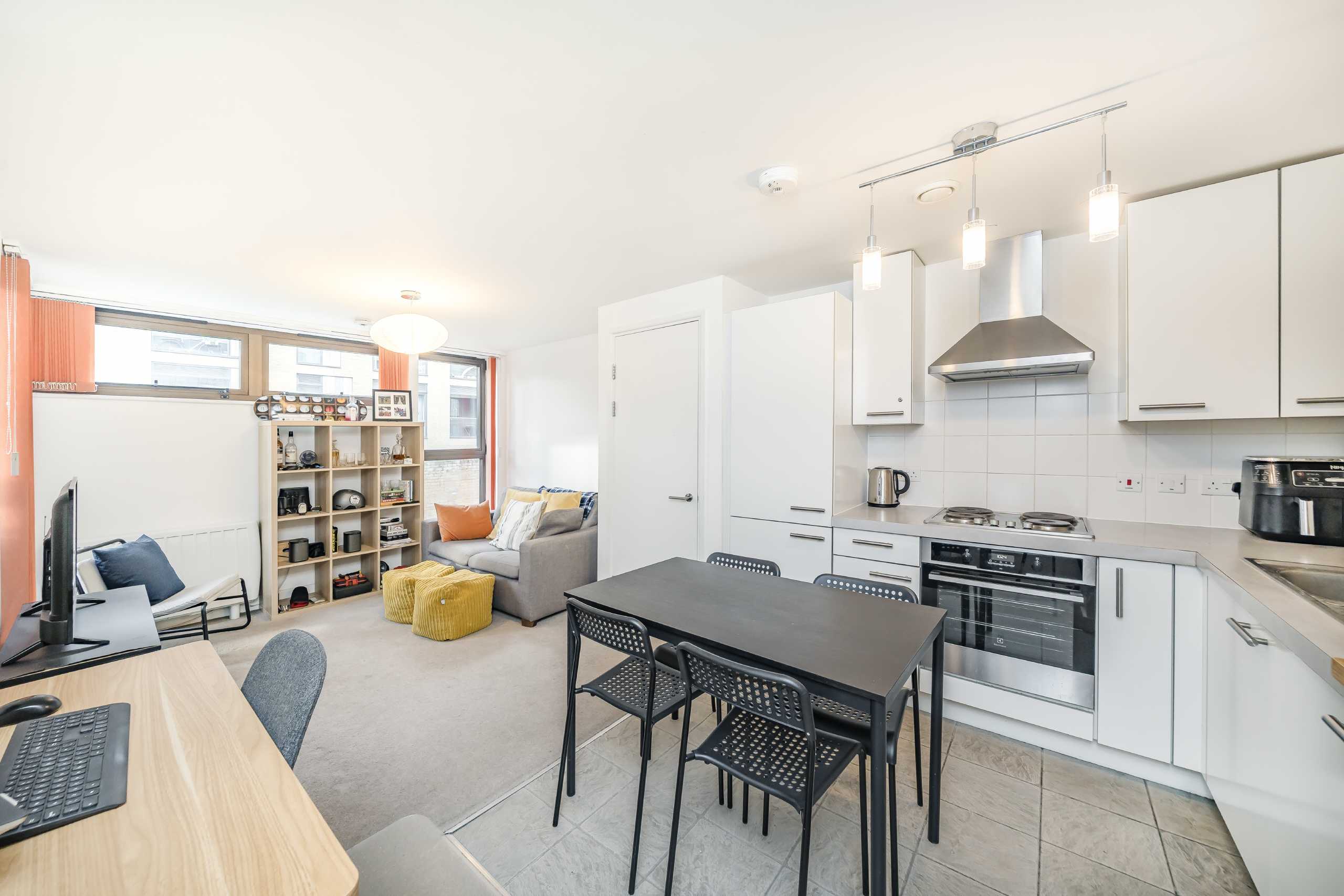 The apartment is neutrally decorated throughout and comprises open-plan reception room and kitchen with integrated appliances, a master bedroom with built in storage and a modern family bathroom. This property further benefits from lift access, an entry phone system, a communal roof terrace and a private parking space available by separate negotiation.