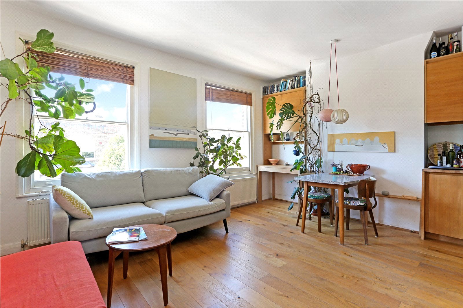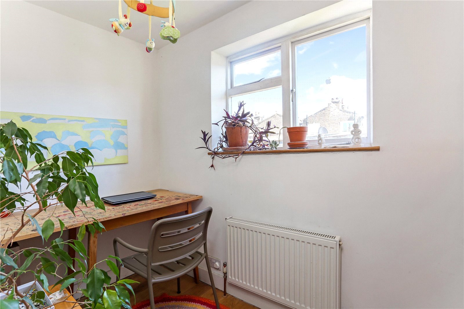 Arranged over the top floor of a beautiful Victorian building, this stunning one-bedroom maisonette is presented with stylish interiors and is flooded with natural light. With a private entrance on the ground floor the stylish apartment comprises a study/nursery and a family bathroom on the half level, leading to a generous open plan reception room with two sash windows and a large double bedroom on the first floor. Hardwood flooring extends throughout the reception room of the charming property, which has excellent storage solutions.