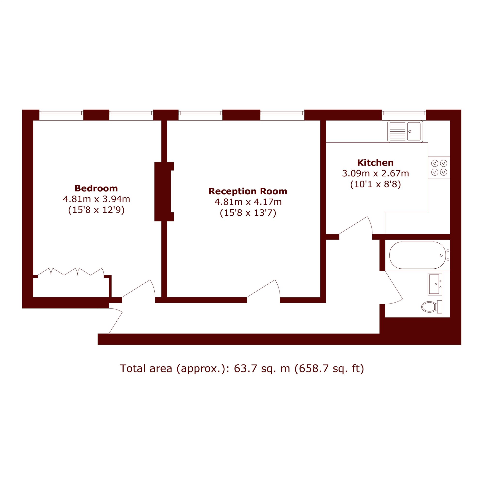 Comprising of a long entrance hall which leads onto a very large double bedroom with ample built in storage, a spacious reception room with wooden parquet floors. There is a separate fully fitted kitchen and a modern bathroom. The property has high ceilings throughout.