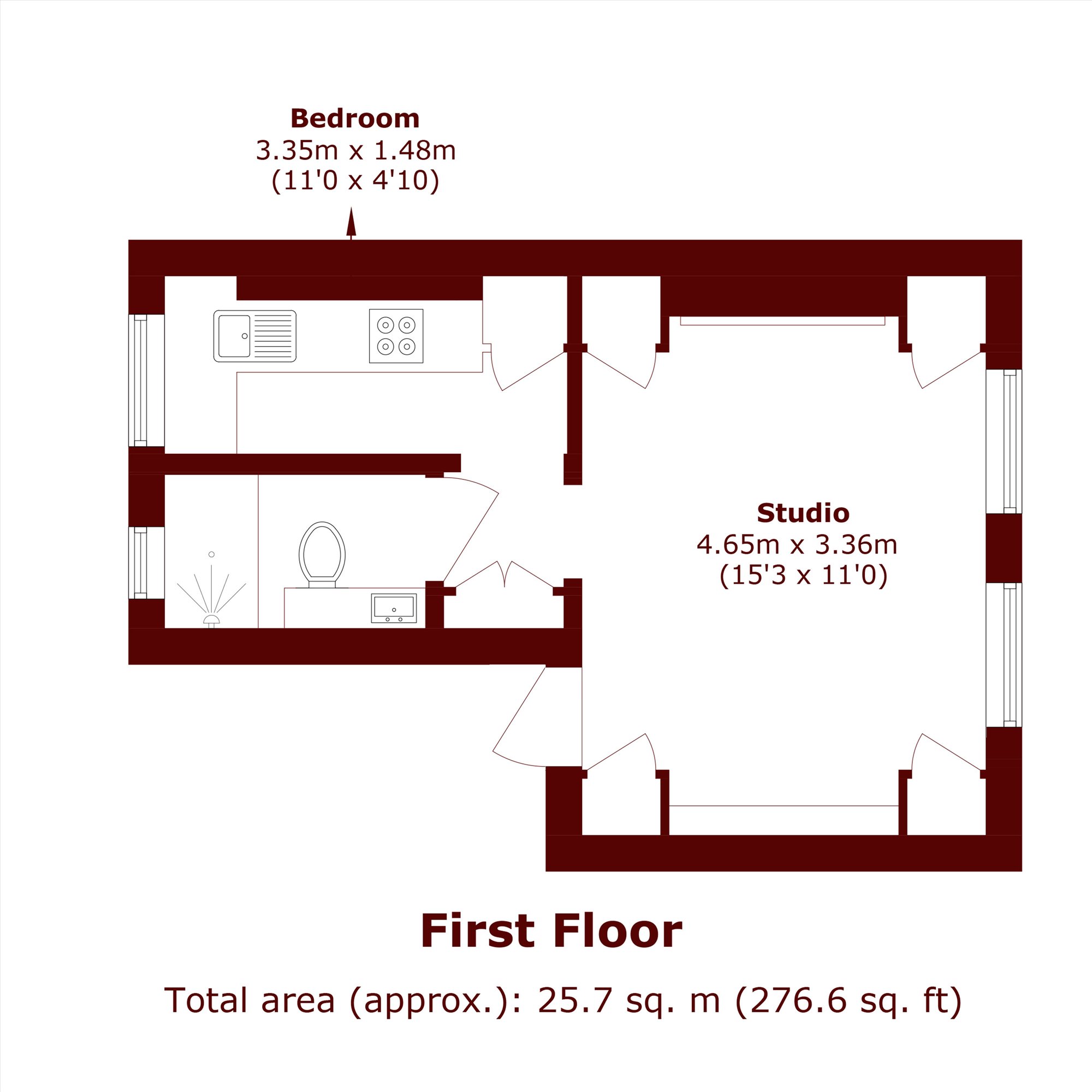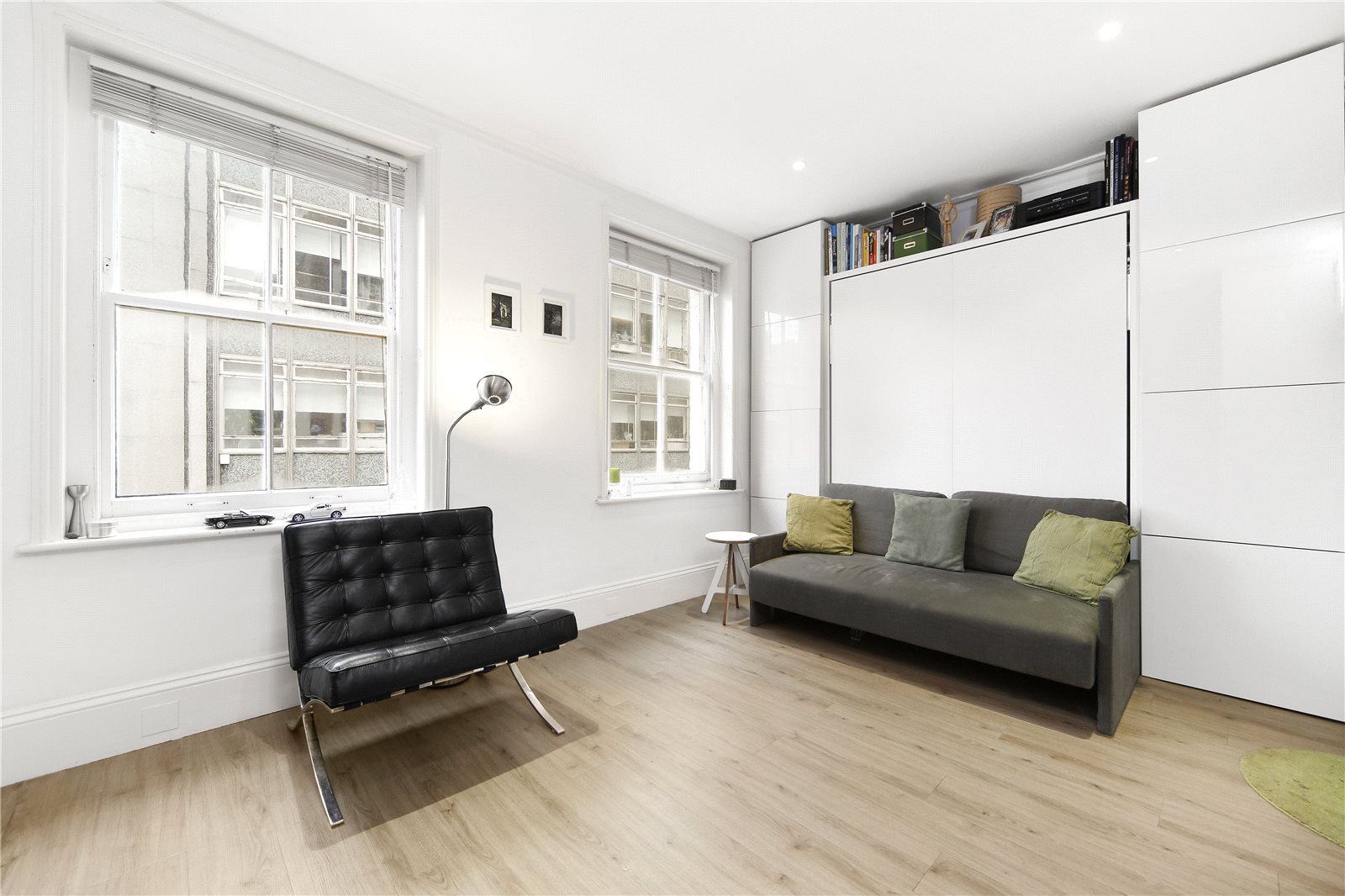 This stunning apartment is presented in excellent condition and finished to a very high standard to suit the landlord, complete with top of the range fixtures and fittings. The property comprises a large studio room with an easy pull-down bed and masses of built in cupboards throughout consisting equally of shelves and hanging space. The studio room boasts beautiful wood floors, large windows making in bright and airy and an exposed brick fire place. There is a separate, fully fitted galley kitchen complete with a dishwasher and a contemporary bathroom room with walk in shower. The property further benefits from additional storage throughout as well as a washer/dryer.