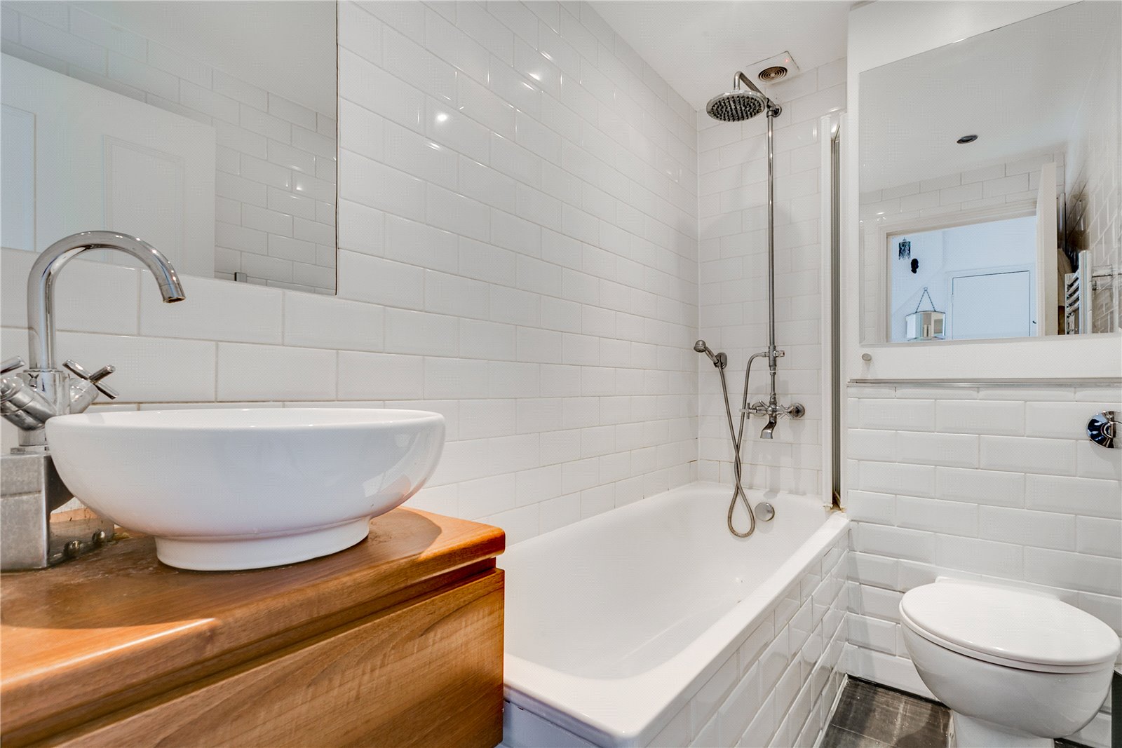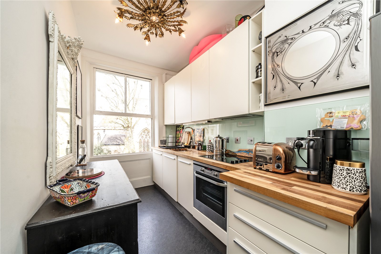 This beautiful apartment is set on the second floor of an imposing stucco-fronted building and comprises a generous reception room, with a period fireplace, a separate well-equipped galley style kitchen with integrated appliances, a good-sized double bedroom with ample storage and a contemporary bathroom. The property further benefits from wooden flooring and an abundance of natural light.