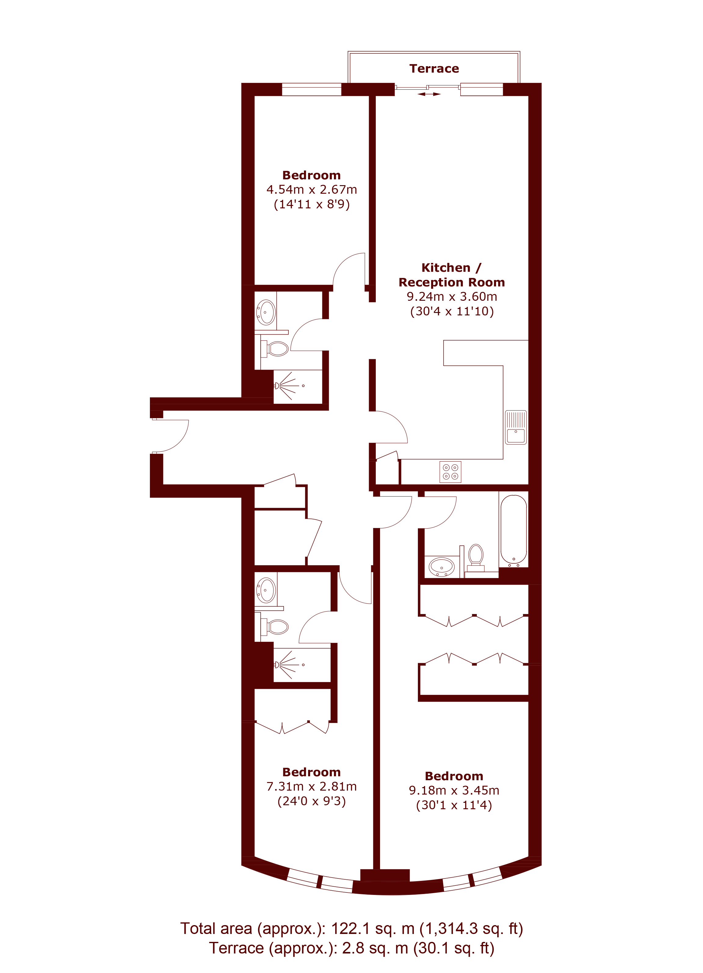 An immaculate three bedroom apartment in this impressive modern development located in the heart of Notting Hill. The flat is neutrally and beautifully decorated and boasts a fully integrated contemporary kitchen with semi open-plan reception room and private balcony overlooking quiet communal gardens, three large double bedrooms with built-in storage, two with en-suites and a further stylish bathroom. In addition the flat comes with the benefits of lift access, a 24 hour porter and on-site gym facilities.