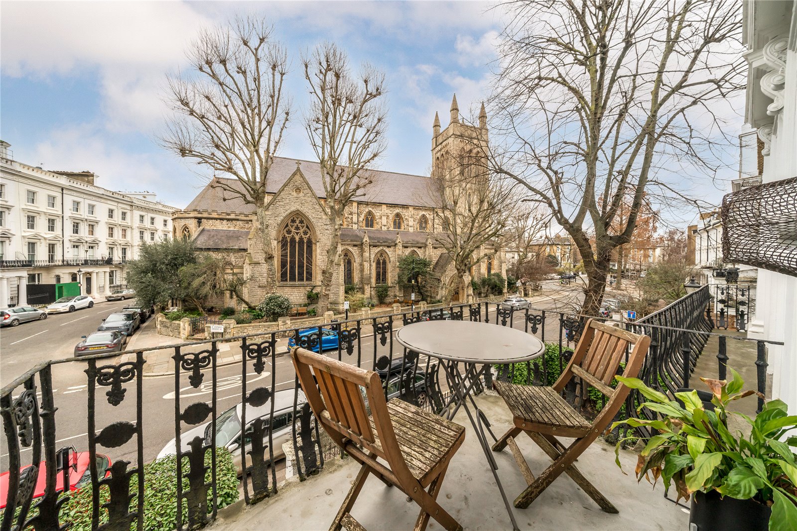 A gorgeous two-bedroom apartment on the first floor with balcony overlooking the church. The apartment is presented in excellent condition throughout and comprises a light and airy reception room with high ceilings, fully-fitted kitchen, two bedrooms with ample storage, and a modern bathroom. The flat further boasts wooden flooring throughout, and abondance of natural light and is neutrally decorated.