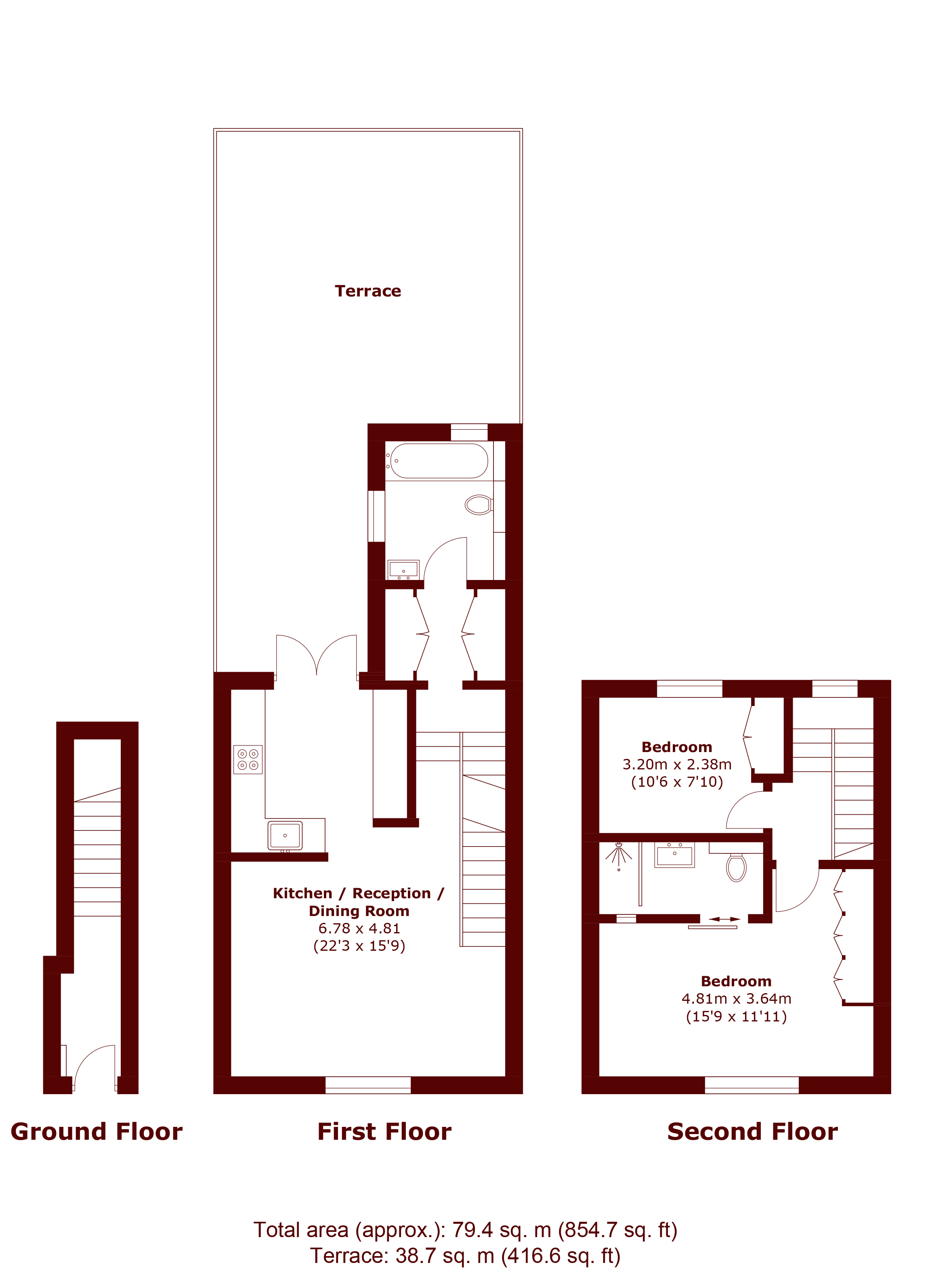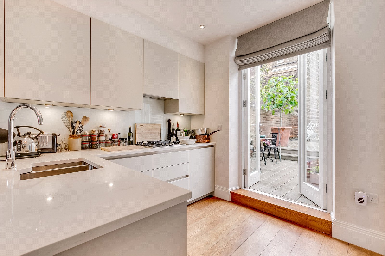 The apartment boasts its own entrance, leading up to a utility room and bathroom. On the first floor is a large open plan kitchen and reception room leading through to a large south west facing roof terrace. On the second floor there is a principal bedroom with en-suite and lots of built in storage, as well as a second bedroom with built in storage. The whole property is in excellent condition with beautiful wooden floors throughout and a high end finish.