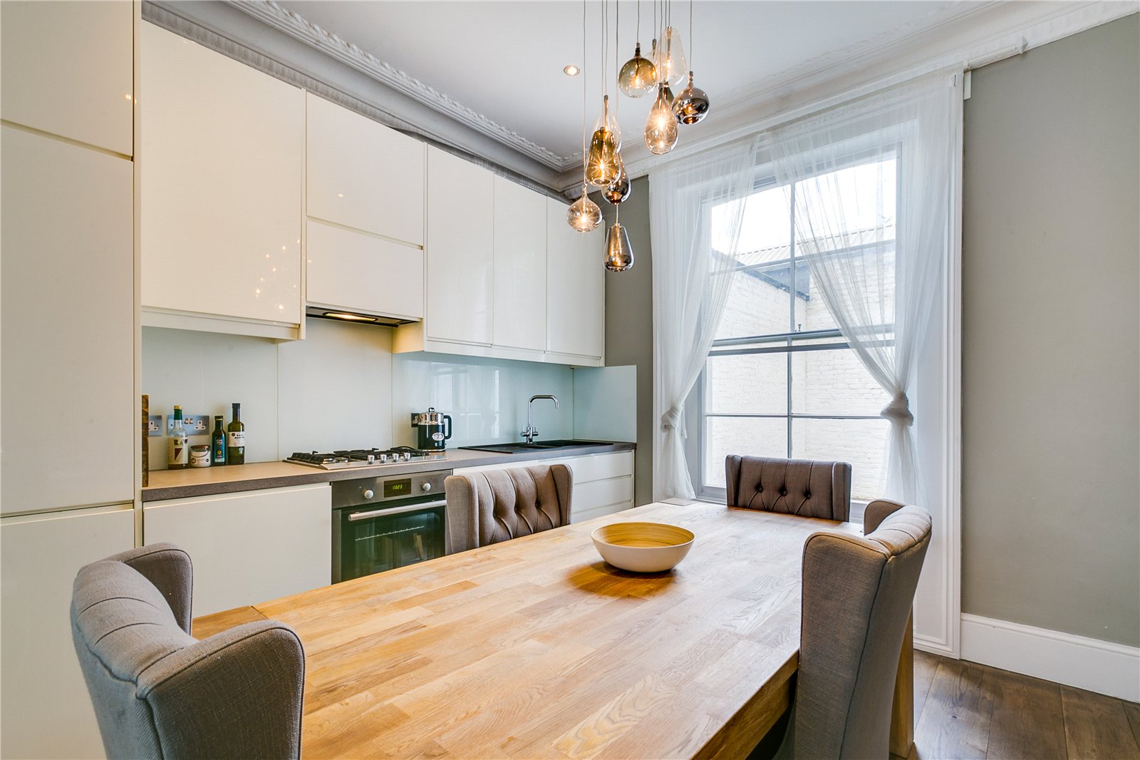 Presented in immaculate decorative order throughout, this stunning apartment boasts a fabulous reception/dining room, which is ideal for entertaining with glorious high ceilings, stunning original period features and large windows. There is a beautifully finished, generously proportioned integrated kitchen, large bedroom to the rear with excellent storage space and a smartly designed bathroom with a steam shower which also acts as an en suite. The property further benefits from hard wooden flooring, high ceilings and access to communal gardens.