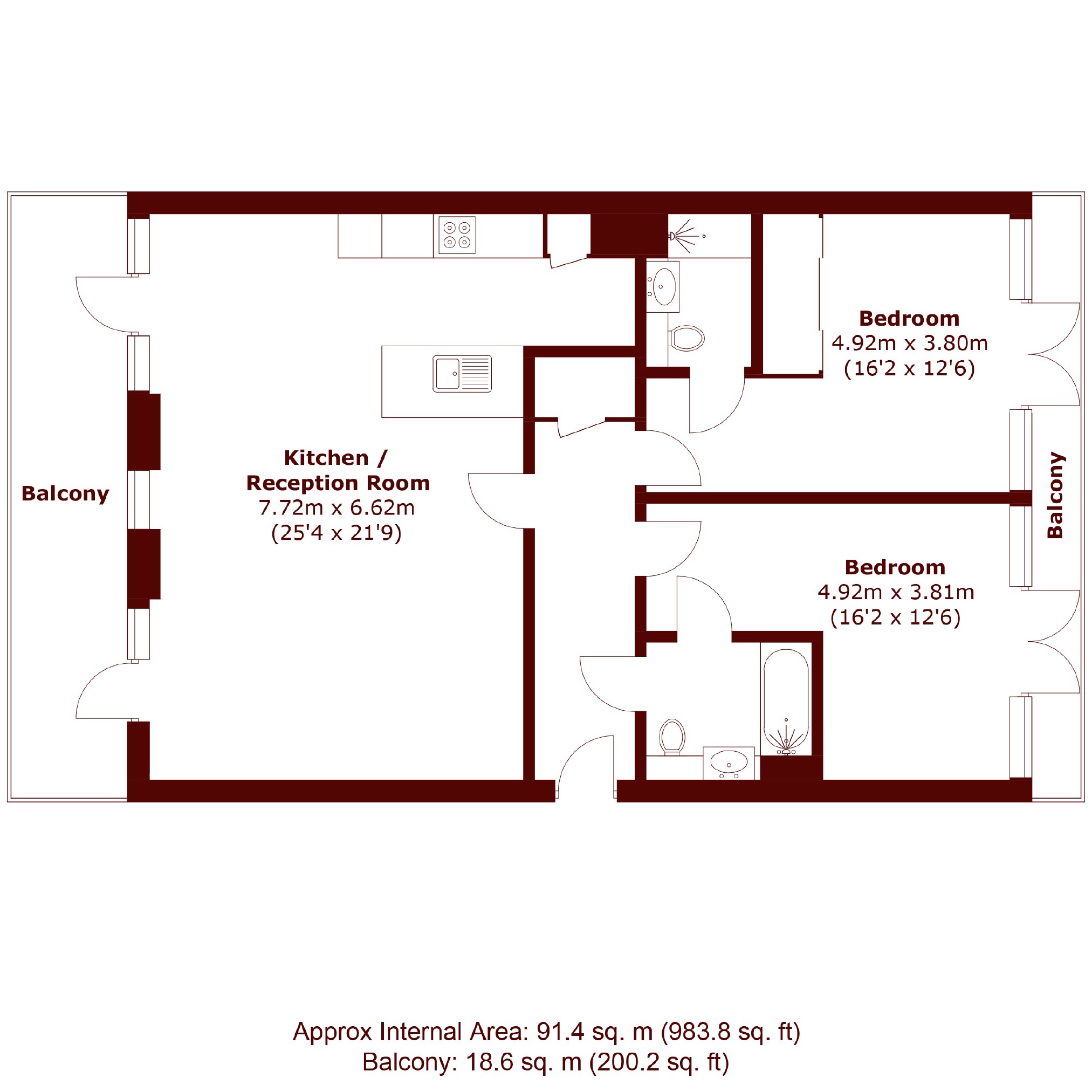 A wonderfully bright apartment with two double bedrooms and two bathrooms plus a fabulous south-facing reception space with wooden flooring throughout.