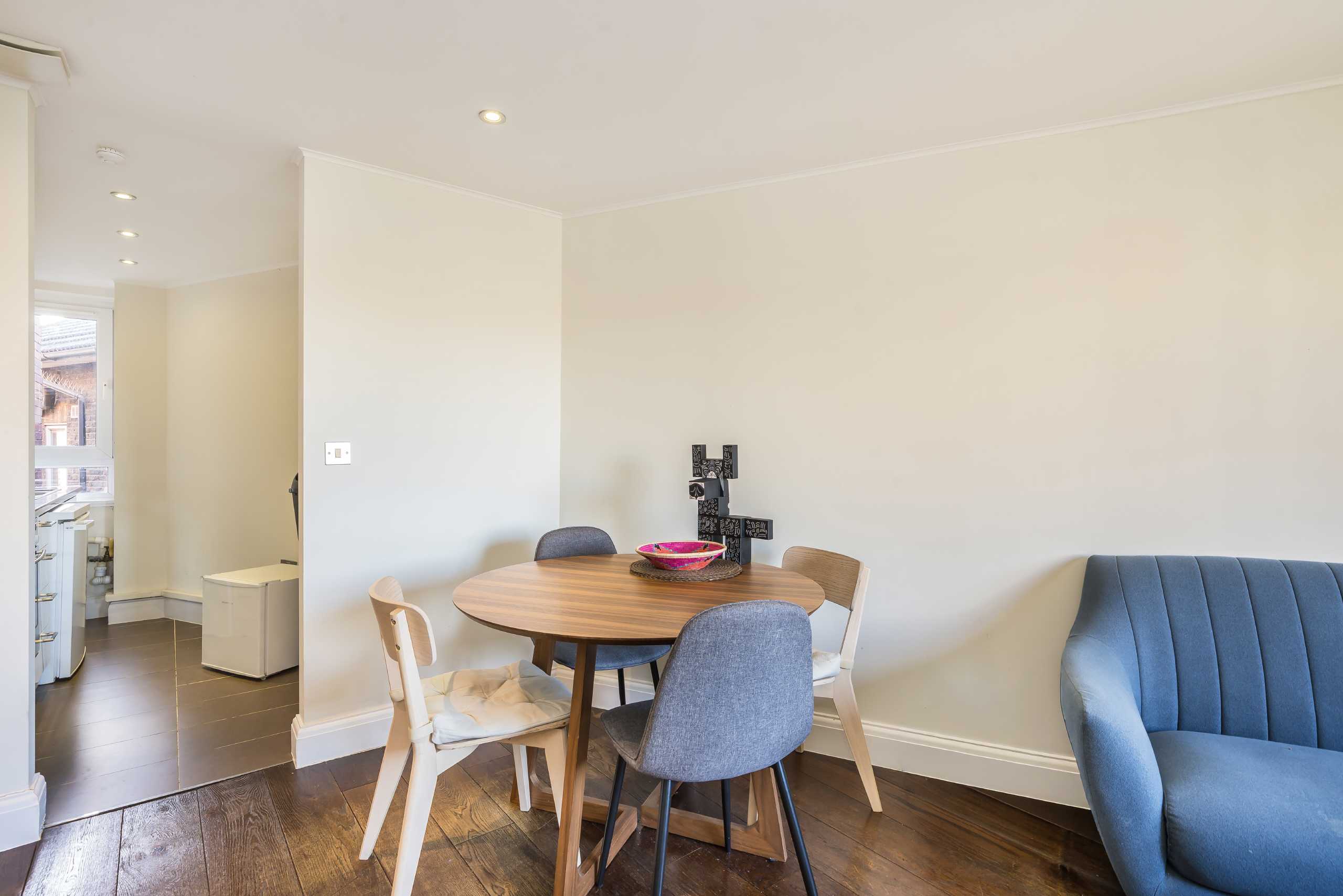 This top floor one bedroom flat has been beautifully refurbished with underfloor heating, oak floors, and new appliances. It features a spacious double bedroom with built-in storage, a modern bathroom, and a bright reception room leading to a separate kitchen.