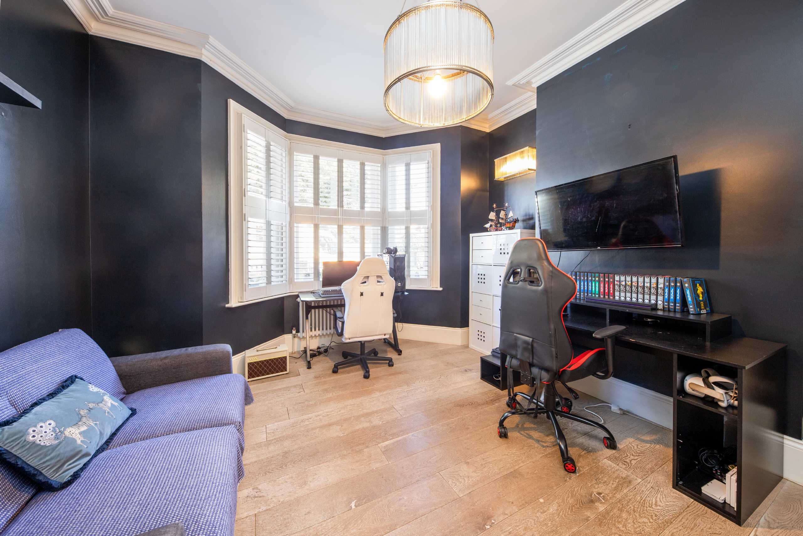 A five bedroom family home ideally situated on a tree lined residential road in the heart of Grove Park. The property has been finished to a very high standard and boasts a large through reception room with feature fireplace and wood floors, eat in kitchen with patio doors opening to a private and secluded garden, downstairs WC, master bedroom with en-suite bathroom, four further bedrooms and two bathrooms.