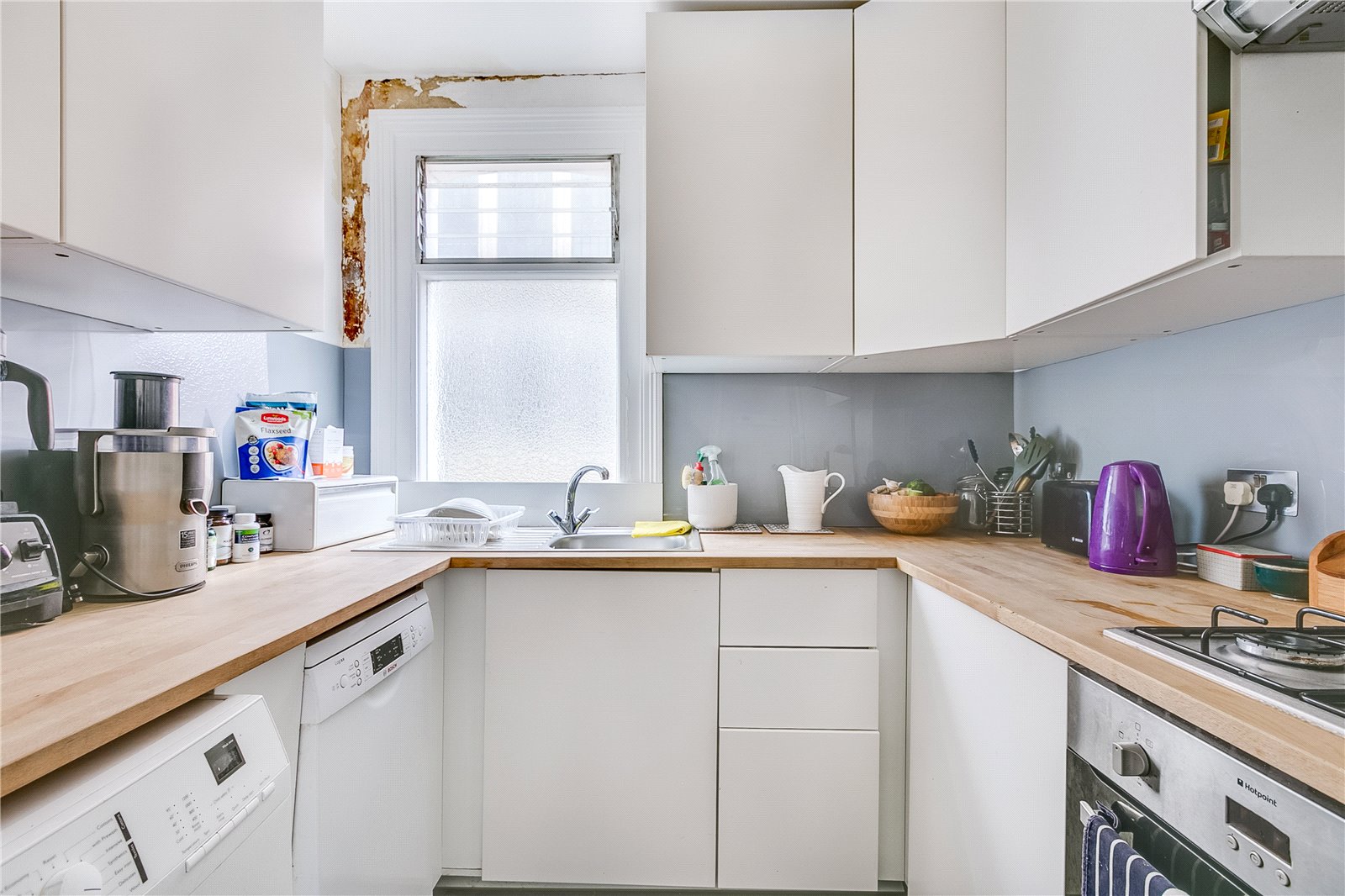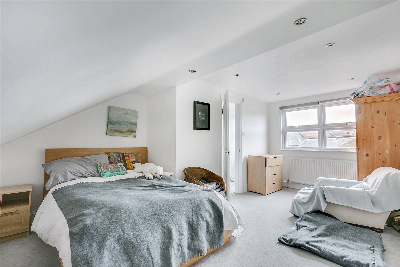 Having undergone extensive refurbishment, this bright three-bedroom flat boasts attractive modern interiors and ample amounts of living space. Arranged over the first and second floors of a period conversion, it comprises a large reception with a bay window and room for dining, separate fully-fitted kitchen with brand new appliances, three spacious double bedrooms (one en suite) with fitted wardrobes, and a further modern family bathroom.