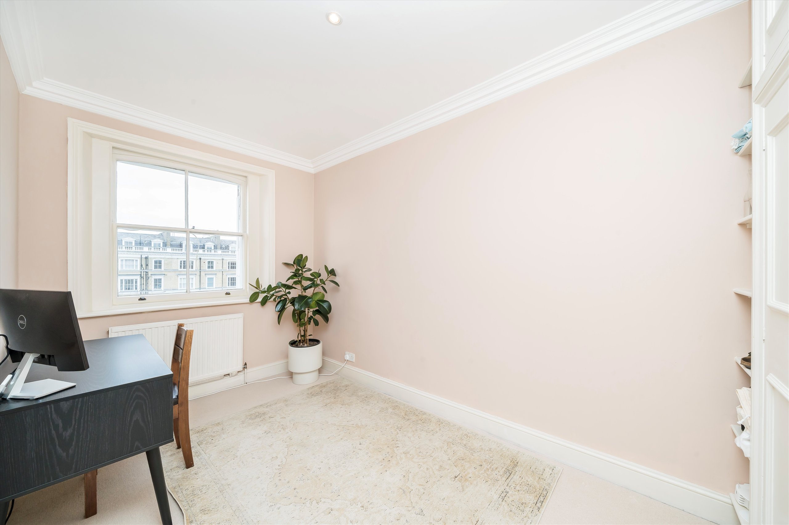 The flat enjoys delightful garden views and an abundance of natural light, creating a calm and welcoming living space in one of South Kensington's most desirable residential streets.