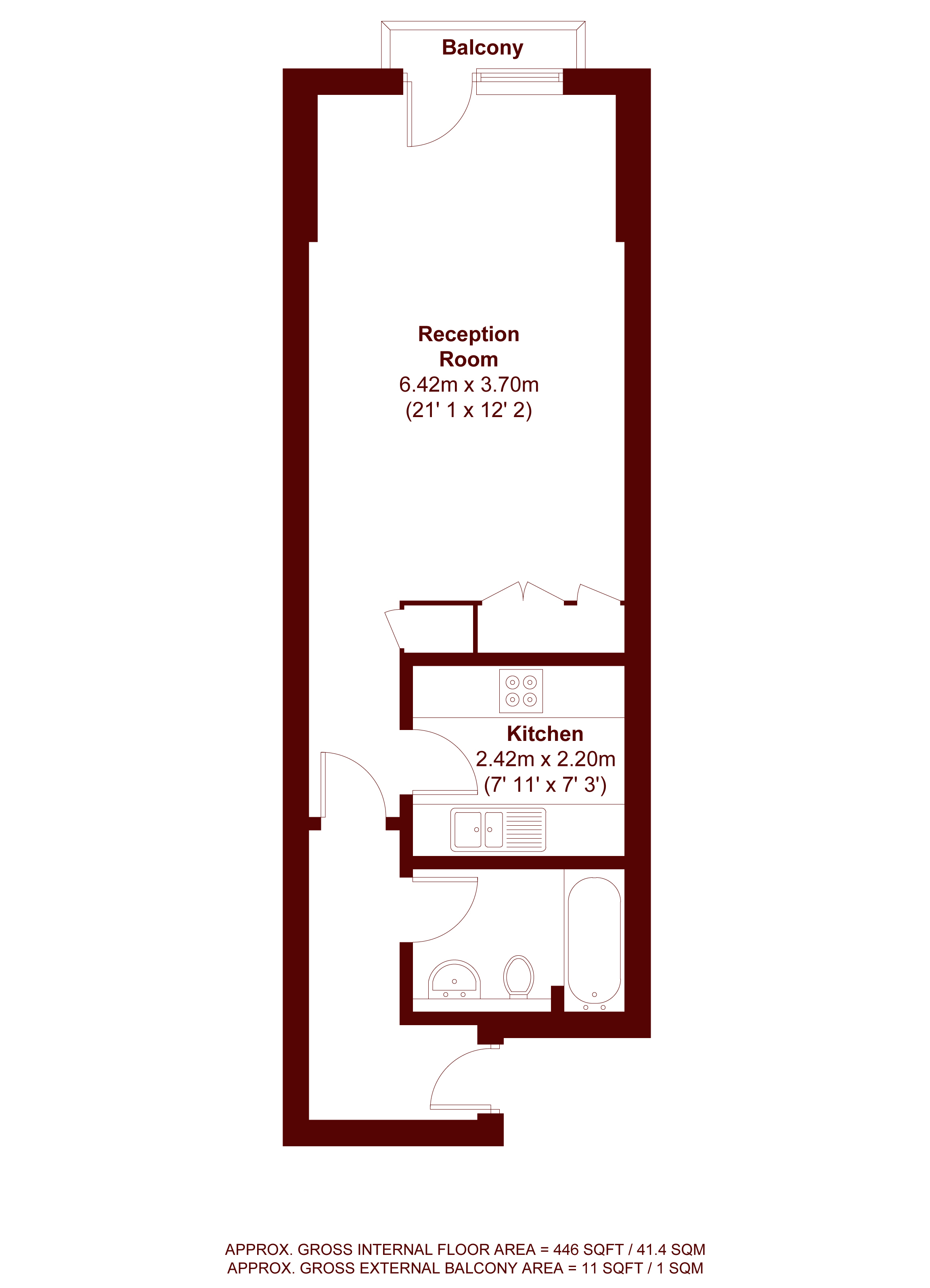 A larger than average studio apartment with separate modernised kitchen and wonderful views over South Kensington.