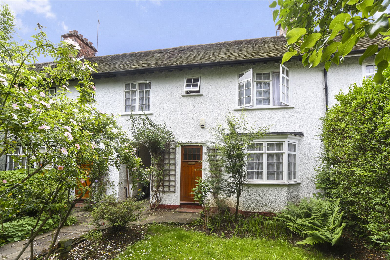 A charming three-bedroom cottage with period features throughout and a short walk from the open green spaces of Hampstead Heath. Set on a beautifully quiet and residential street, the property comprises of a bright and spacious reception room with parquet flooring and patio doors leading out on to a large private south facing garden, a separate dining room to the front of the property again with wood flooring and an ornamental fireplace, a fully fitted kitchen with exposed brickwork and a downstairs WC.
