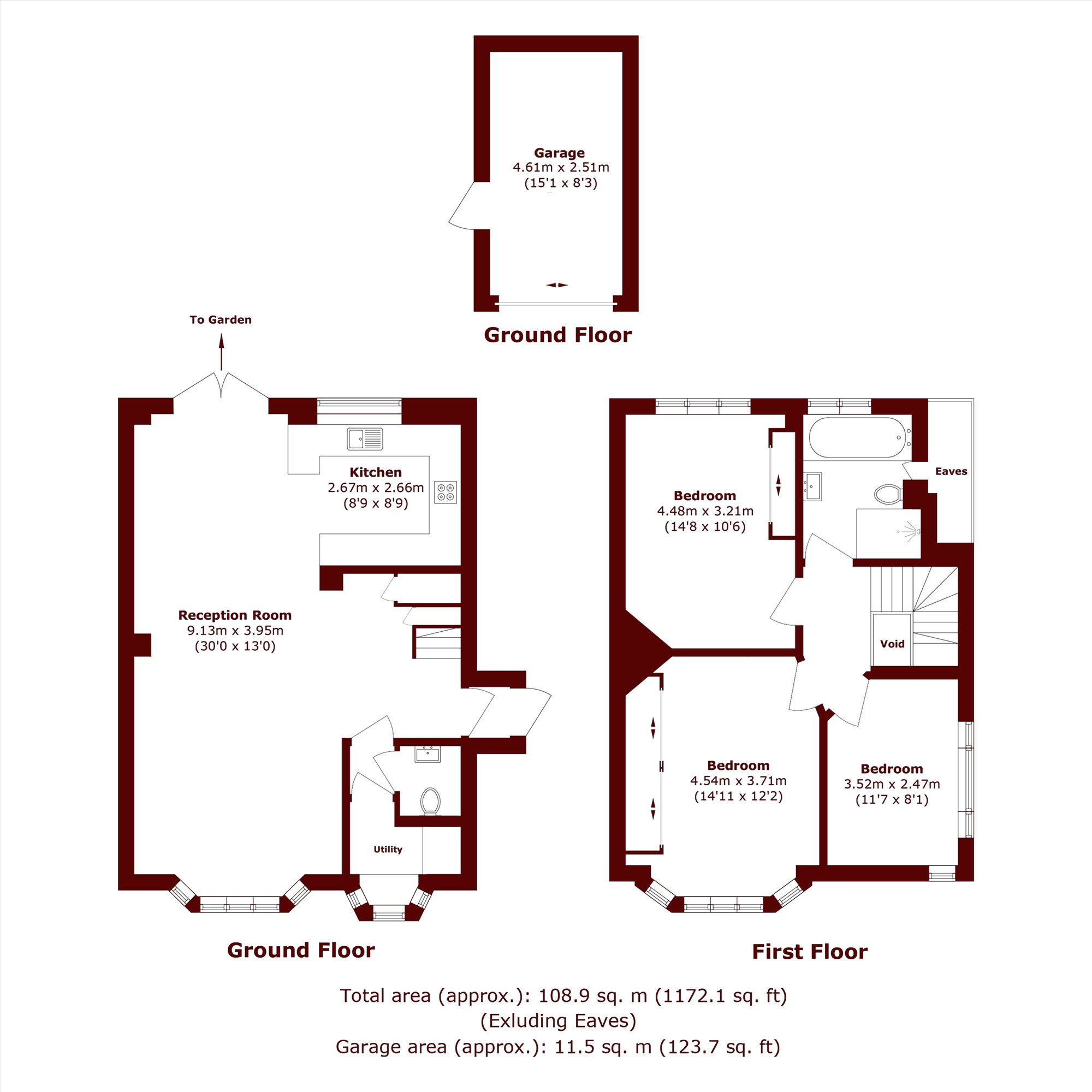 A three bedroom semi-detached house offering an entrance hall, living/dining room with wooden flooring; kitchen, principal bedroom, two further double bedrooms, family bathroom; lawned garden with patio; garage and off-street parking.