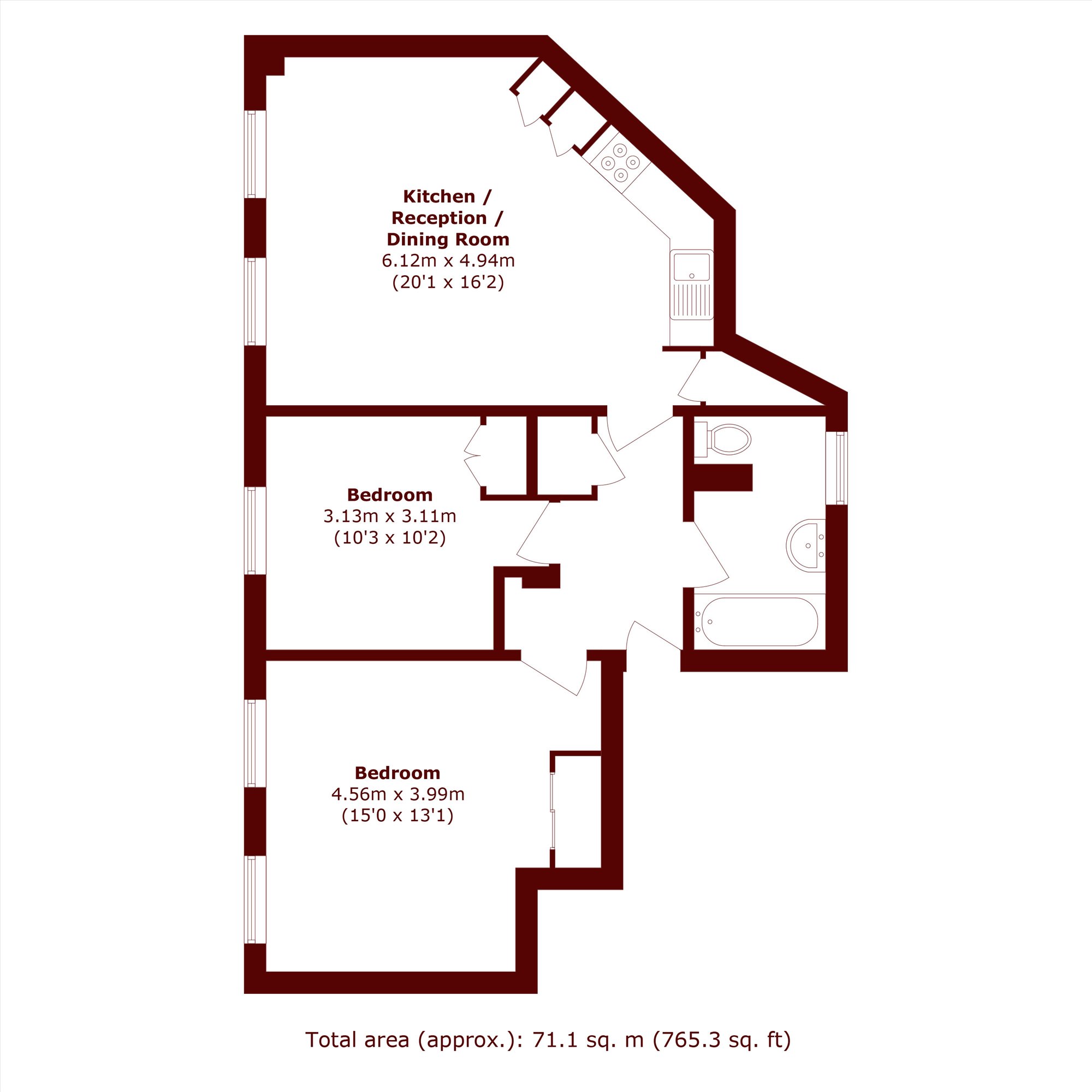 A two double bedroom, first floor apartment which comes complete with a modern open plan kitchen / living room and a bathroom.