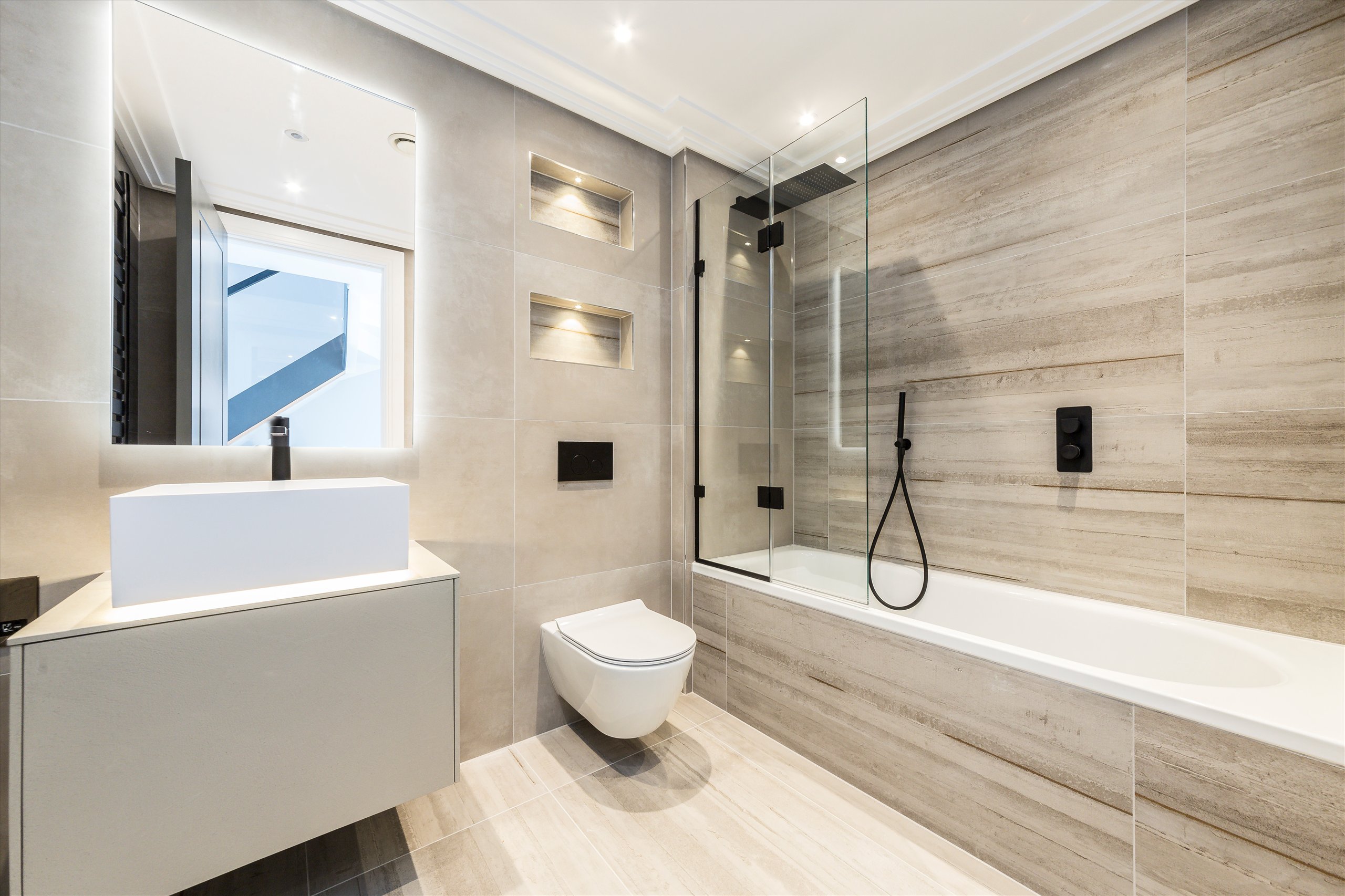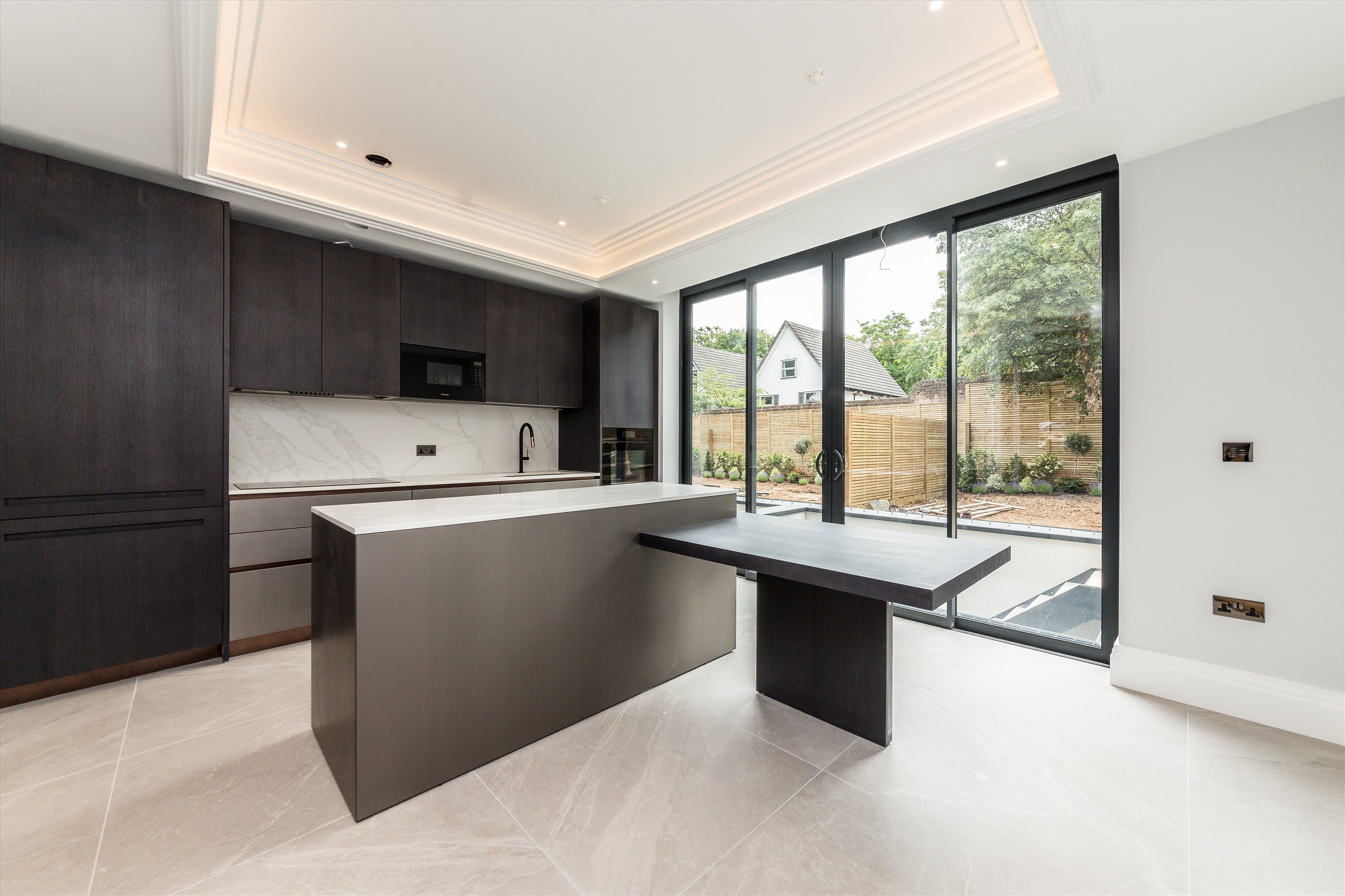 A three bedroom modern house opposite Wimbledon Common. The property comprises an open plan kitchen / dining room, living area, a further reception room and cinema room downstairs. Upstairs there are three double bedrooms arranged over two floors, one en-suite and one family bathroom. Private landscaped garden and parking.