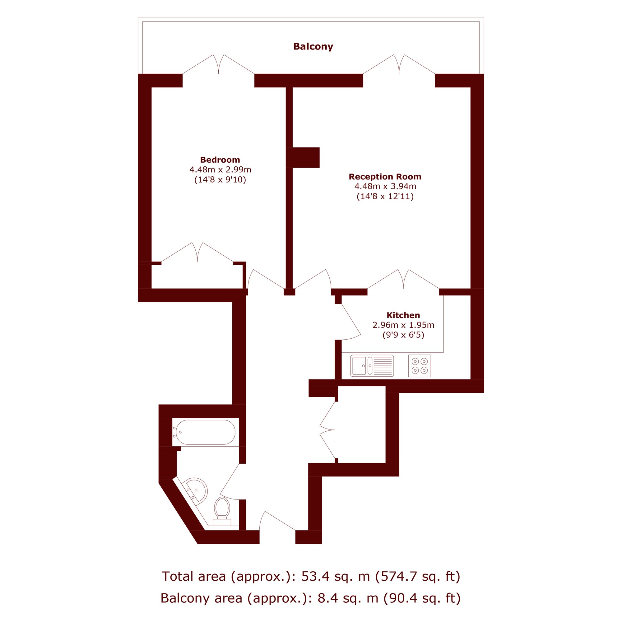 A one bedroom apartment in a gated development with a 24-hour porter offering a reception room with doors to a private balcony, fitted kitchen, bedroom with built-in wardrobes and family bathroom.