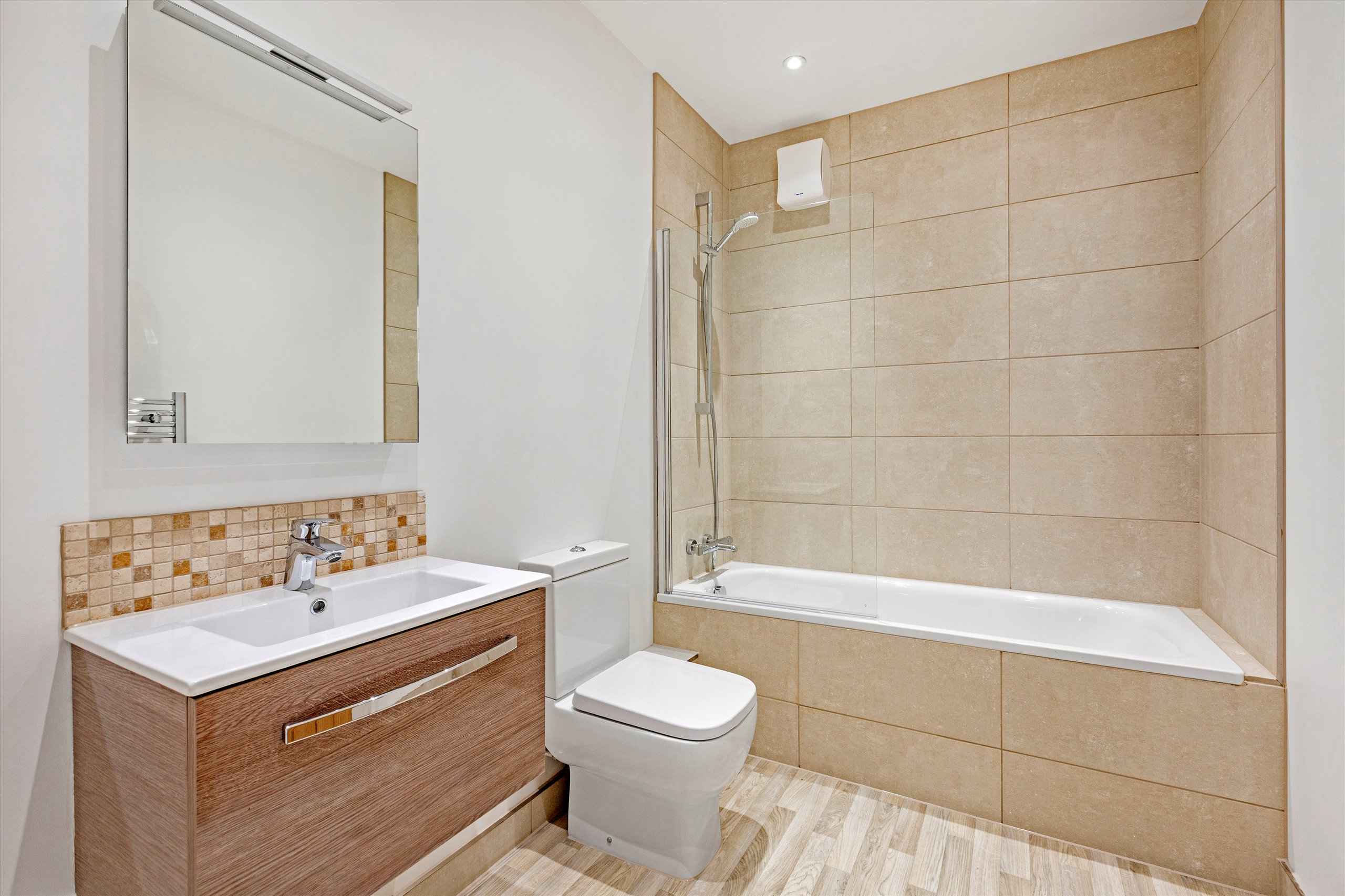 This stylish two double bedroom, two bathroom second floor apartment is finished to a high specification and boasts a spacious lounge that has an arch window and plantation shutters, open plan fully fitted kitchen and fitted wardrobes to both bedrooms.