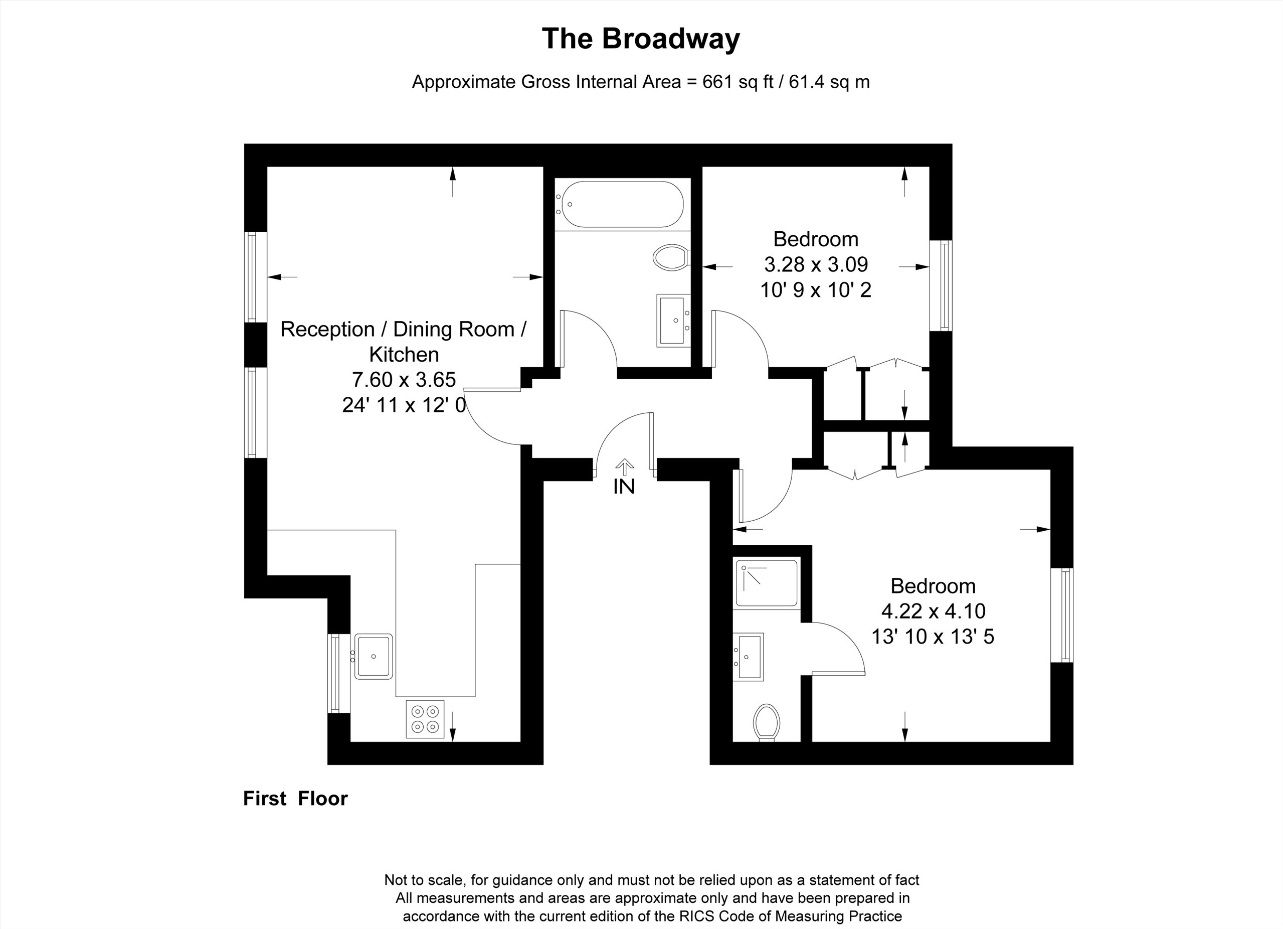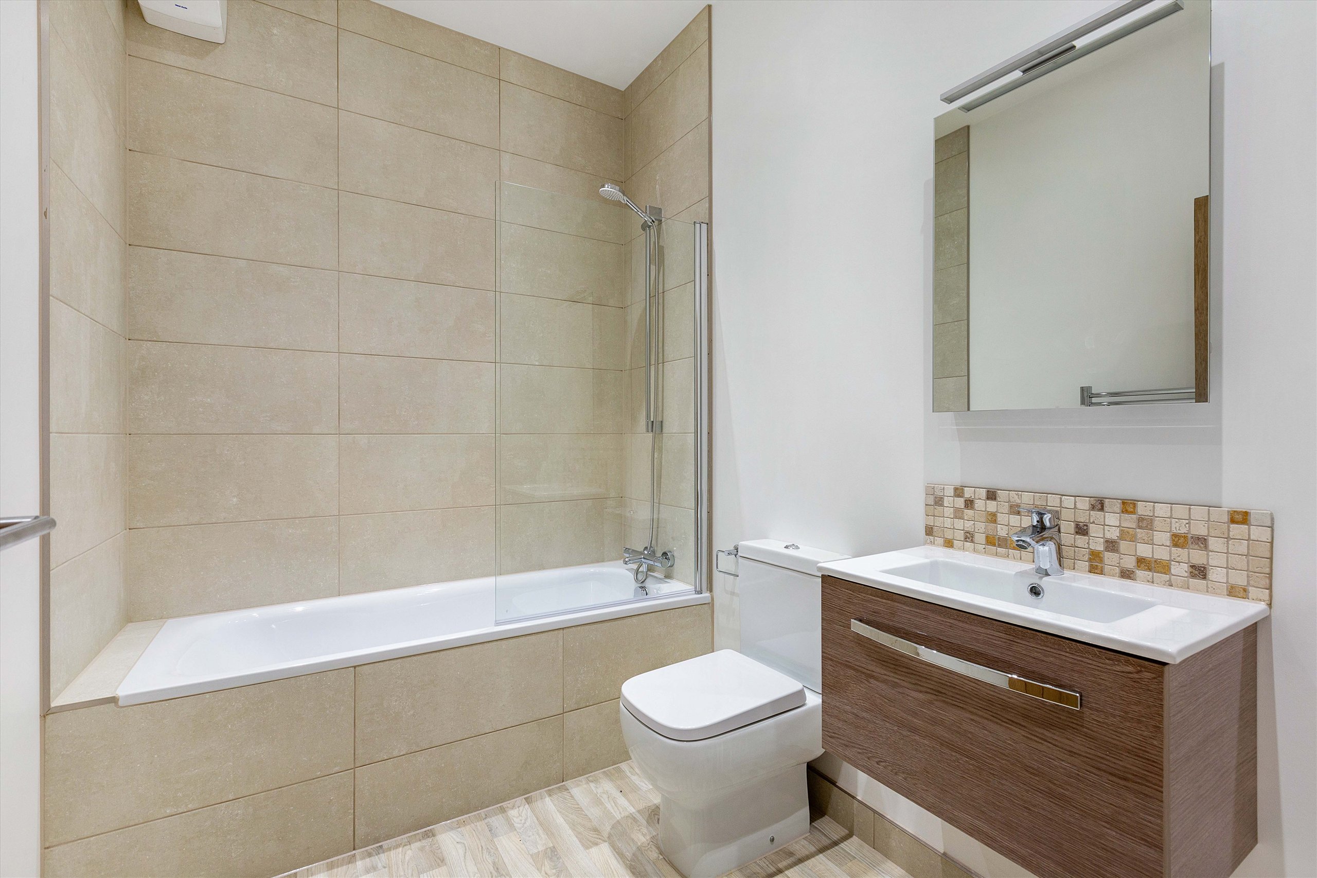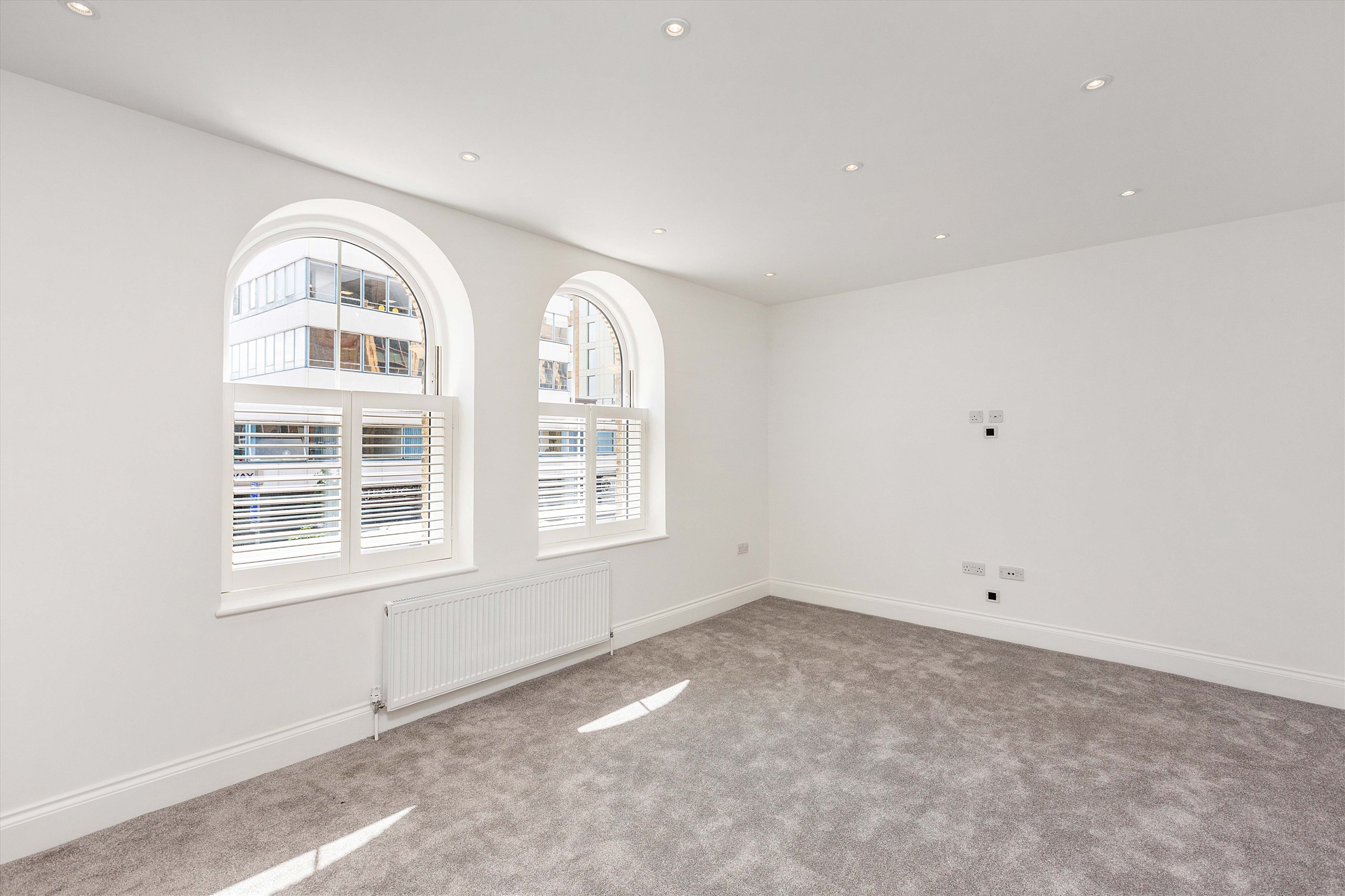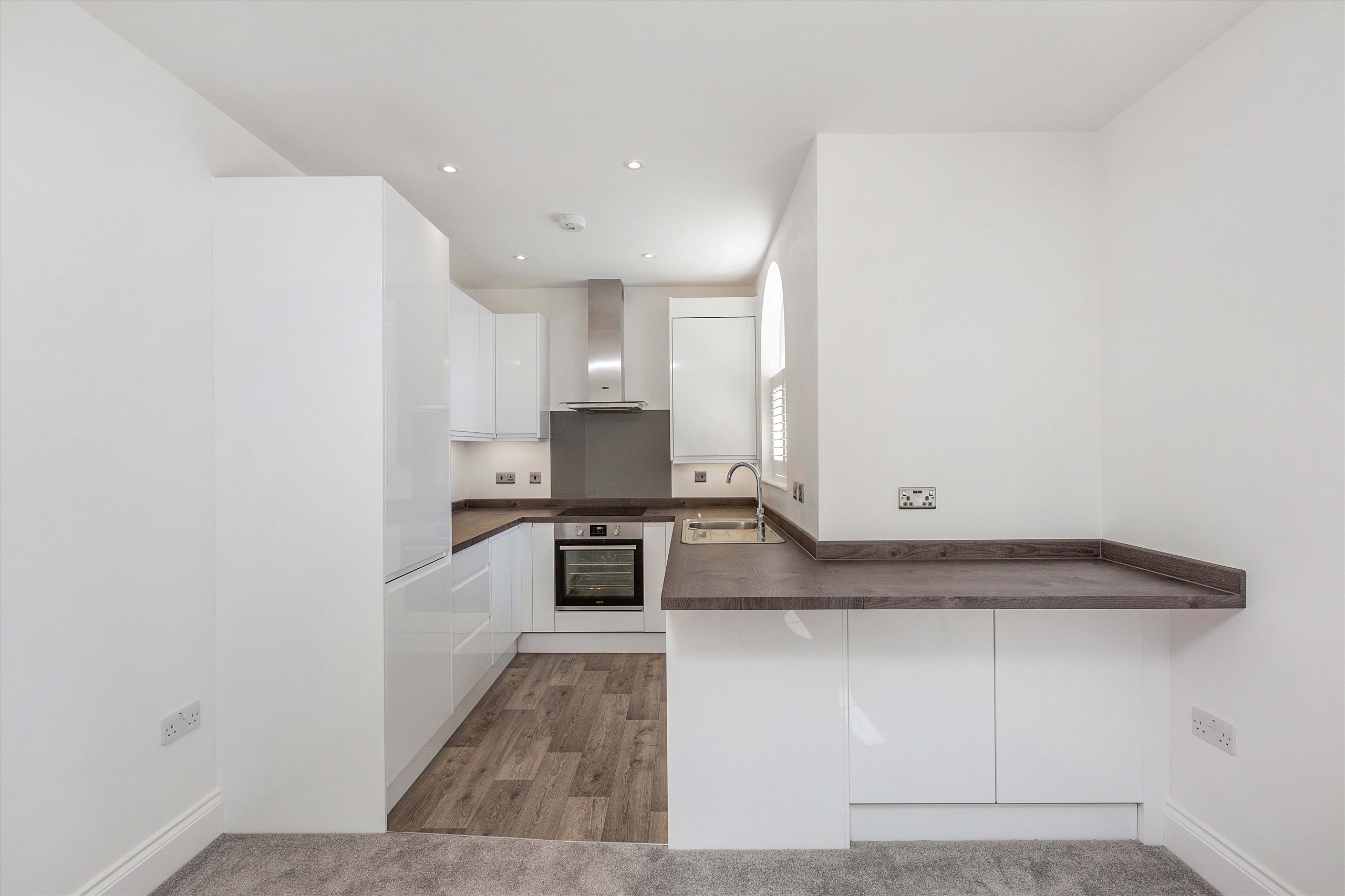 This stylish two double bedroom, two bathroom second floor apartment is finished to a high specification and boasts a spacious lounge that has an arch window and plantation shutters, open plan fully fitted kitchen and fitted wardrobes to both bedrooms.