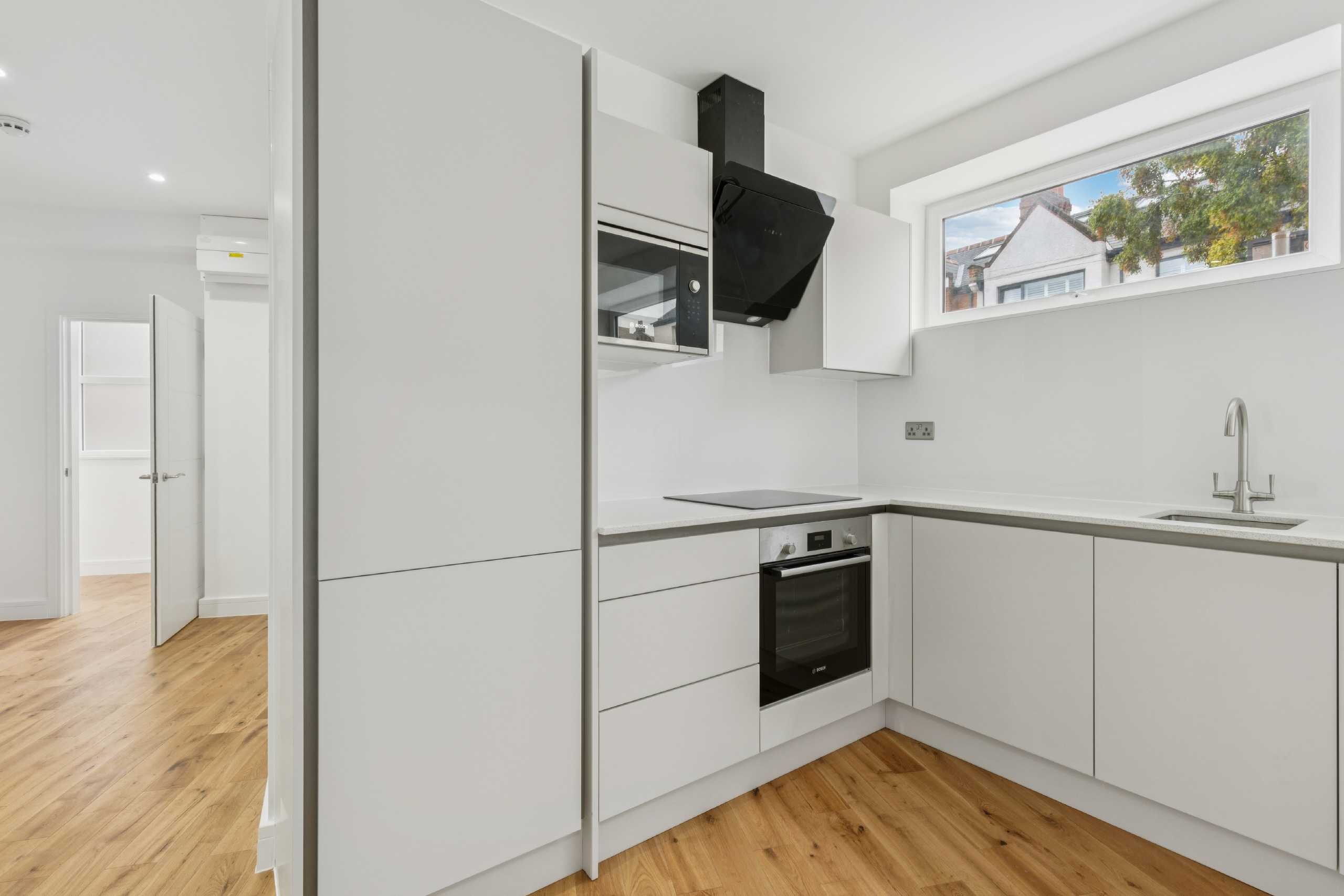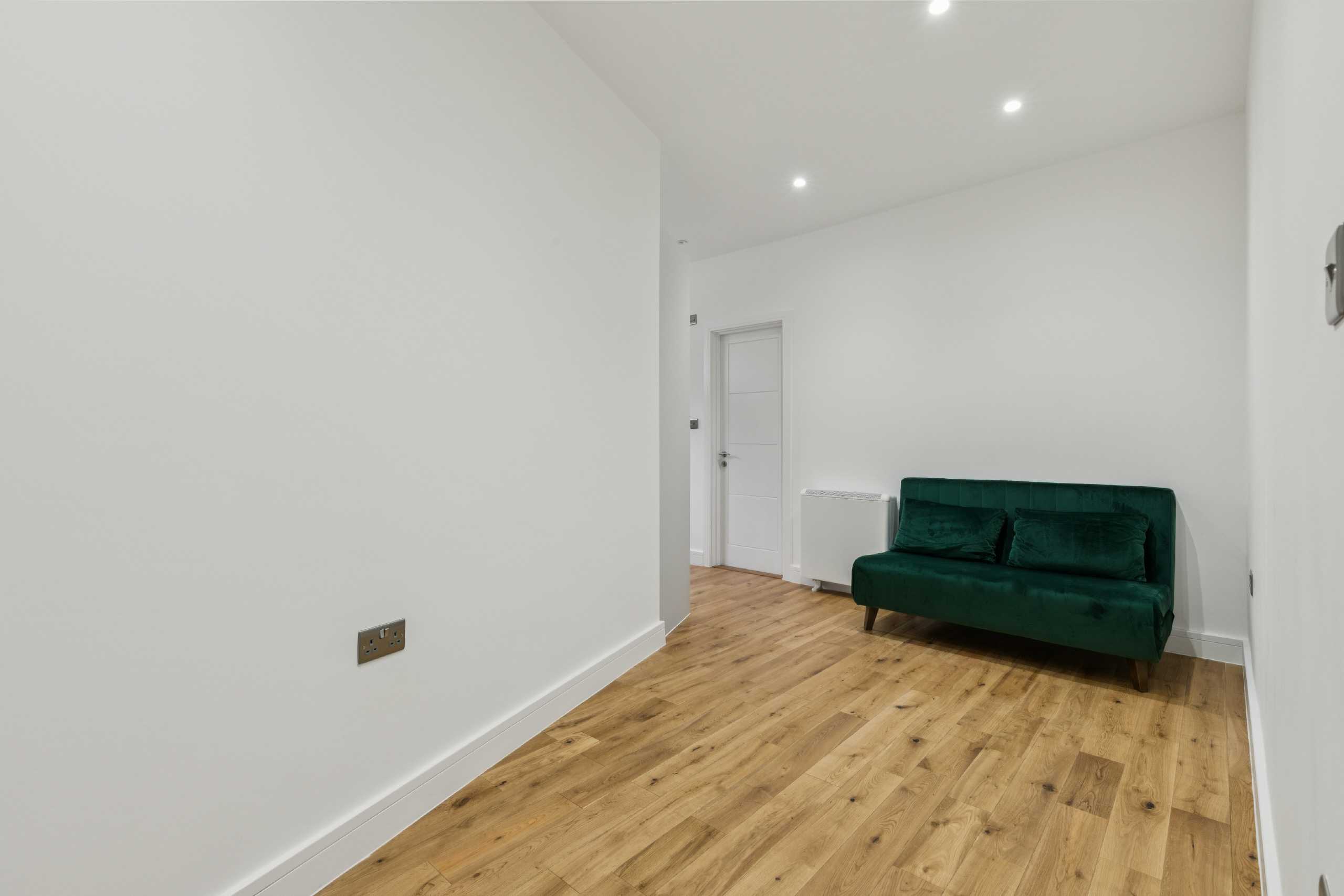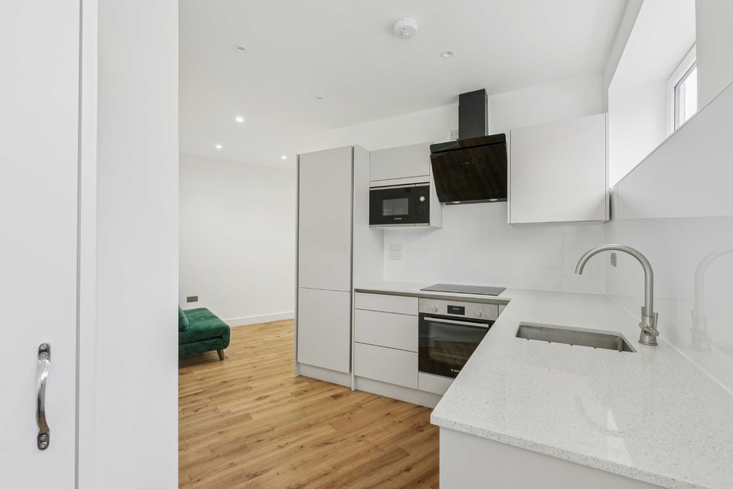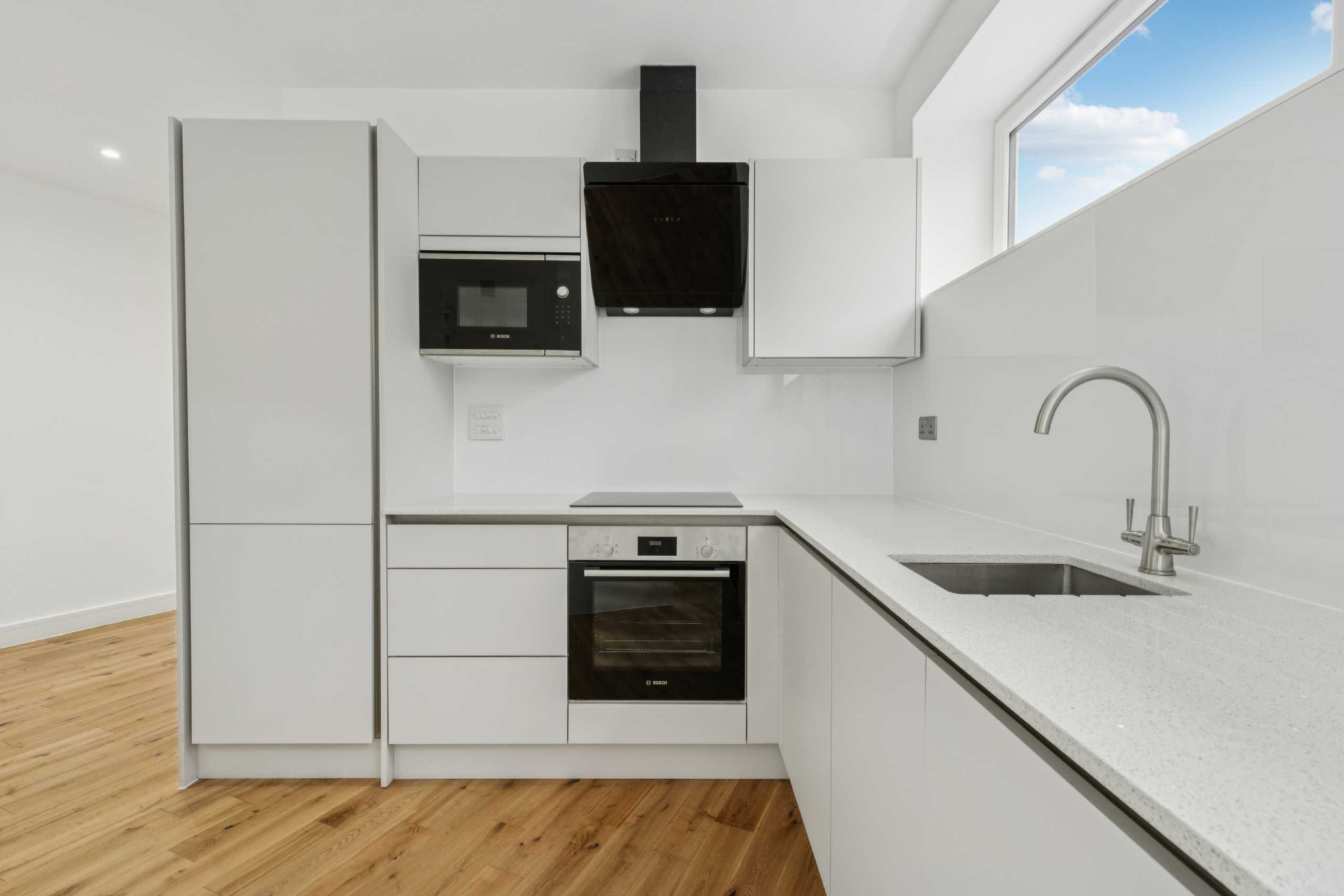 A modern one-bedroom flat within a new build development.