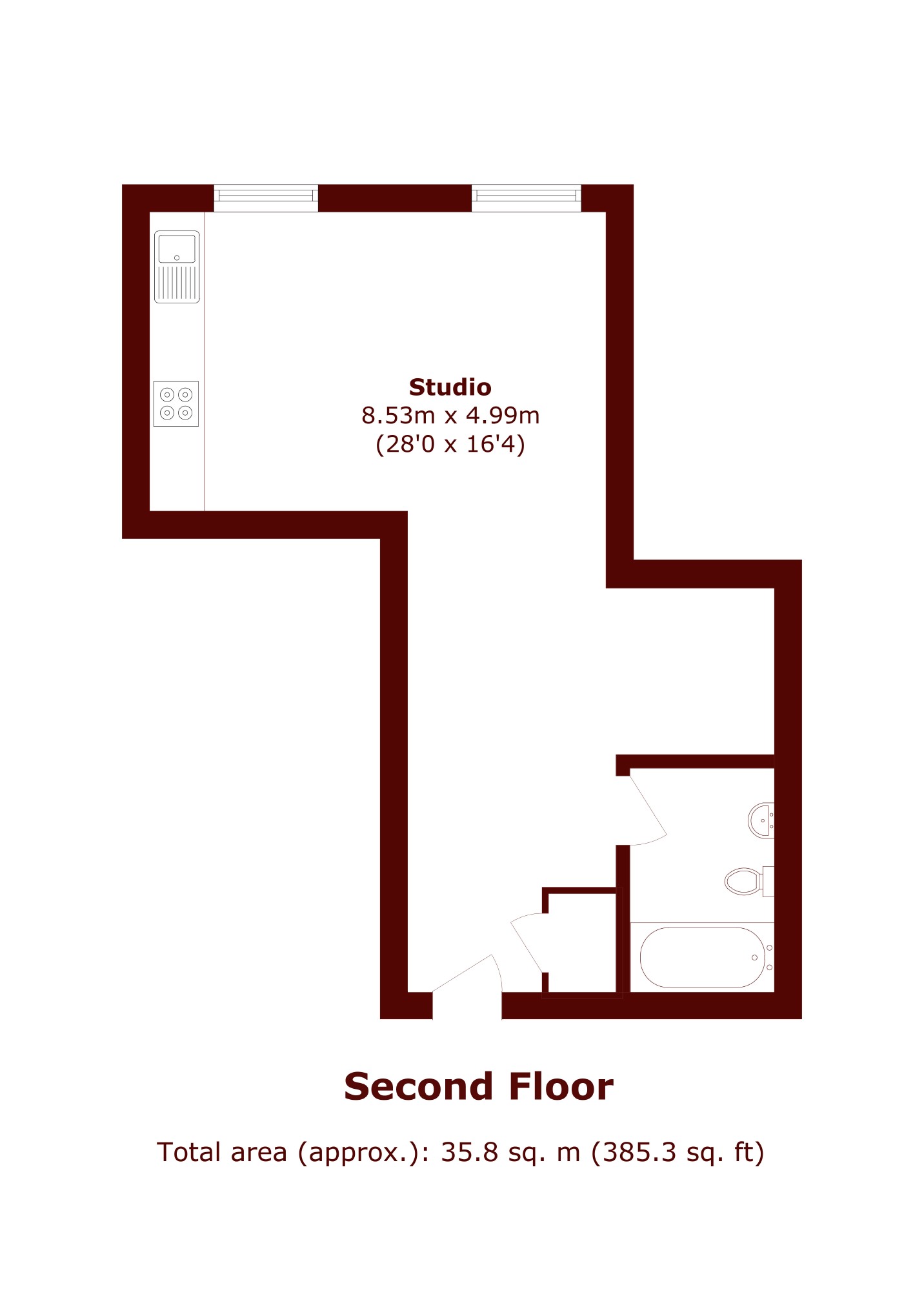 A spacious studio on the first floor of a new build development. Situated on the second floor of a stunning new build development, this larger than average studio comes to the market in excellent condition and consists of an open plan reception/kitchen (with integrated modern appliances) and family bathroom. The property further benefits from wooden floors throughout and located in the building is a storage area for a small number of bikes.