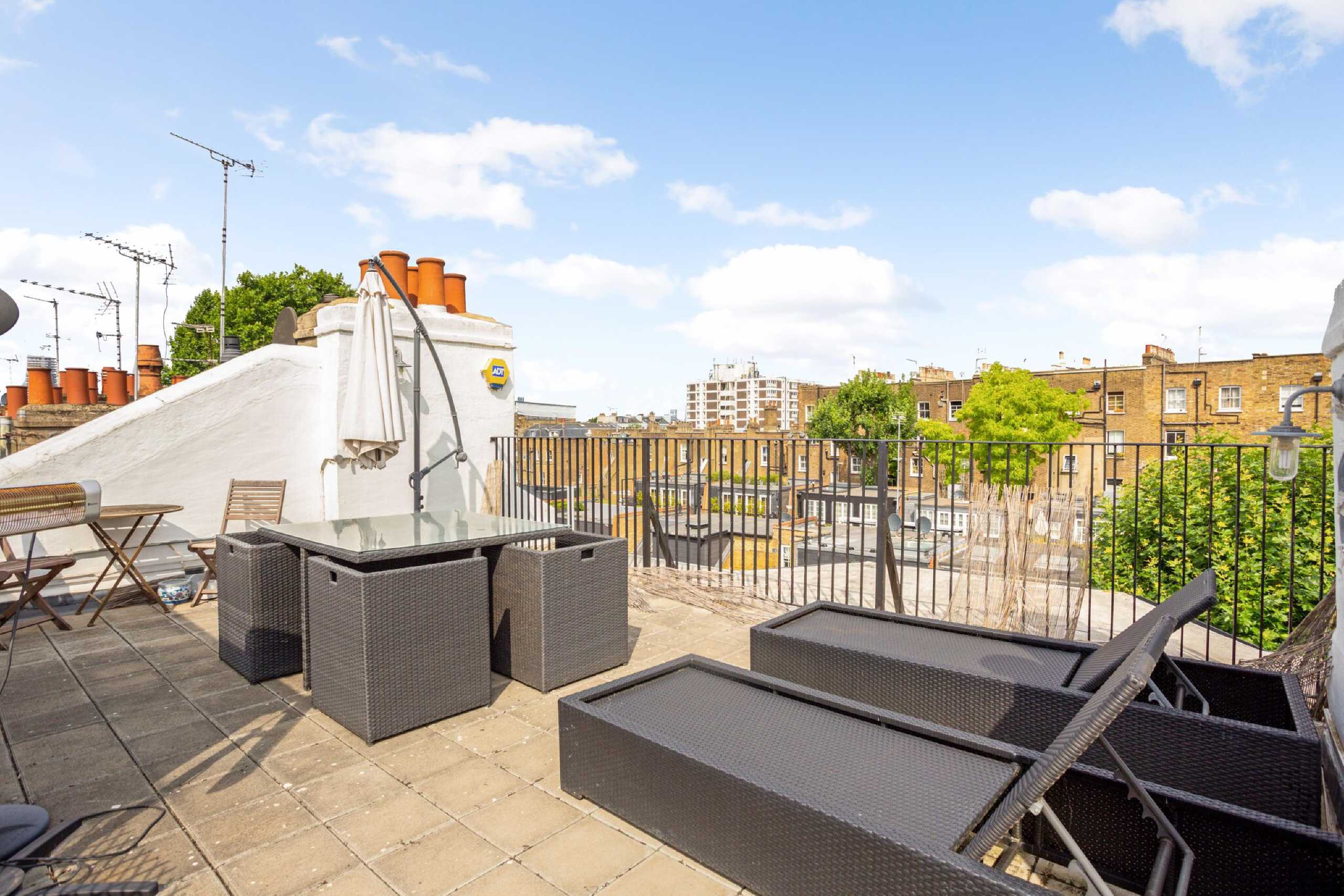 Stylish top floor apartment with a large roof terrace and fantastic views over Notting Hill.