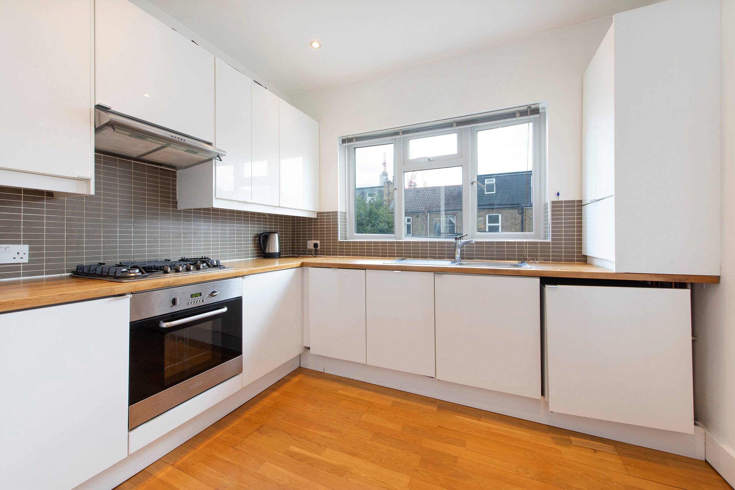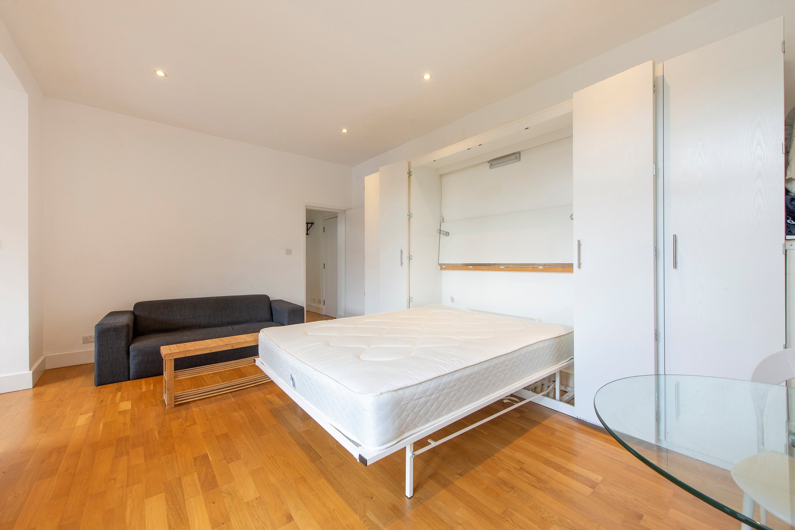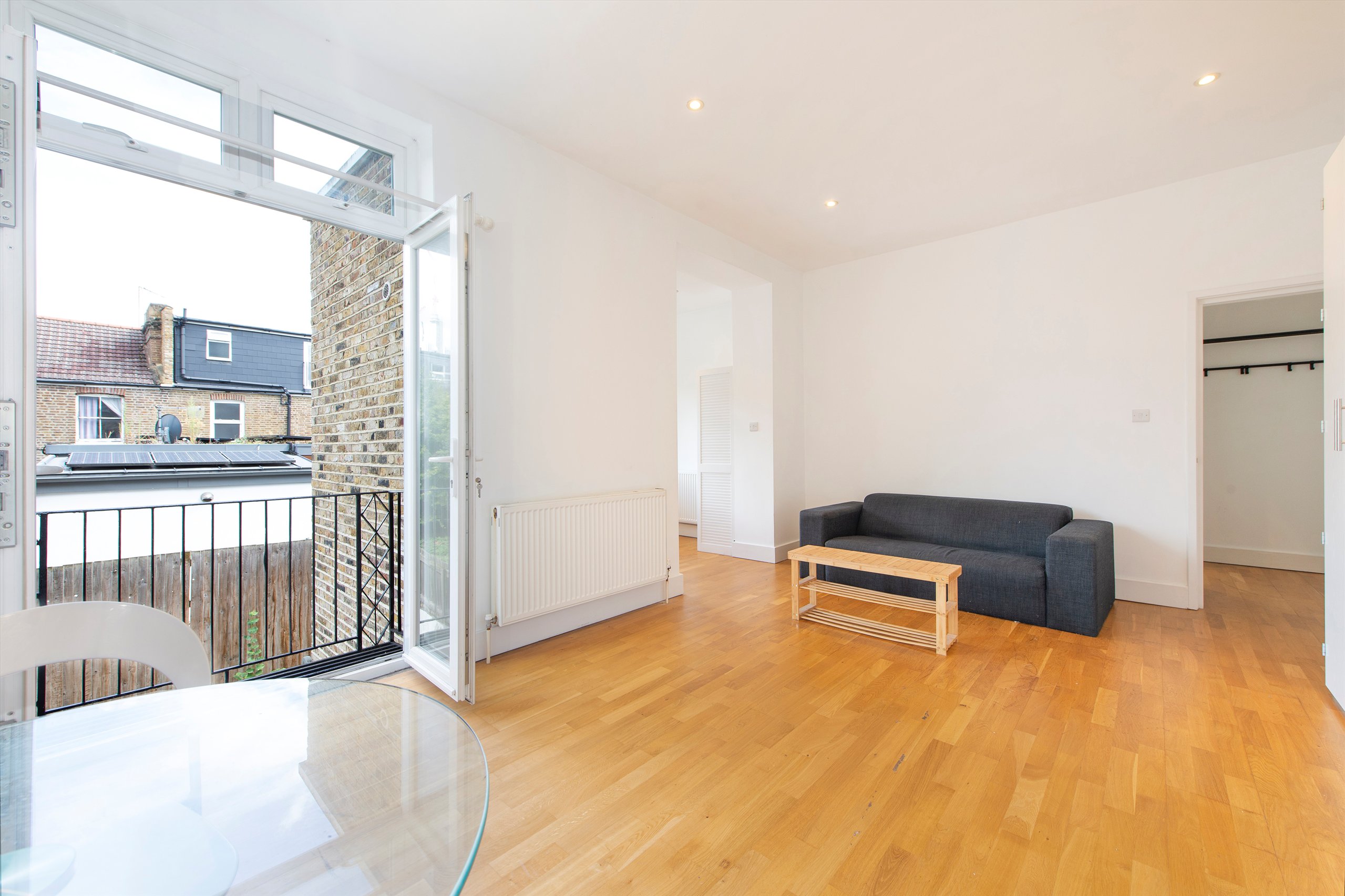 Larger than average studio flat with private balcony. The flat consists of a modern separate bathroom, spacious fully fitted kitchen, wooden flooring throughout, and a wealth of natural light.