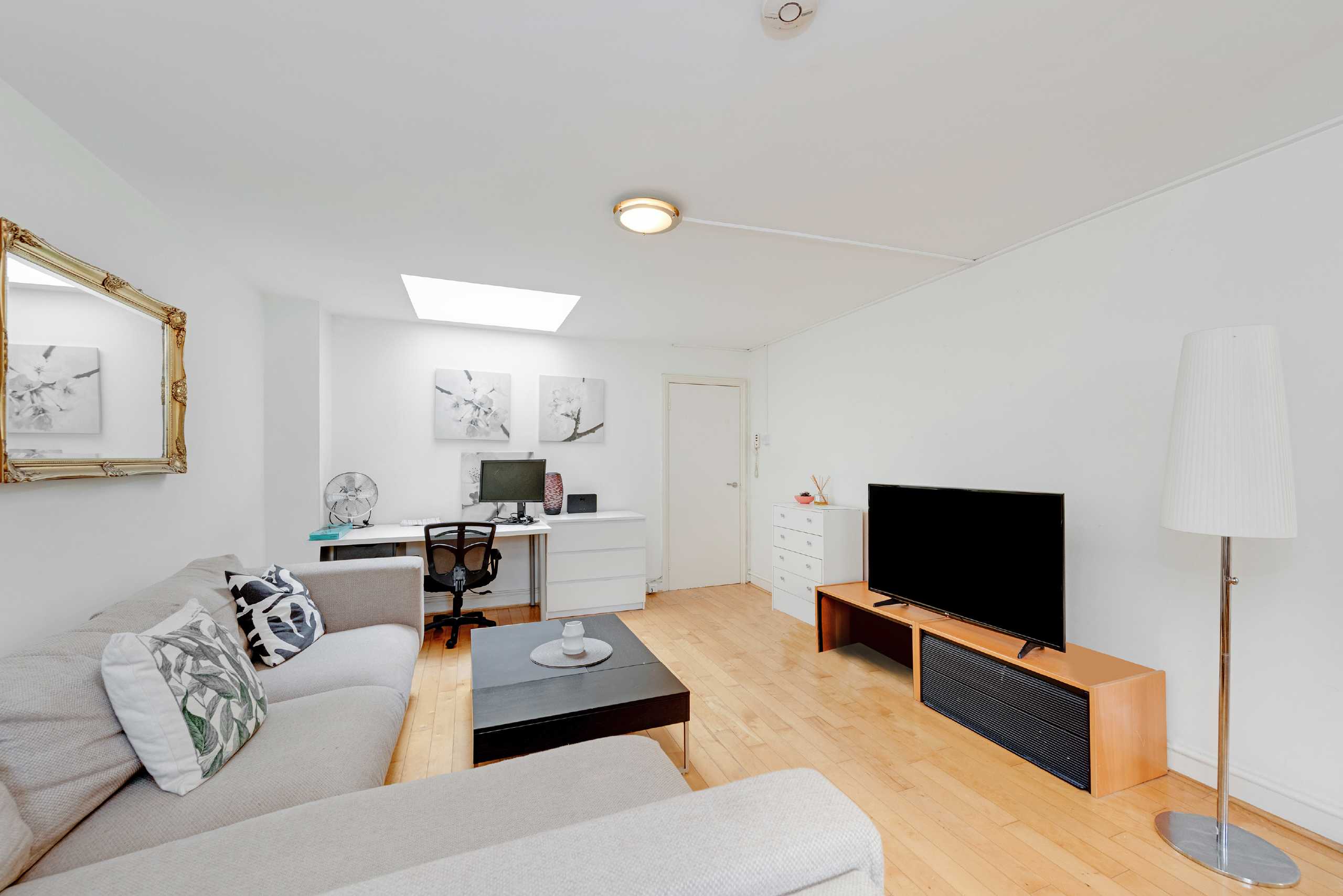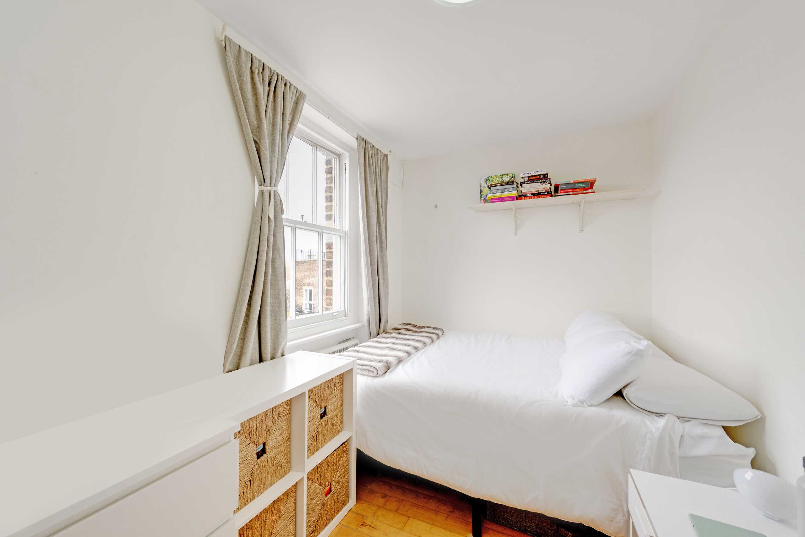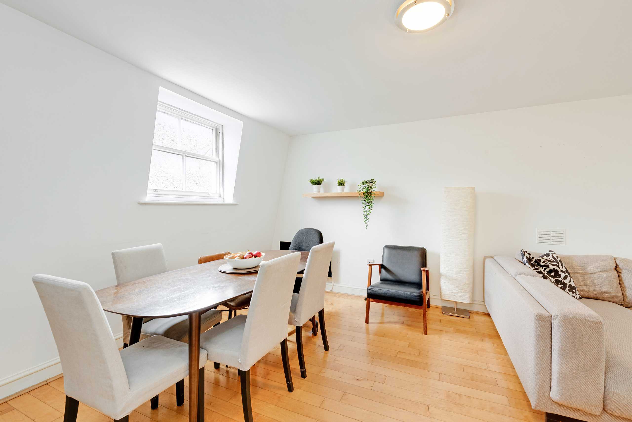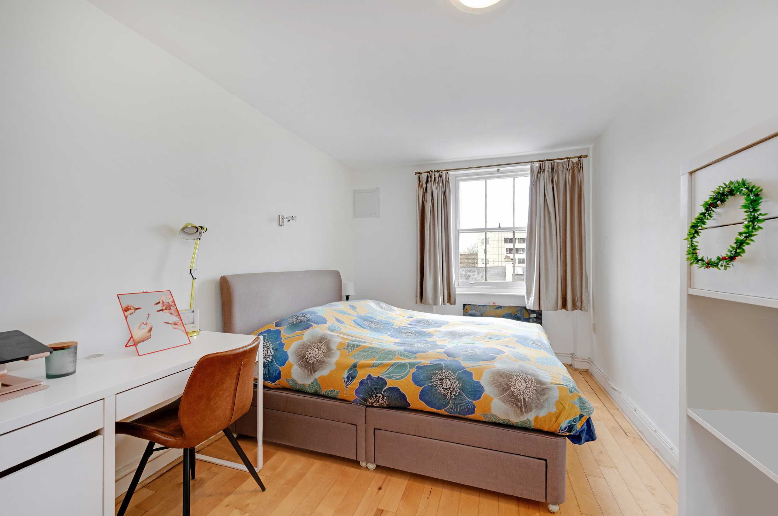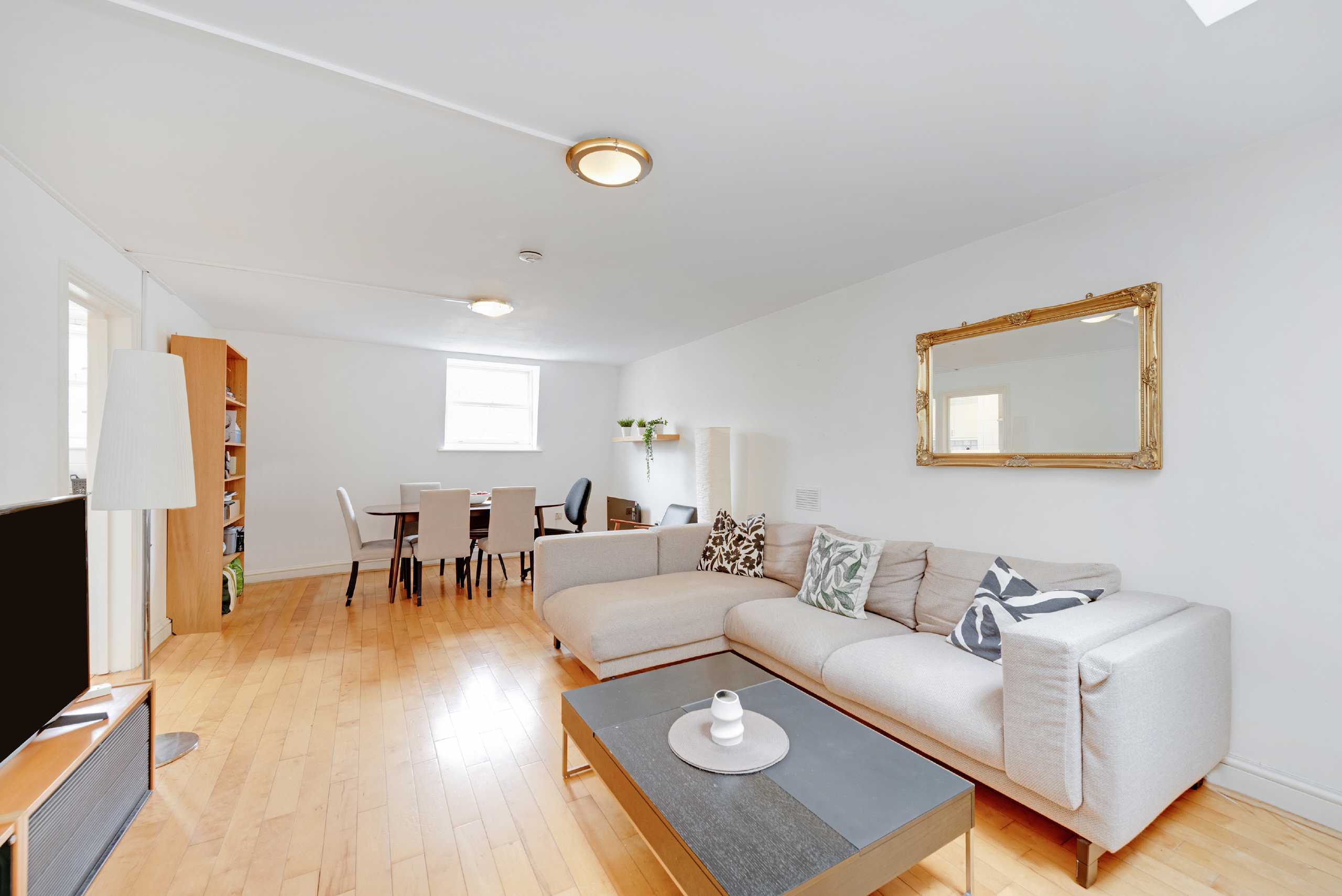 Spacious and bright two double bedroom apartment with wooden floors, located on the fourth floor with lift access. The apartment comprises of two double bedrooms, a large living area, separate kitchen & a full bathroom. Tenants will not have access to the loft space.