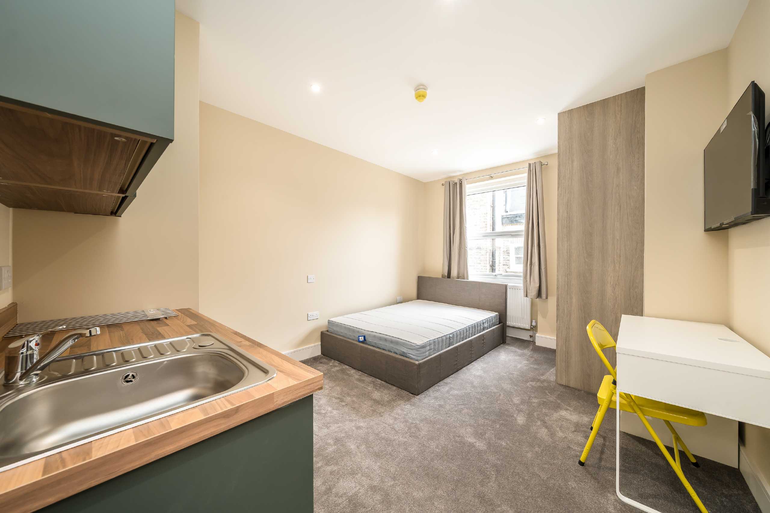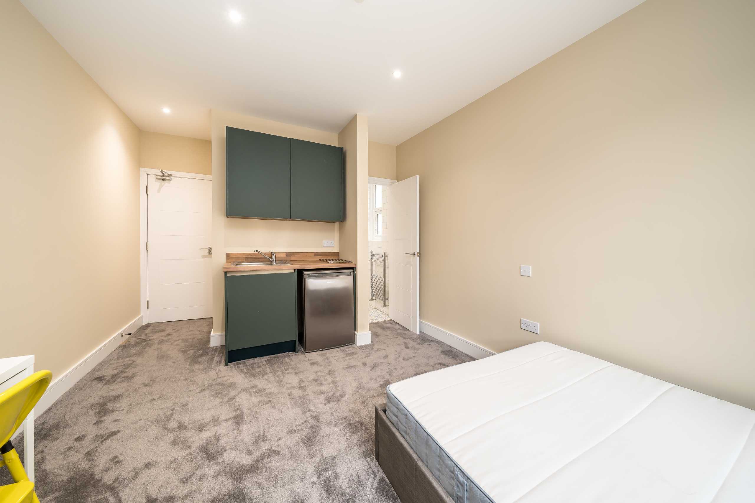 An exceptional, fully renovated period property offering a collection of high-specification studio suites, designed to provide stylish, self-contained accommodation in a prime Fulham location. Each suite features a private en-suite shower room and a sleek kitchenette, with access to a spacious communal kitchen equipped with two ovens, two American-style fridge freezers, two washing machines and two dryers.