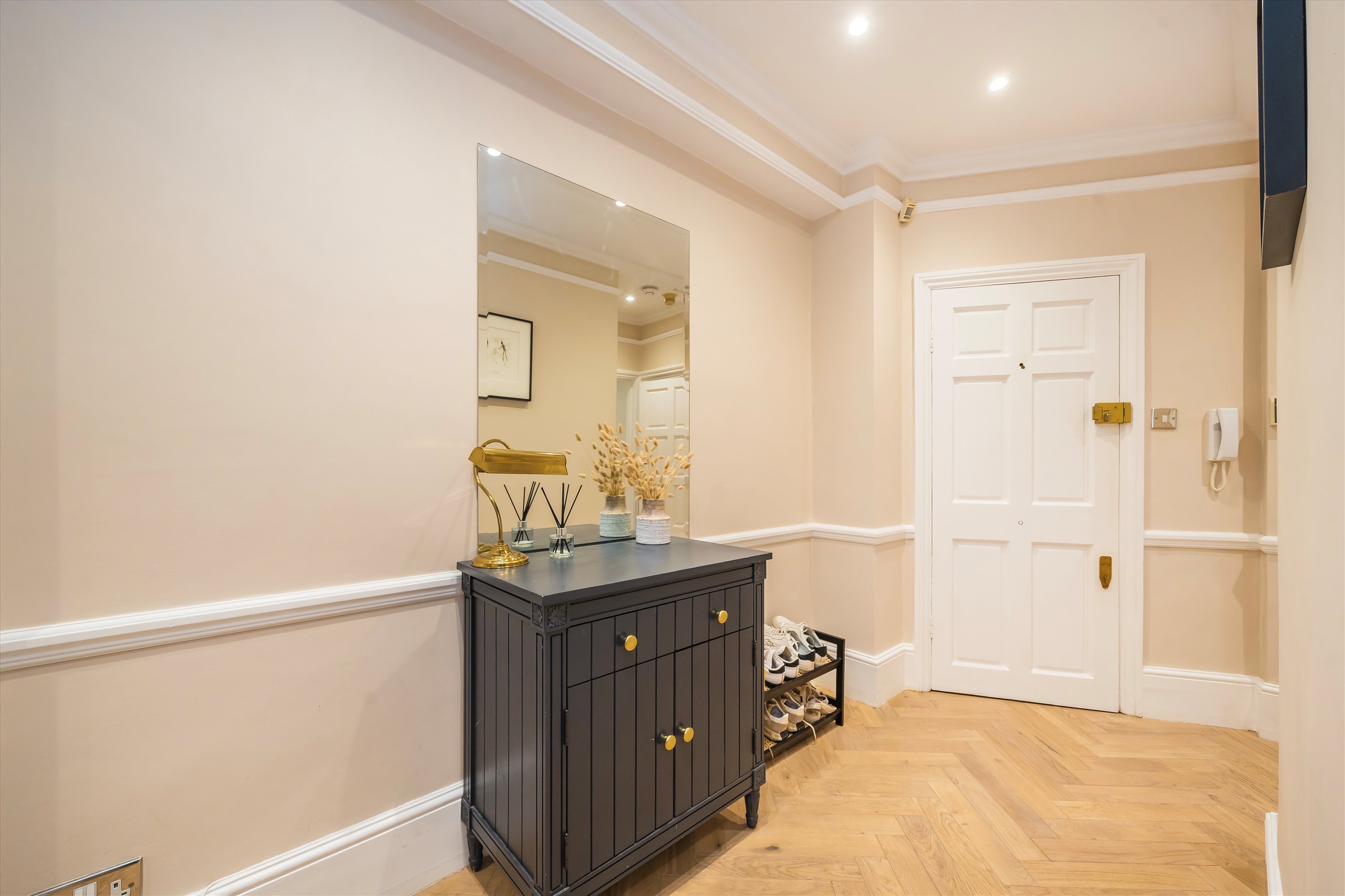 A stunning two-bedroom, two-bathroom conversion apartment offering a perfect blend of style and character. The property features a generous entrance hall, an expansive reception room, a contemporary kitchen, and charming period details including a feature fireplace and elegant parquet flooring.