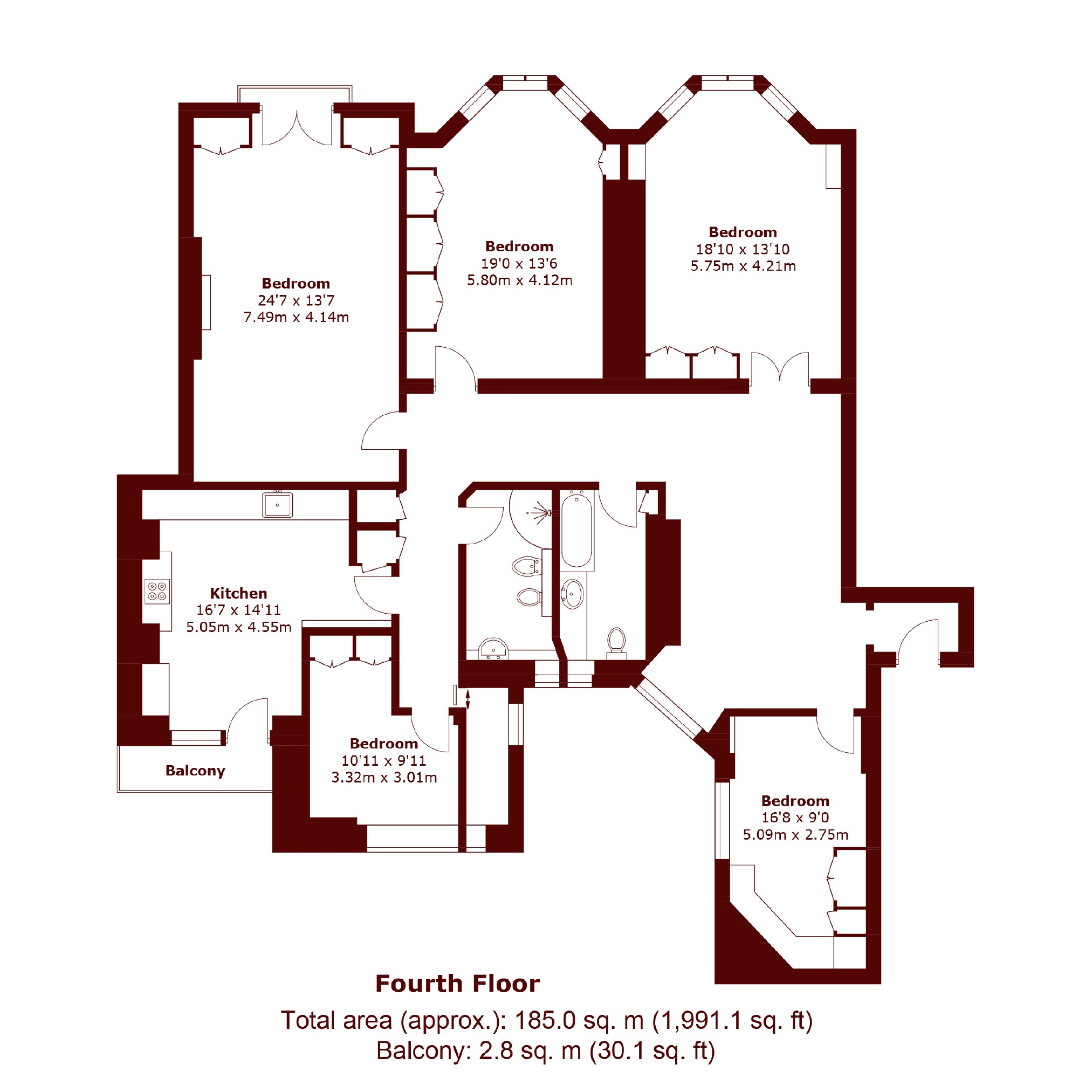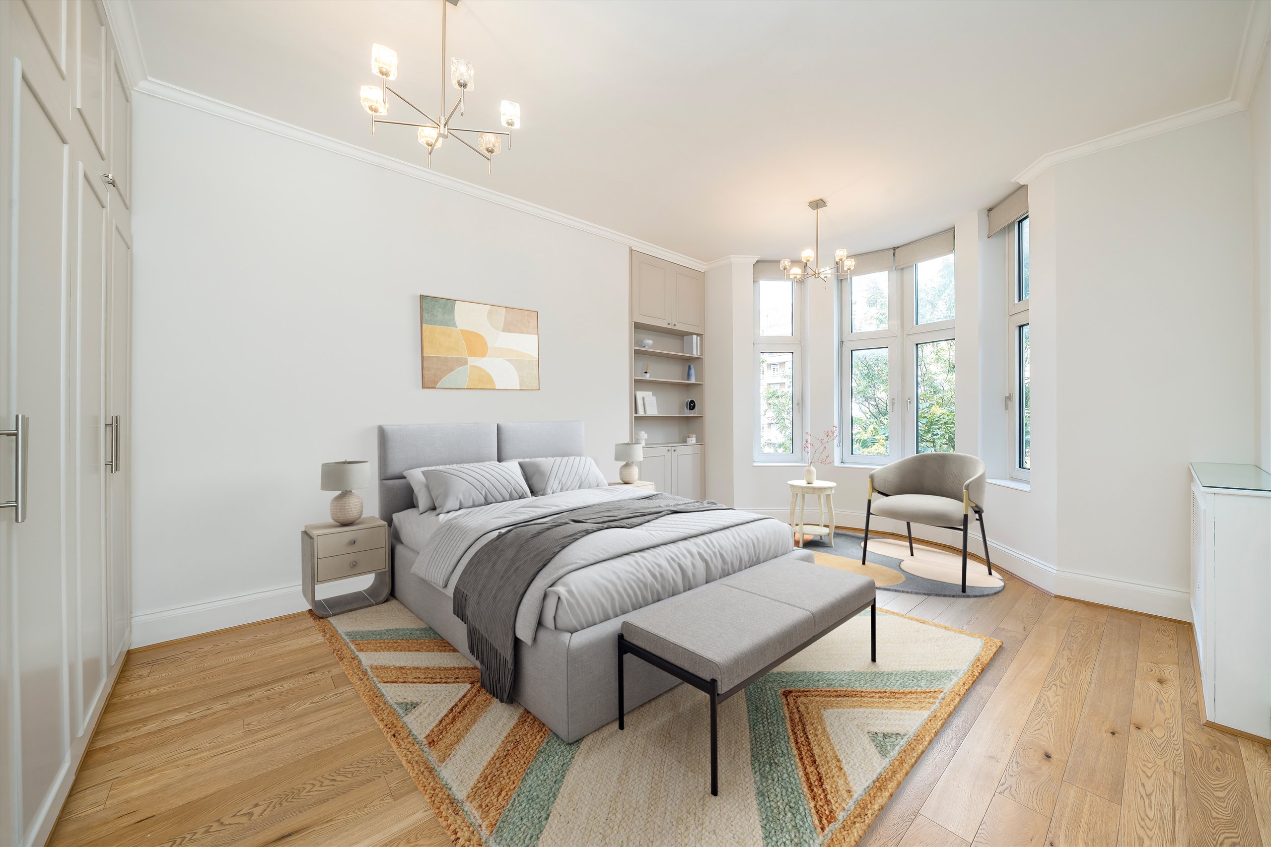 This impressive and spacious four bedroom lateral apartment boasts beautiful high ceilings and wood floors throughout and has three bathrooms, large windows and a separate eat-in kitchen. The bright and spacious reception room offers great entertaining space and the building has 24 hour porterage.