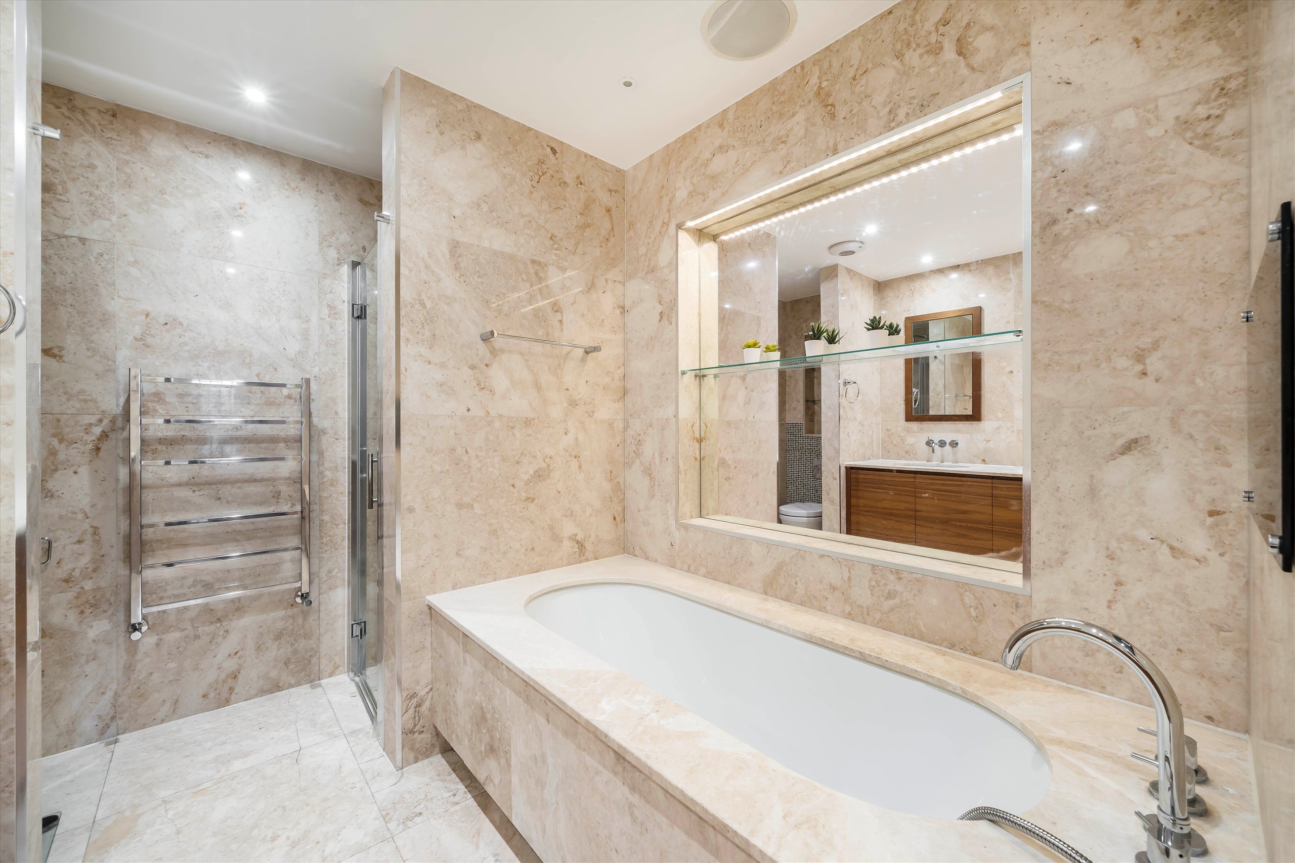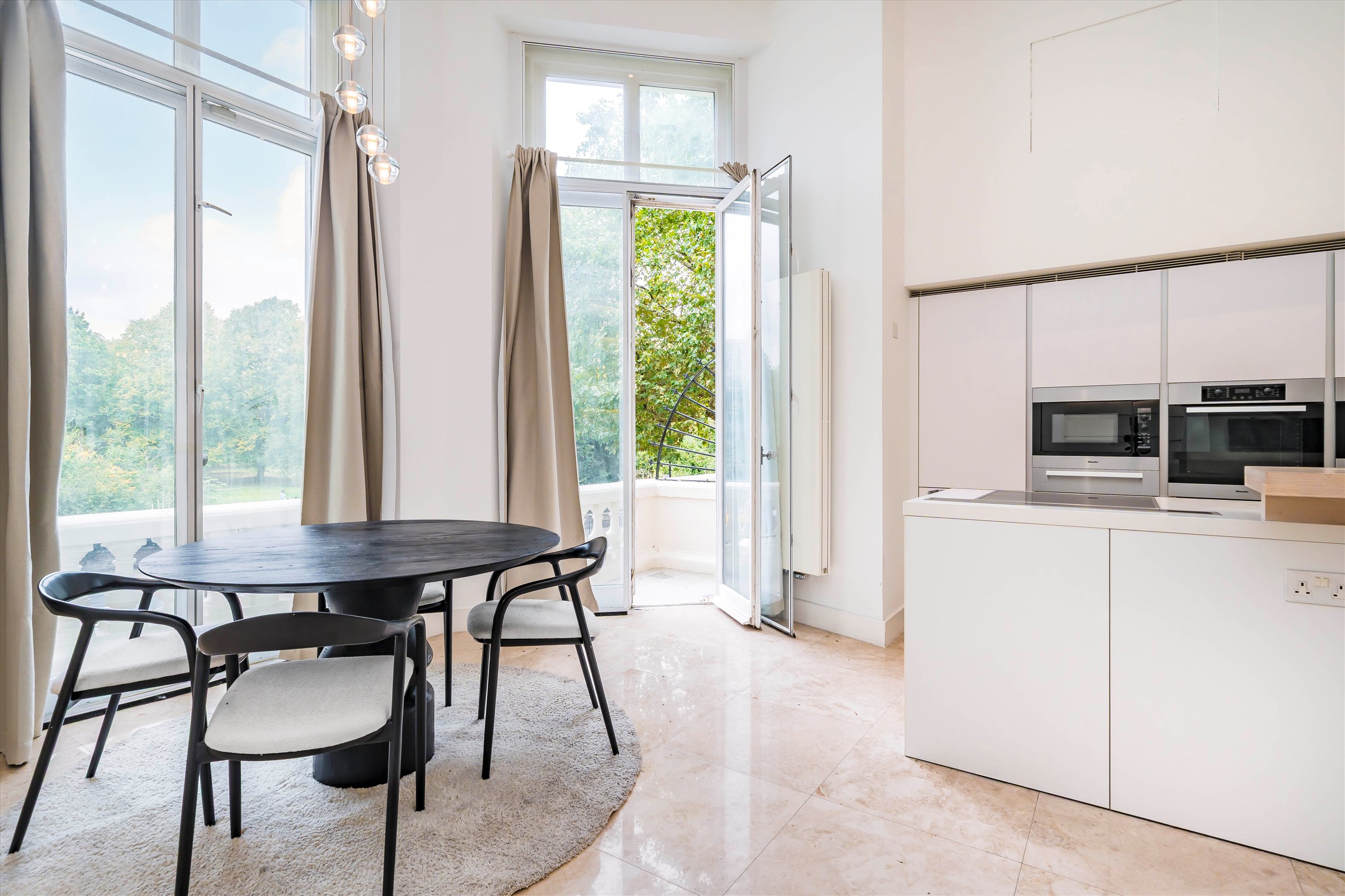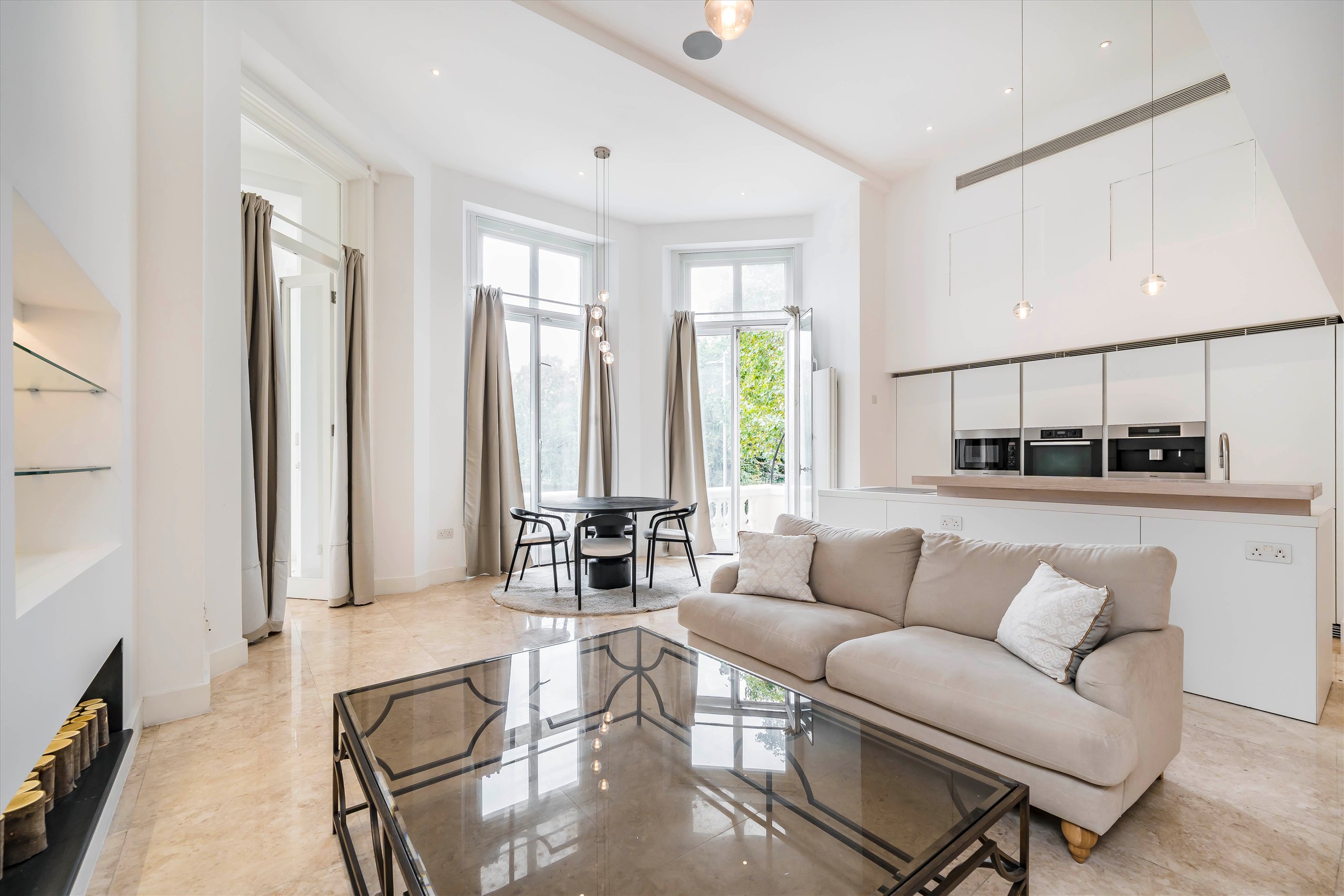 Perfectly positioned in the heart of Kensington, this exquisite residence combines elegant design with exceptional living space. The property features four generous double bedrooms, each accompanied by a luxurious en-suite bathroom, and a stunning open-plan kitchen with high ceilings that opens onto a private front balcony/terrace showcasing spectacular views over Hyde Park.