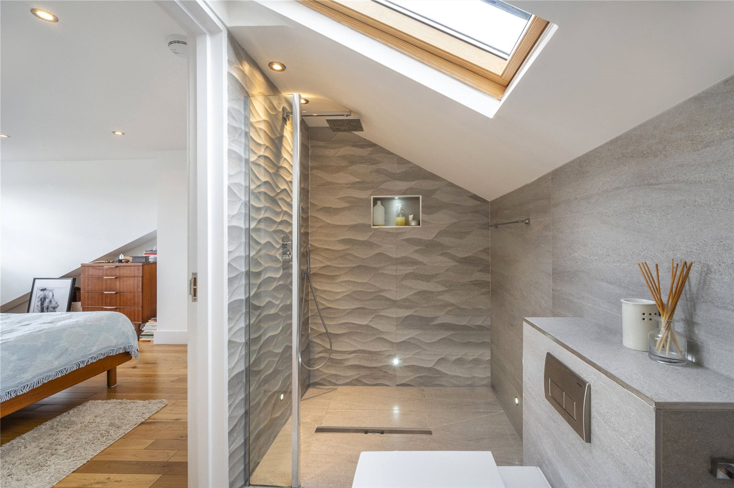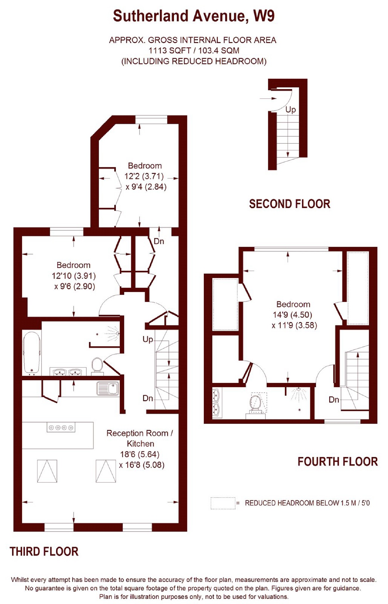Positioned on the top floors of a charming Victorian building, this bright three-bedroom duplex apartment is flooded with natural light and benefits from generous proportions and high specification interiors. With an entrance on the second floor, the accommodation continues on the third floor with an expansive reception room and a large open plan kitchen, featuring bespoke cabinetry and high-spec appliances. Two generous bedrooms, as well as a modern family bathroom, are also found on thi m and extensive fitted storage, takes up the fourth floor in its entirety. Spread across over 1,100 sqft the property is flooded with natural light and features solid wood flooring and spotlighting throughout. There are also delightful views across the rooftops of Maida Vale and beyond.