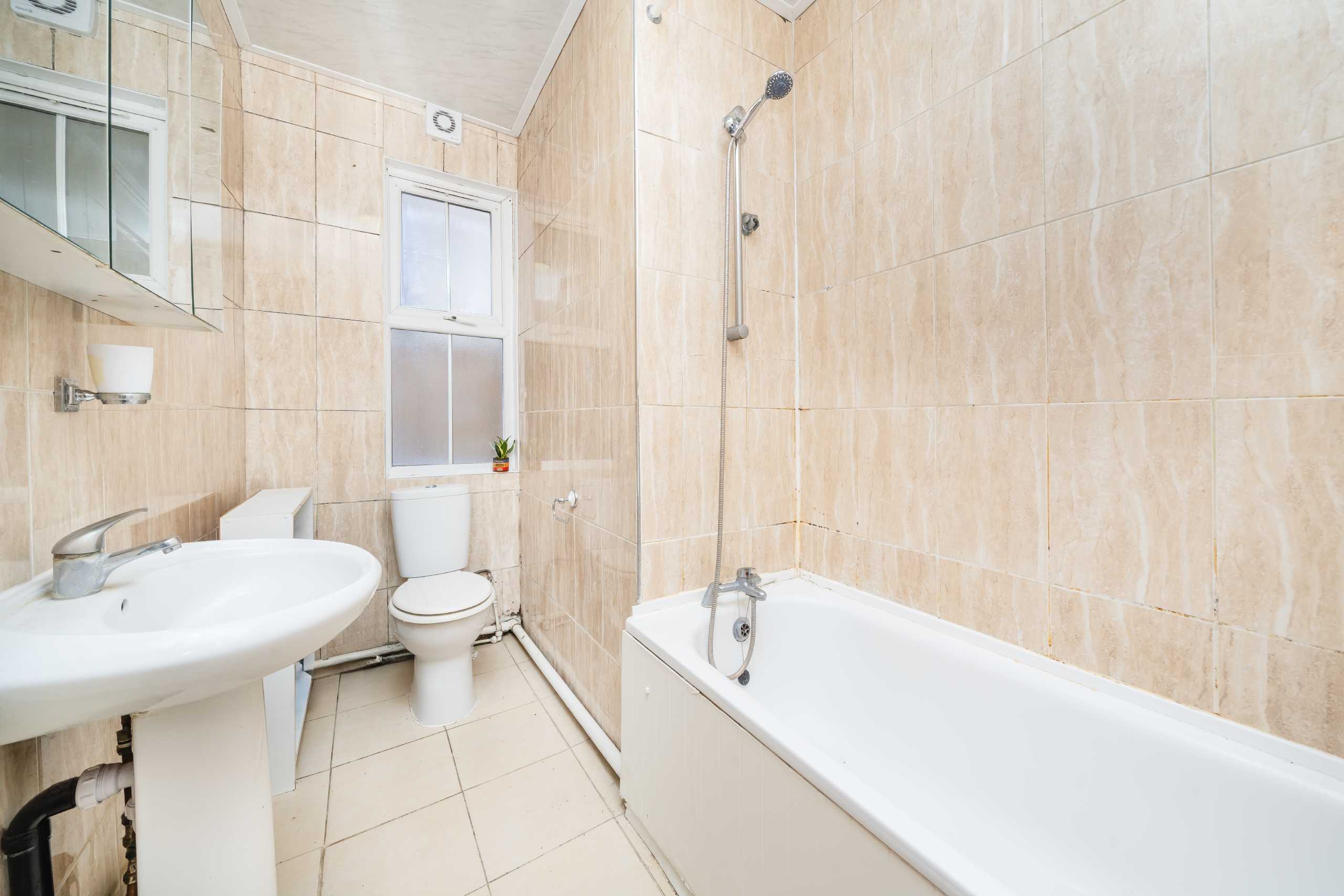 The property features three double bedrooms, a bright reception room, a separate kitchen, and a bathroom. While the flat would benefit from some updating, it offers a solid layout and plenty of scope to personalise.