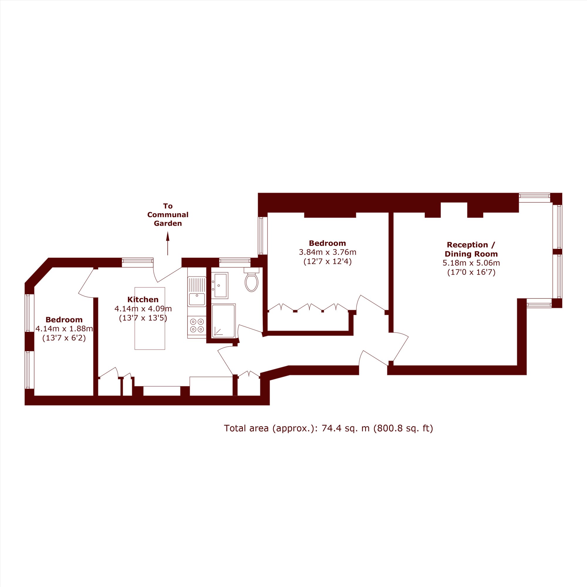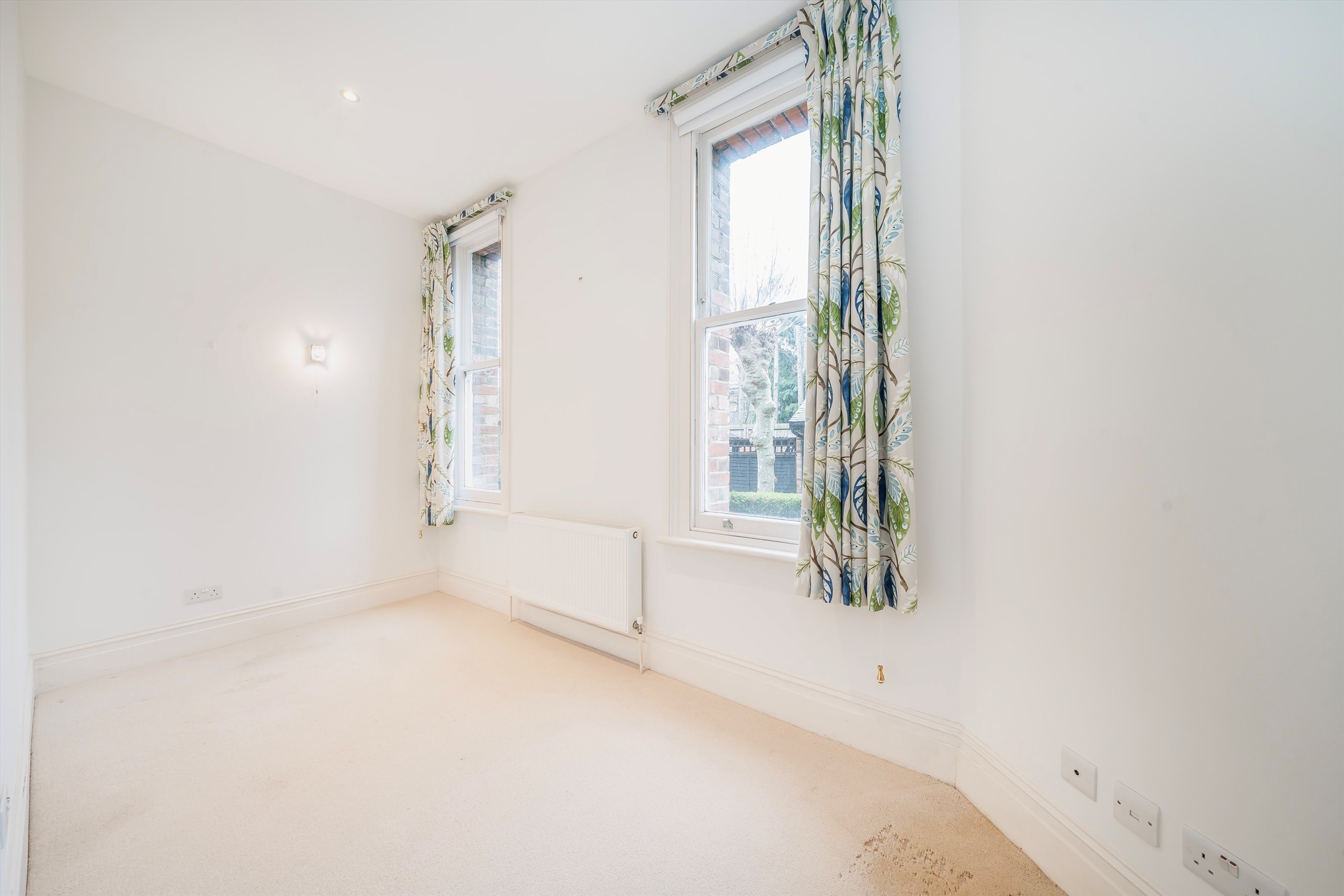 The property boasts a bright and generous south-facing reception room featuring charming period details, a well-appointed separate kitchen, and a modern bathroom complete with a walk-in shower. There is a large principal bedroom and a second well-proportioned bedroom, both offering excellent space and natural light.