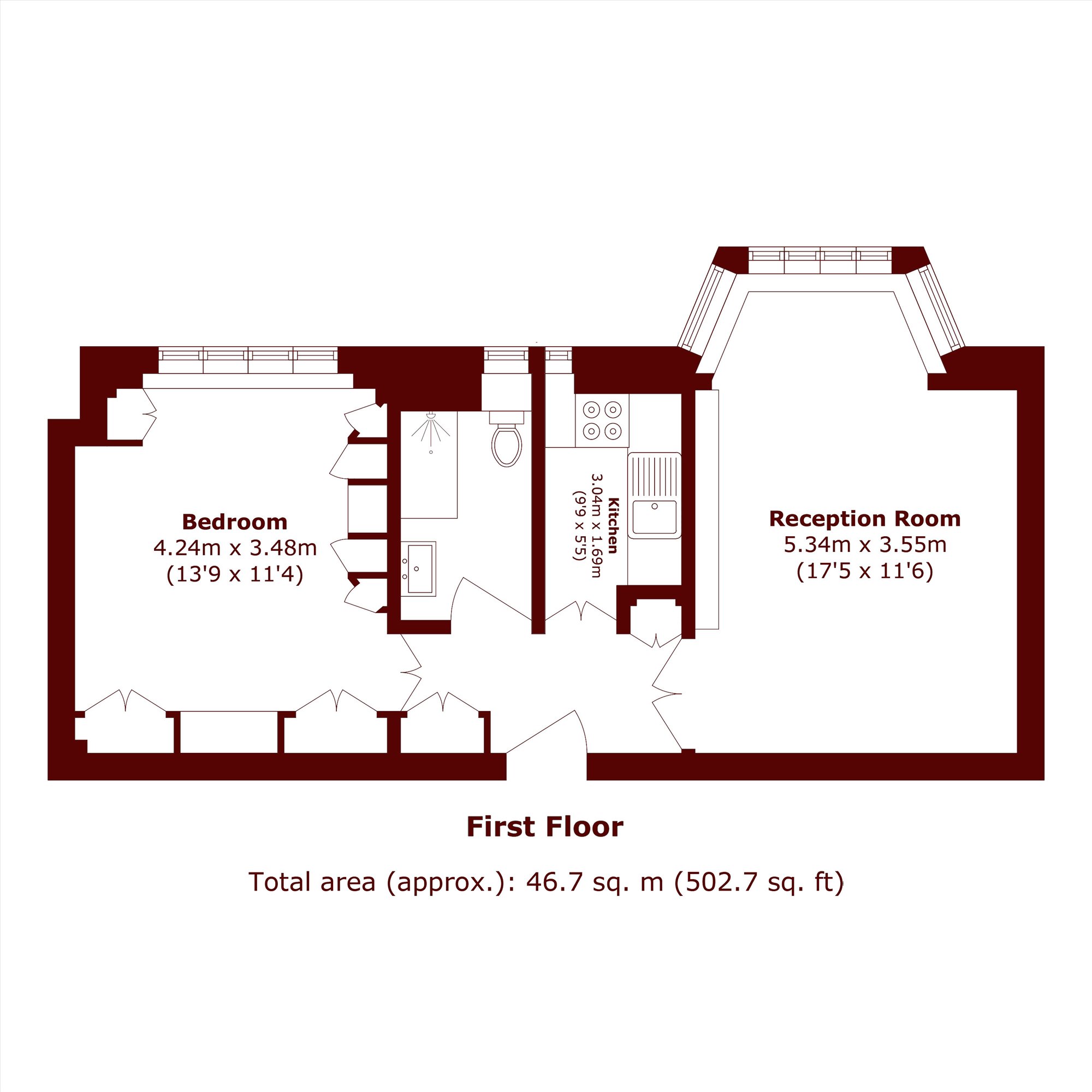A one bedroom, one bathroom apartment situated on the first floor with wooden floors throughout.