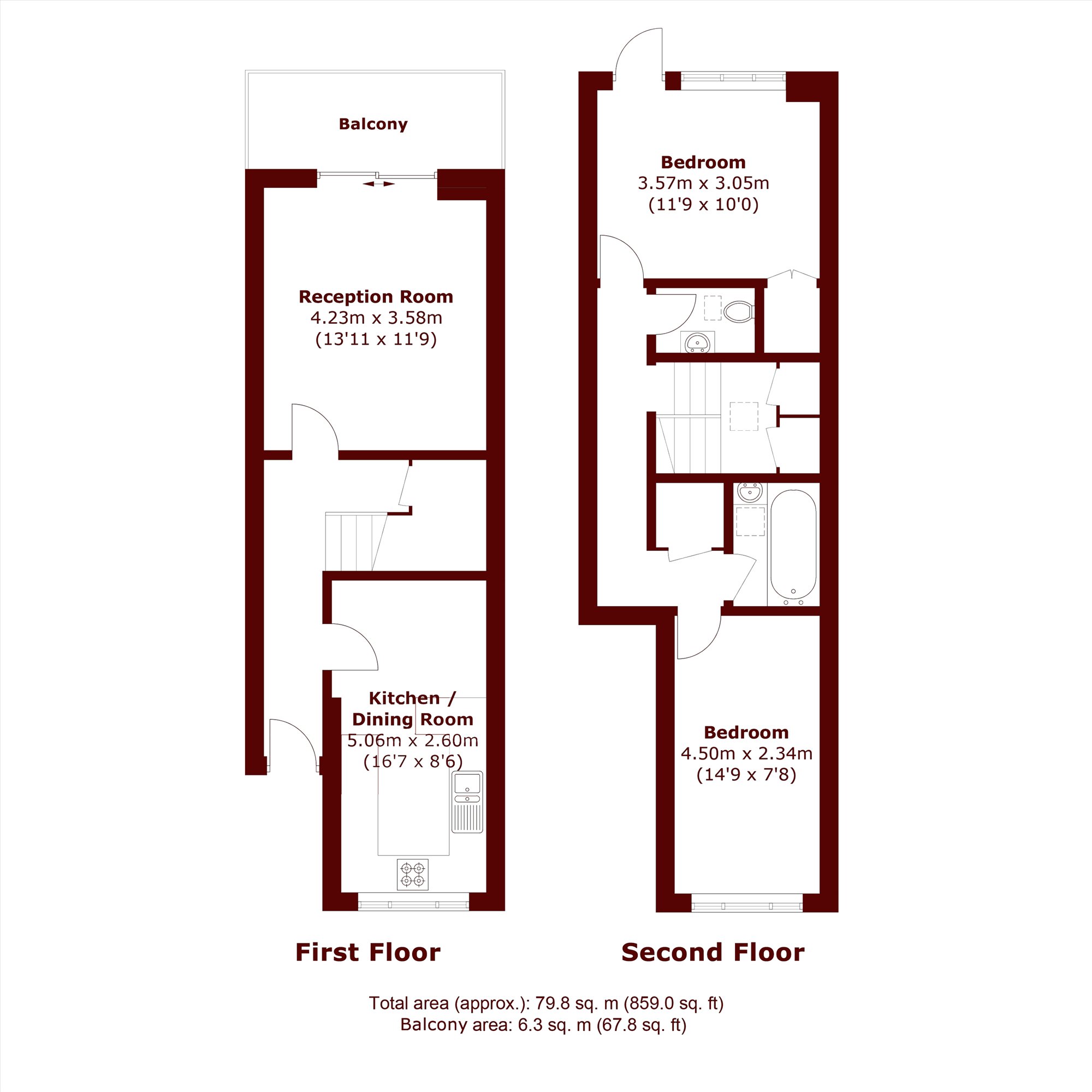 SHORT LET - This flat is arranged over the second and third floor of a well-maintained purpose built block. The ground floor you have the eat in kitchen diner, guest w/c and separate reception room with direct access to the balcony. On the first floor you have two double bedrooms and the family bathroom.